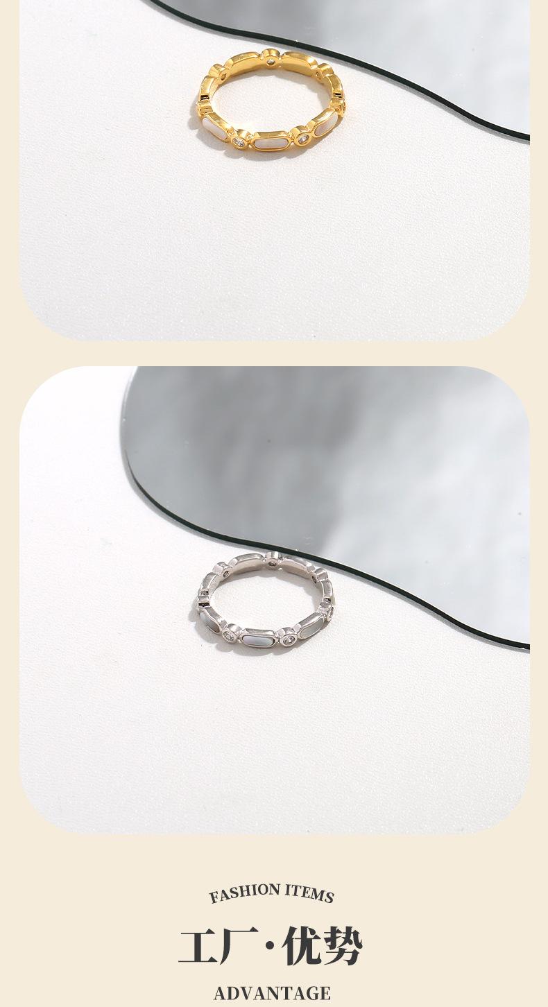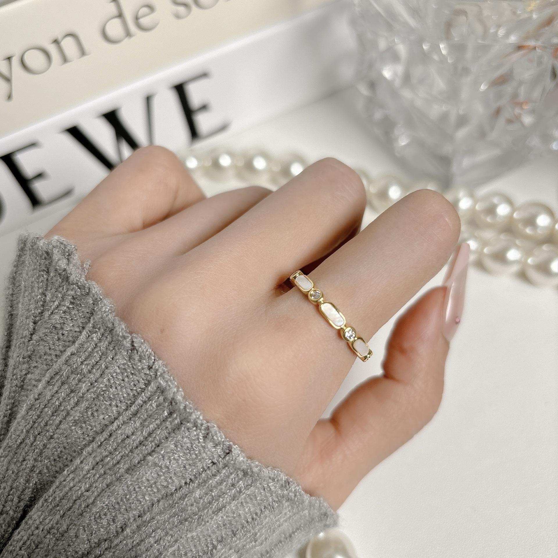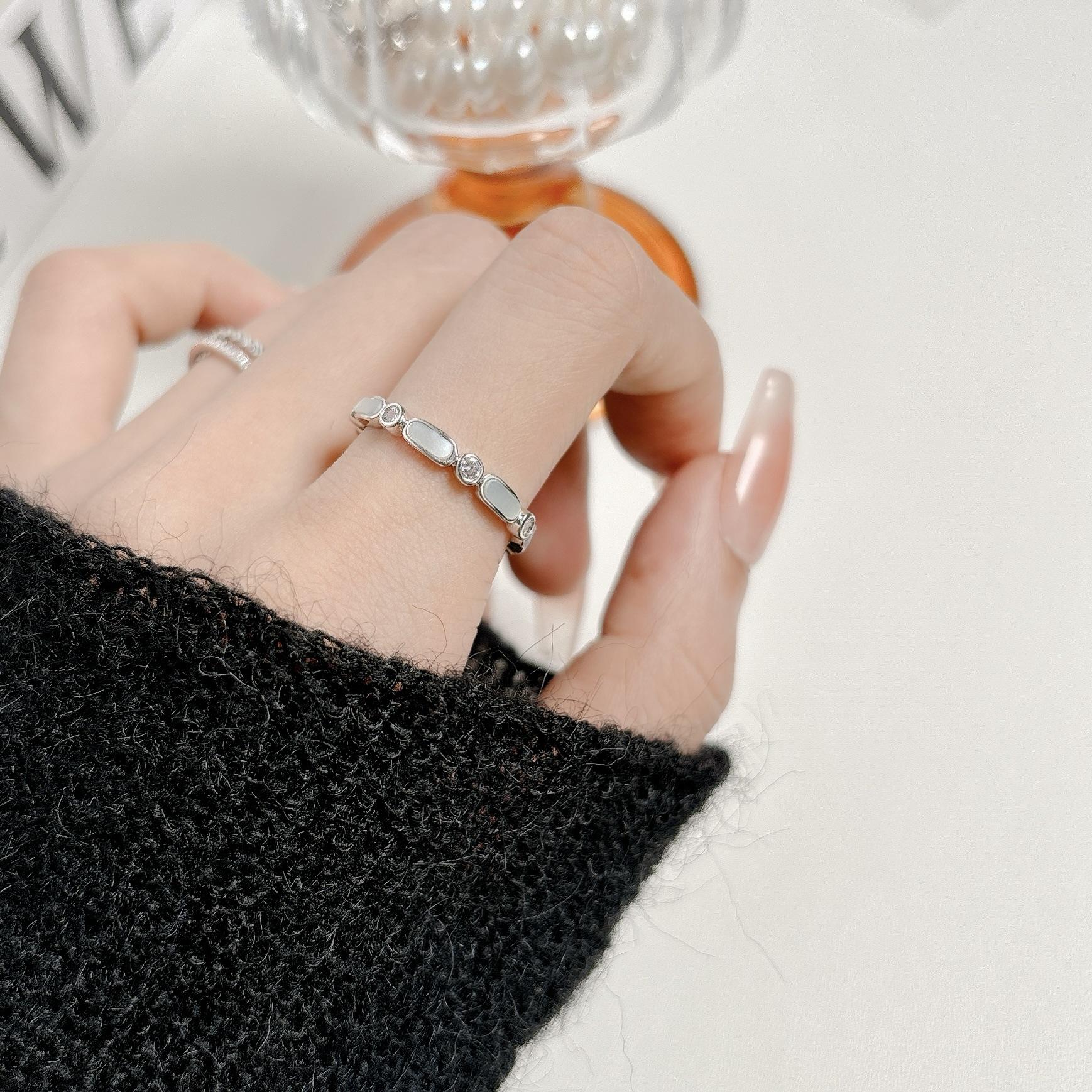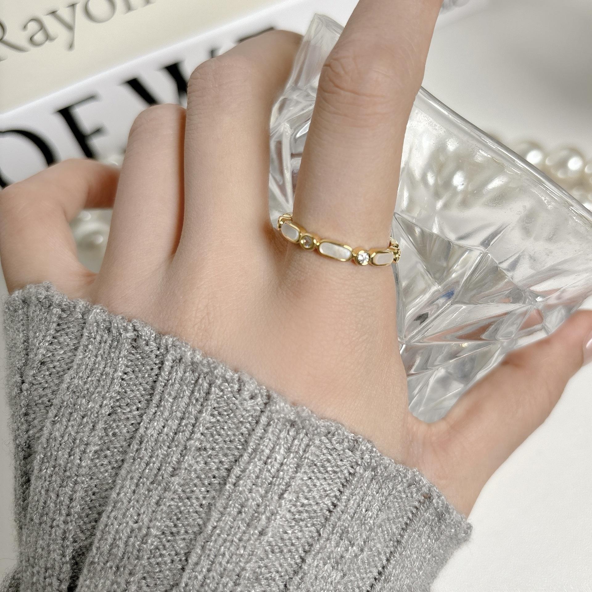 Anillo Elegante Cerrado de Zircón con Concha Blanca Anillo Elegante para Mujer Nicho de Gama Alta Estilo Lujo Accesible Anillo de Moda para el Dedo Índice
