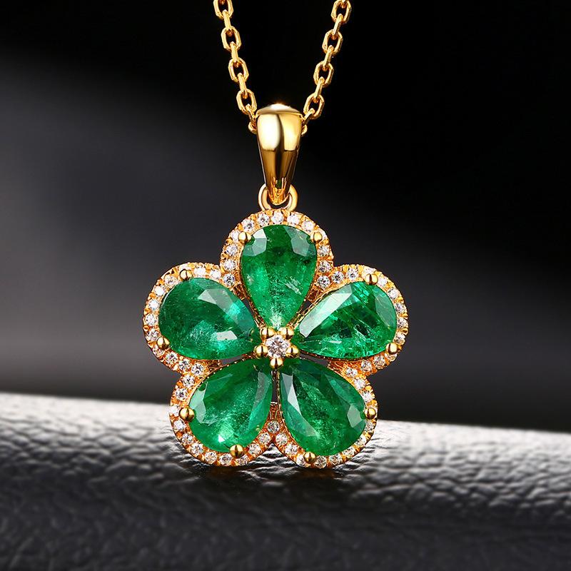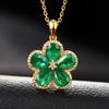 Zhenrong nuevo tesoro de color quilates gema esmeralda sintética colgante de trébol de cinco hojas con incrustaciones de gemas de color collar