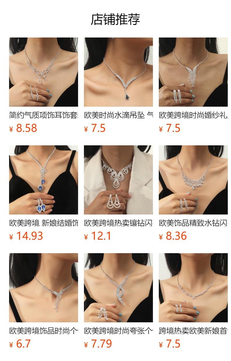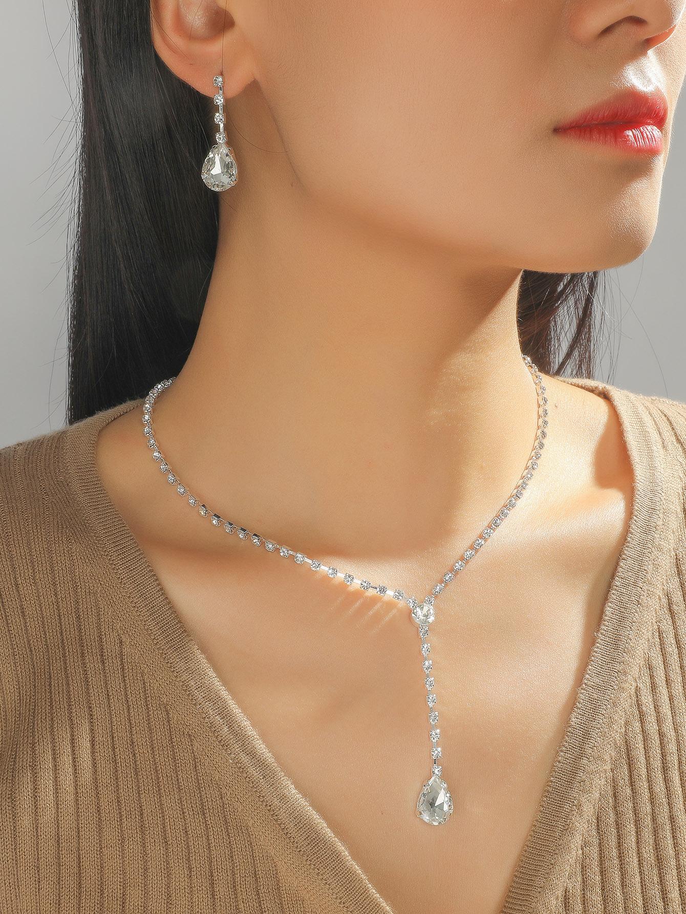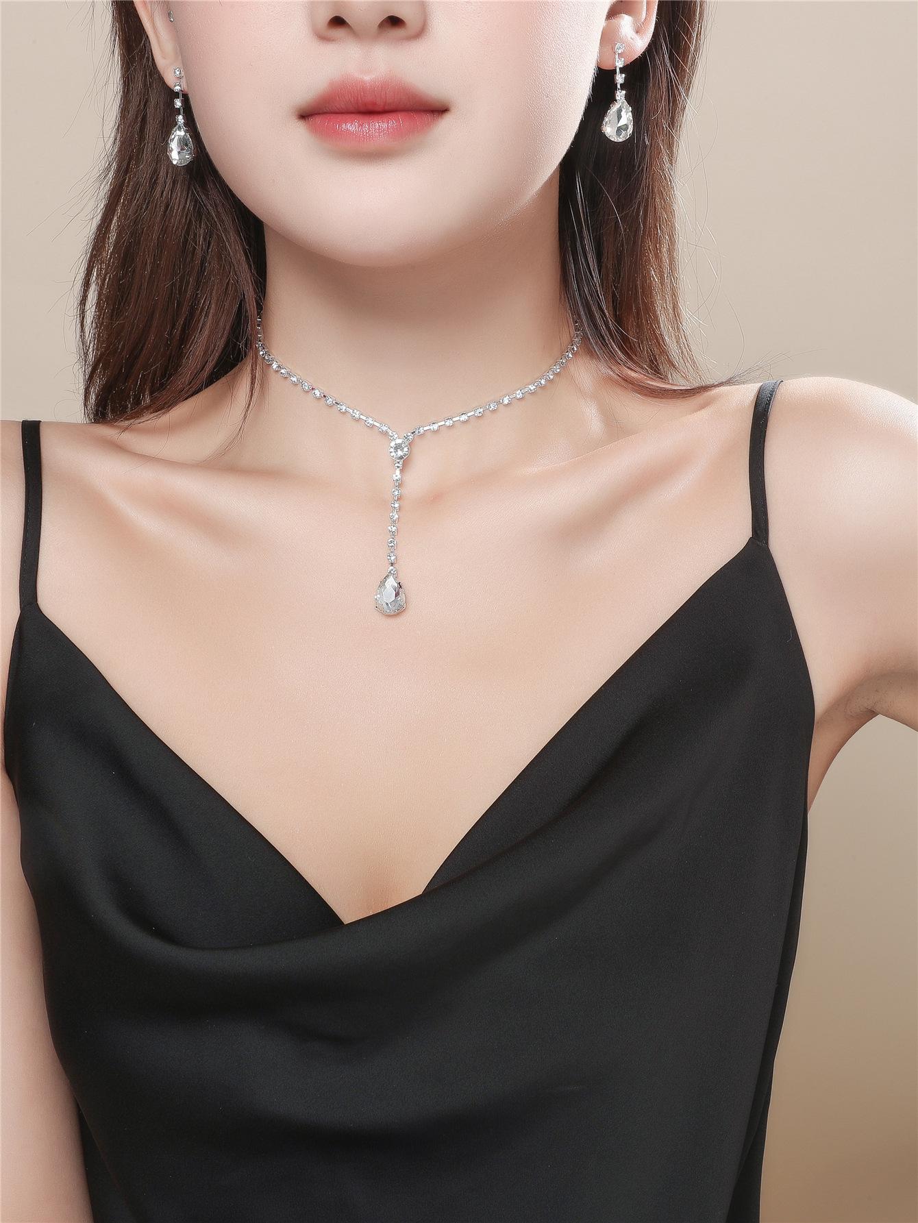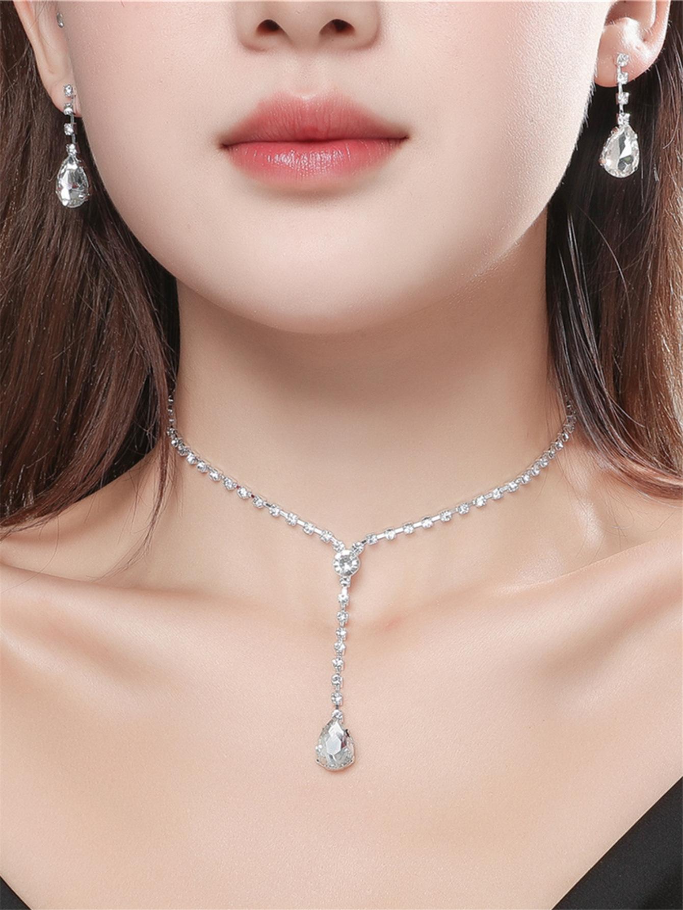 Collar de Piedras Preciosas Moda Joyería para Fotografía de Boda Exquisito Collar de Pedrería Aretes Joyería para Vestido de Novia Traje de Dos Piezas