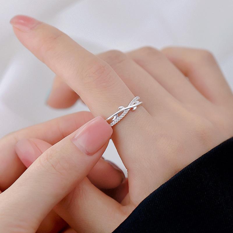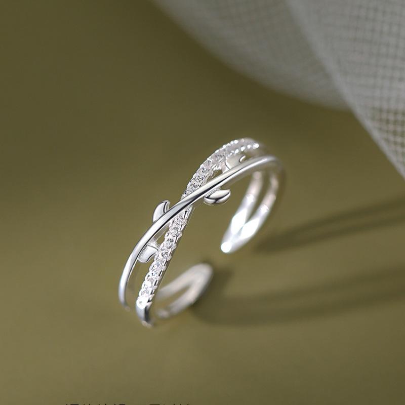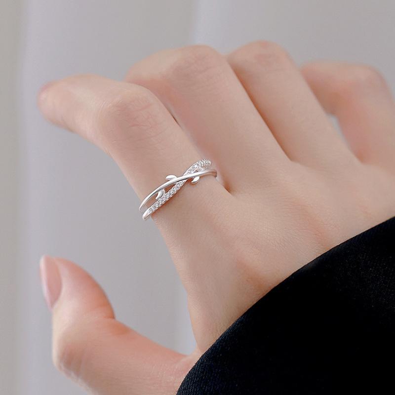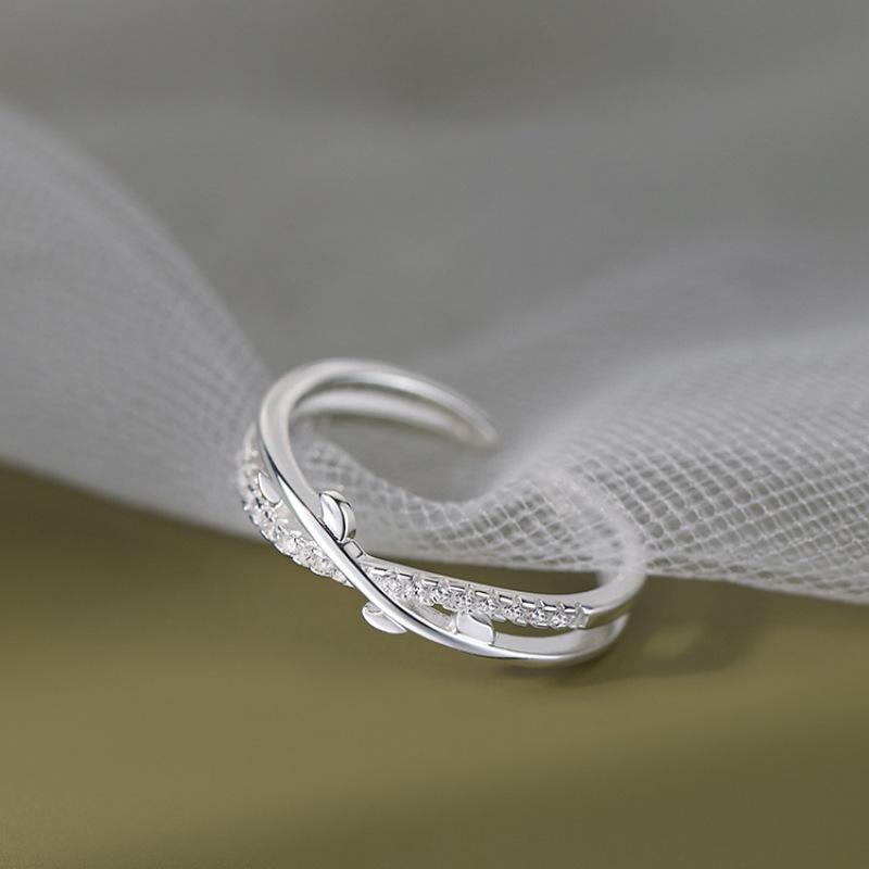 Anillo Simple Envolvente de Rama para Mujer, Versátil, Moderno, para Usar Apilado, Exquisito y Elegante, Bañado en Plata S925, Anillo Abierto para Dedo, Anillo para Dedo de Comida