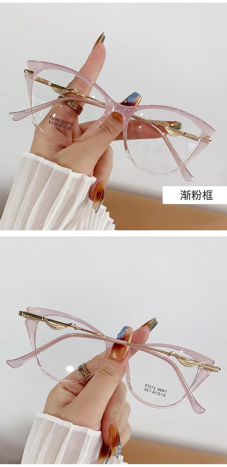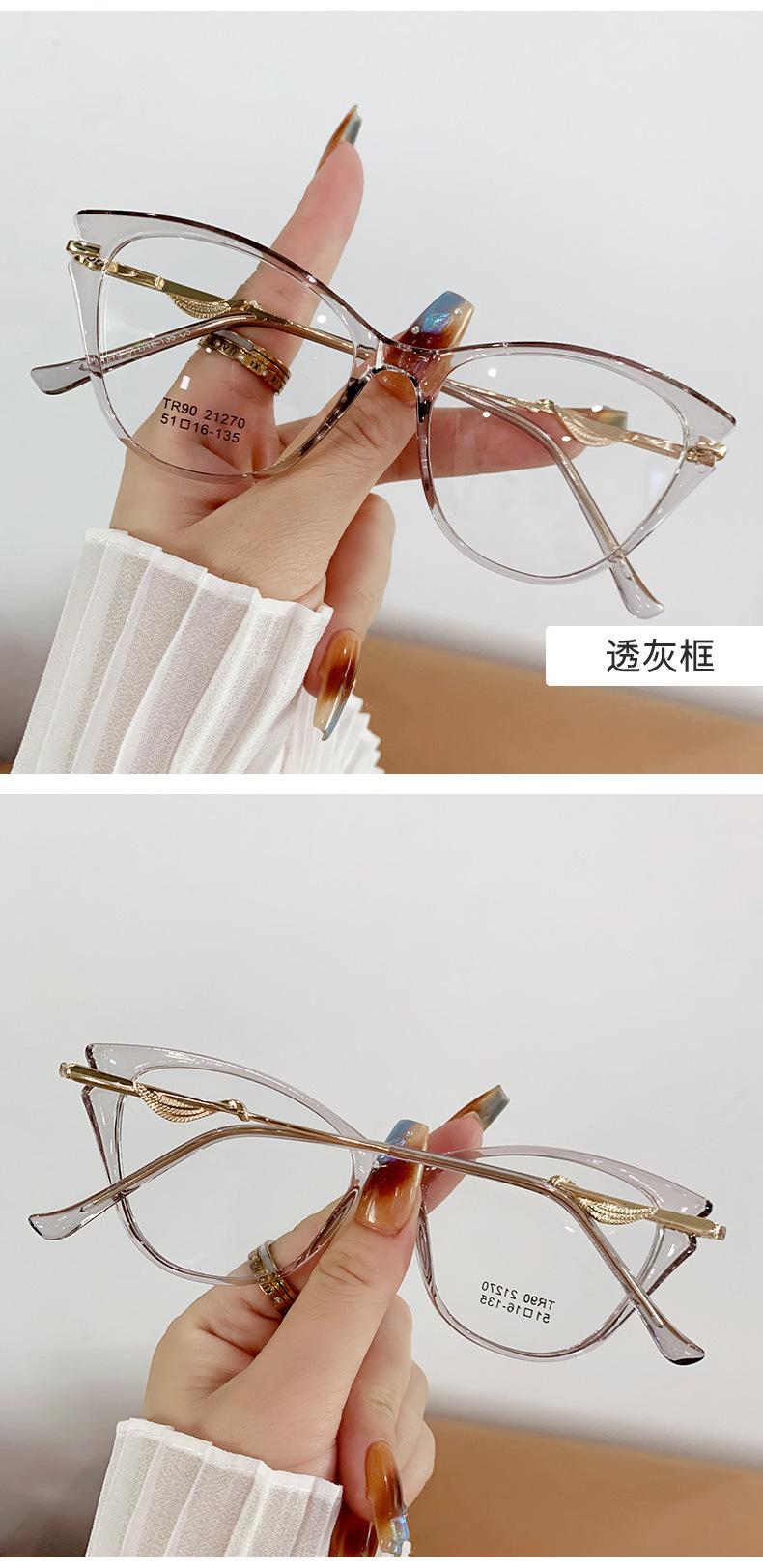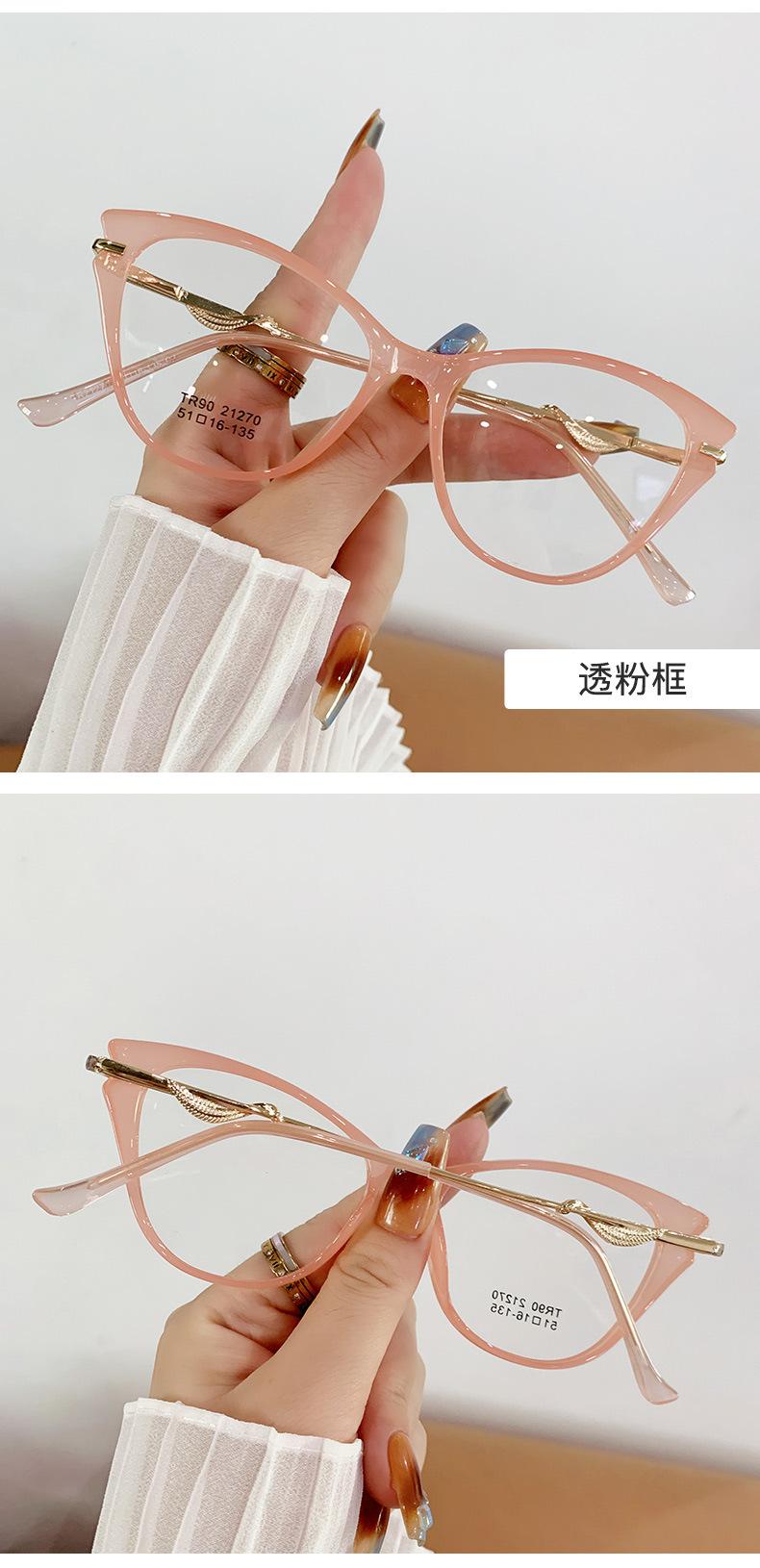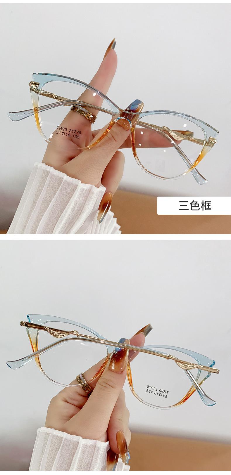 Gafas de montura TR90 de tendencia transfronteriza europea y americana, espejo plano, moda para mujer, personalidad, costuras de color, comercio exterior, montura de gafas ojo de gato