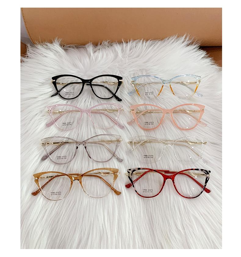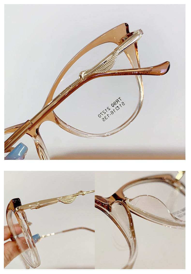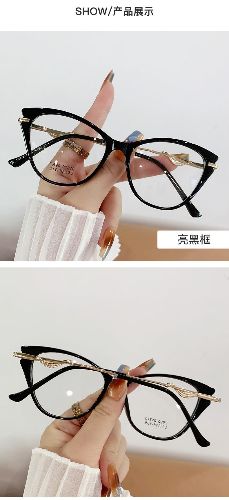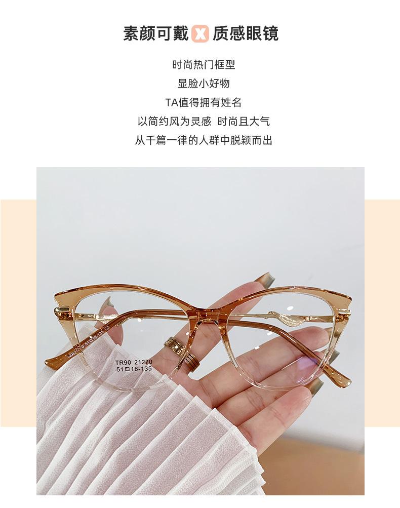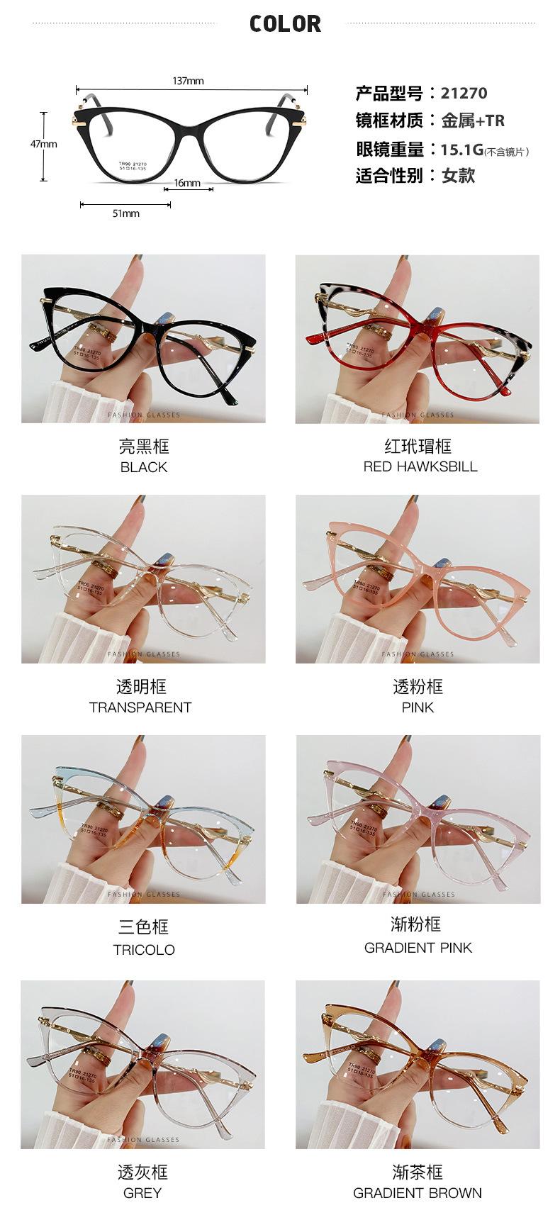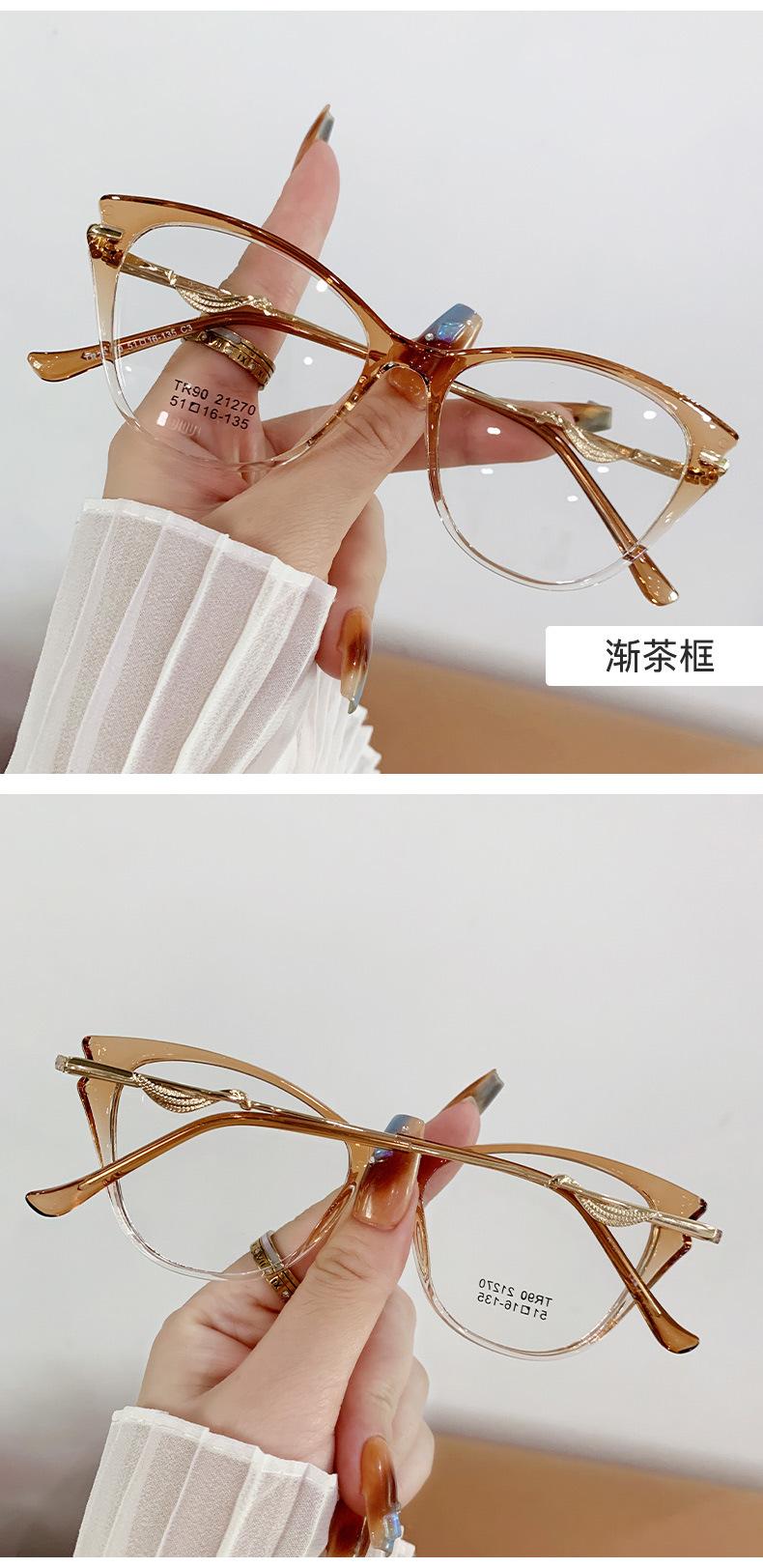 Gafas de montura TR90 de tendencia transfronteriza europea y americana, espejo plano, moda para mujer, personalidad, costuras de color, comercio exterior, montura de gafas ojo de gato