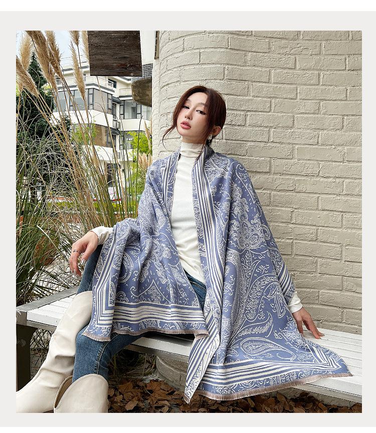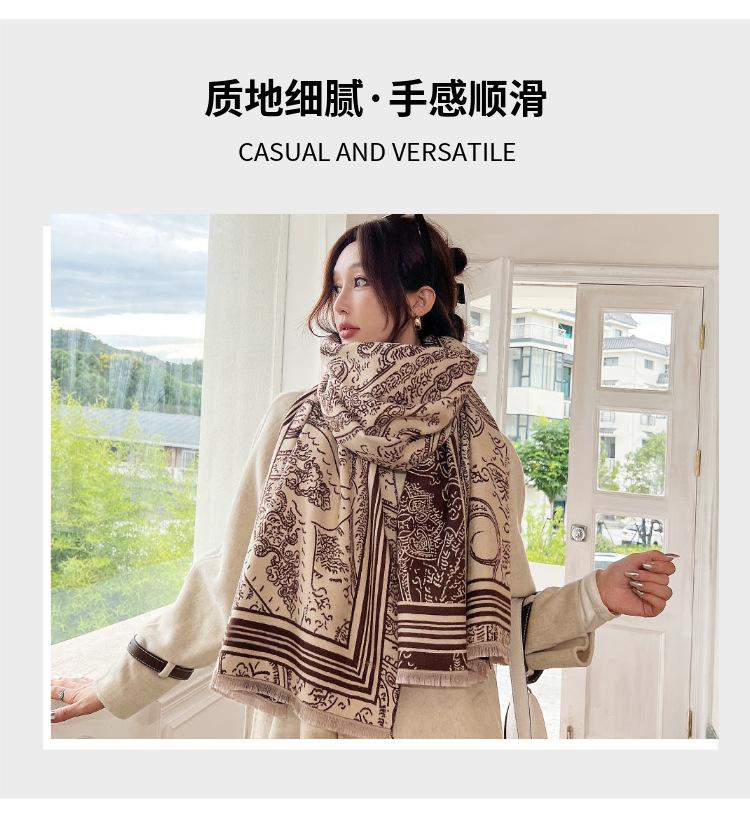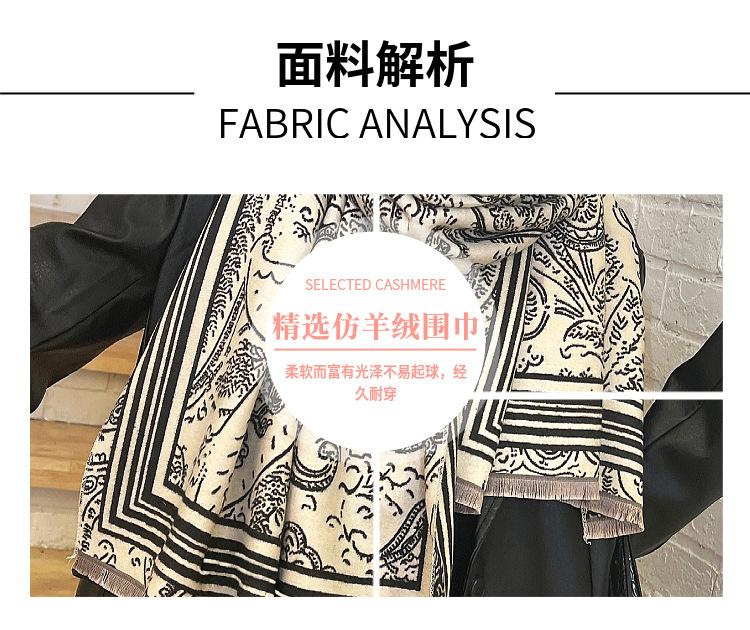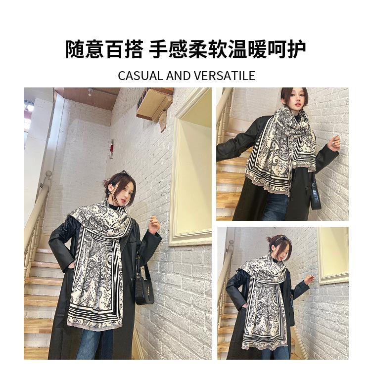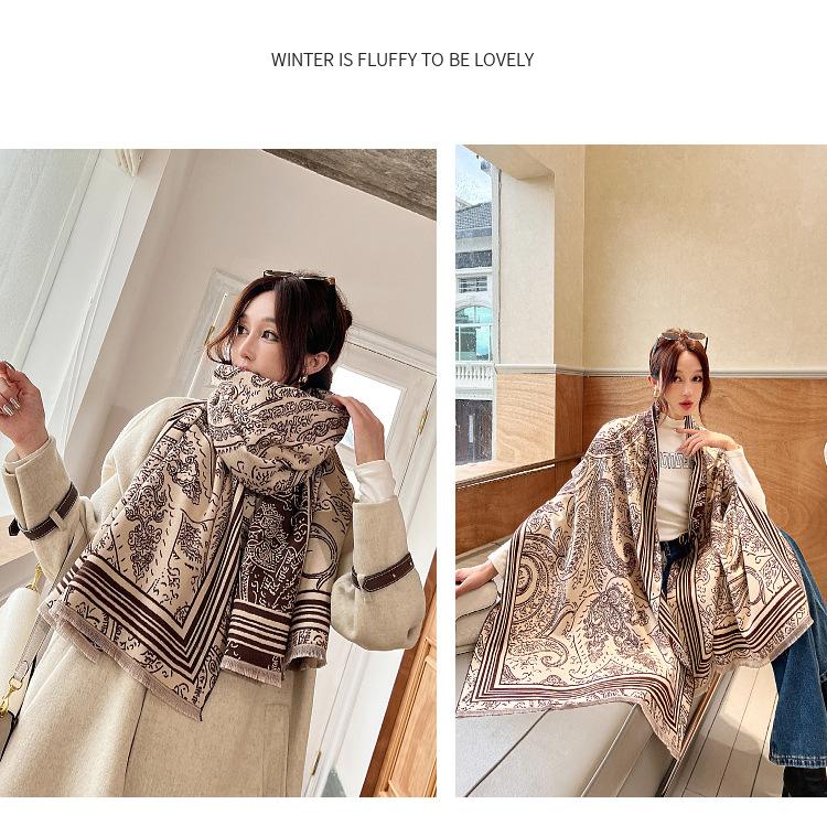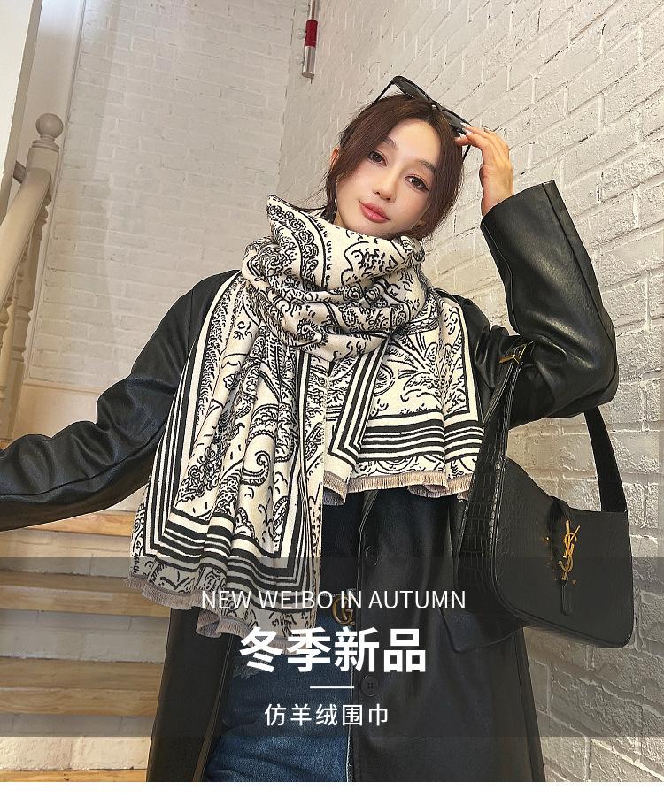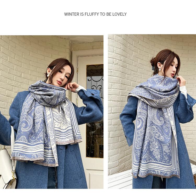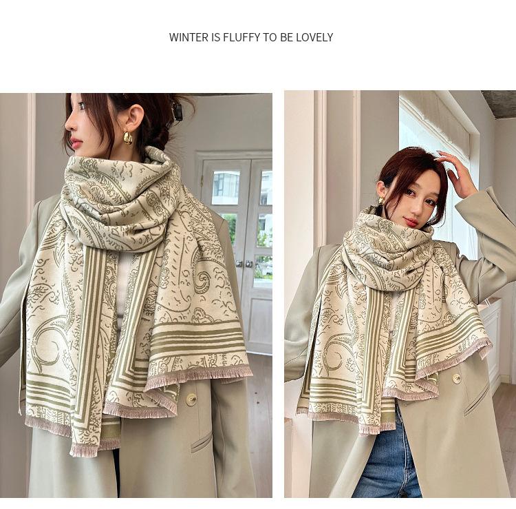 Bufanda de otoño e invierno para mujer, estilo étnico grueso, de imitación de cachemira, con borlas cálidas, para proteger el cuello, 2024