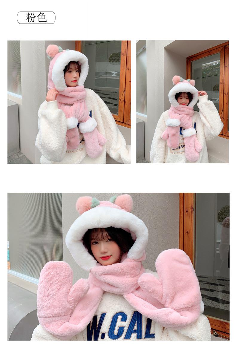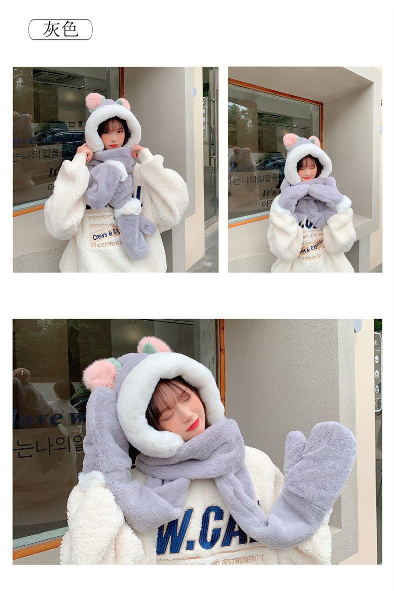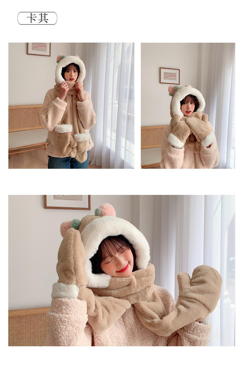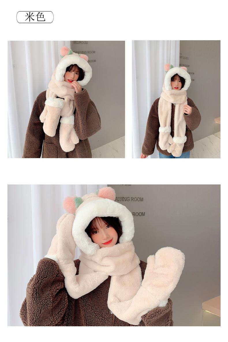 Sombrero de Melocotón de Hada Estilo Coreano Lindo para Mujer Combinable Otoño e Invierno Bufanda Guantes Cálidos de una Pieza Set de Tres Piezas Moda