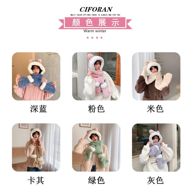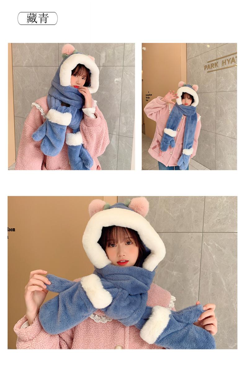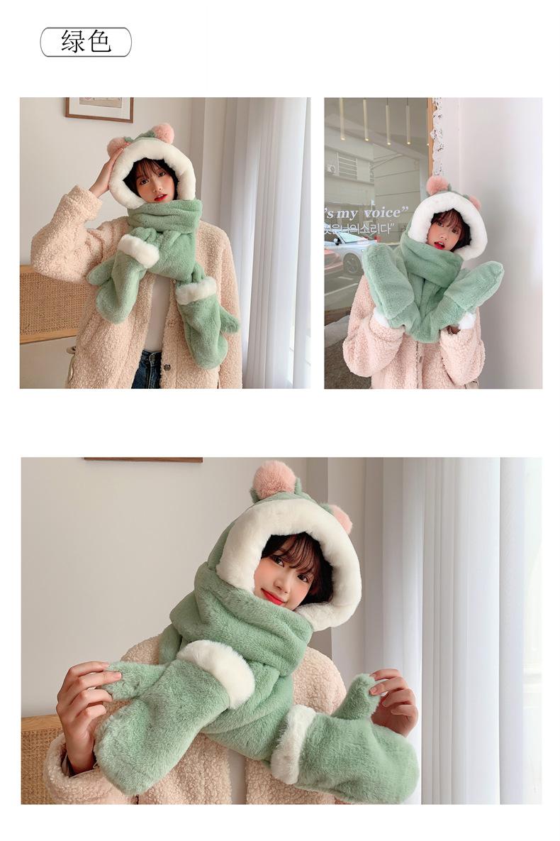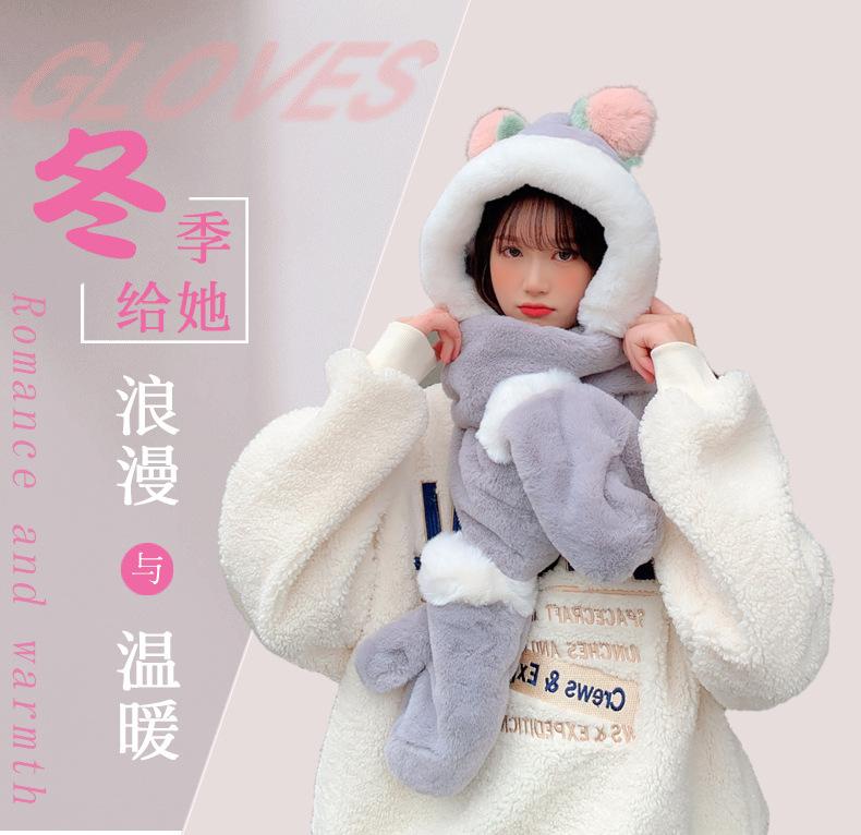 Sombrero de Melocotón de Hada Estilo Coreano Lindo para Mujer Combinable Otoño e Invierno Bufanda Guantes Cálidos de una Pieza Set de Tres Piezas Moda