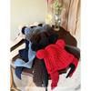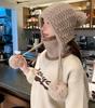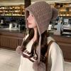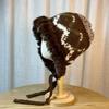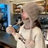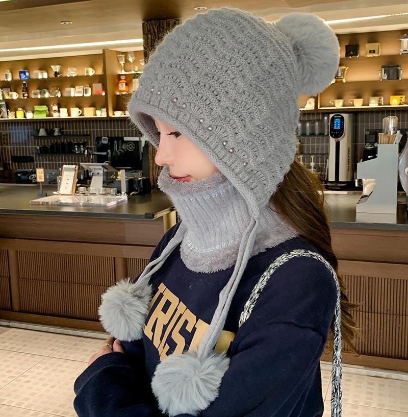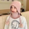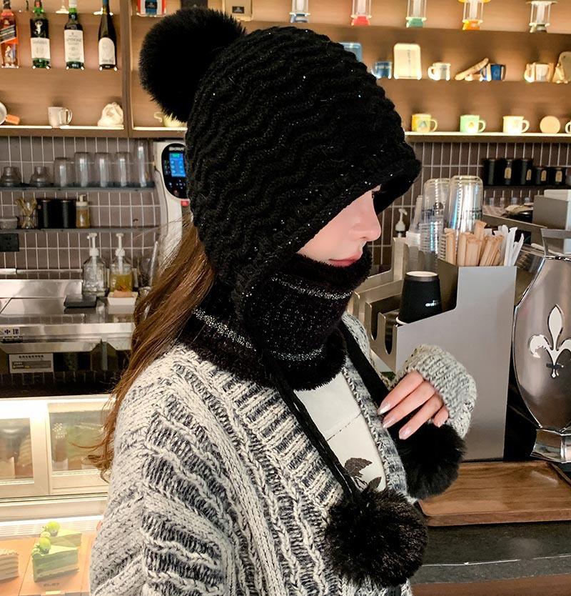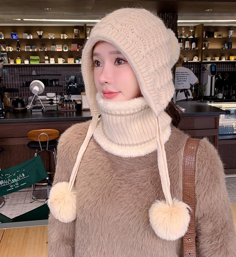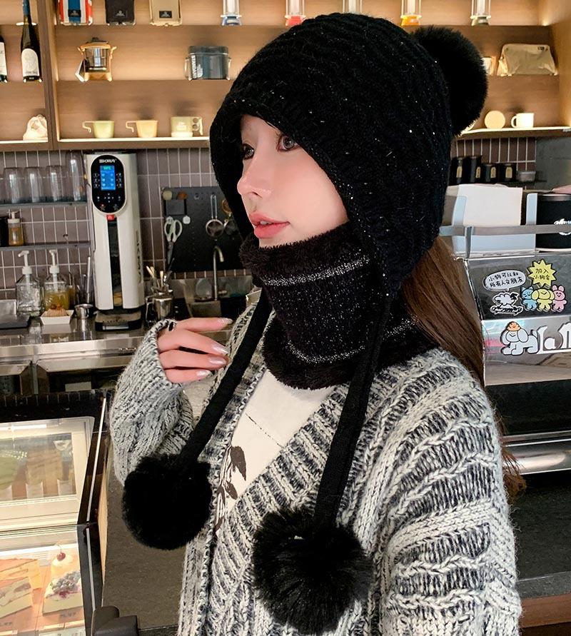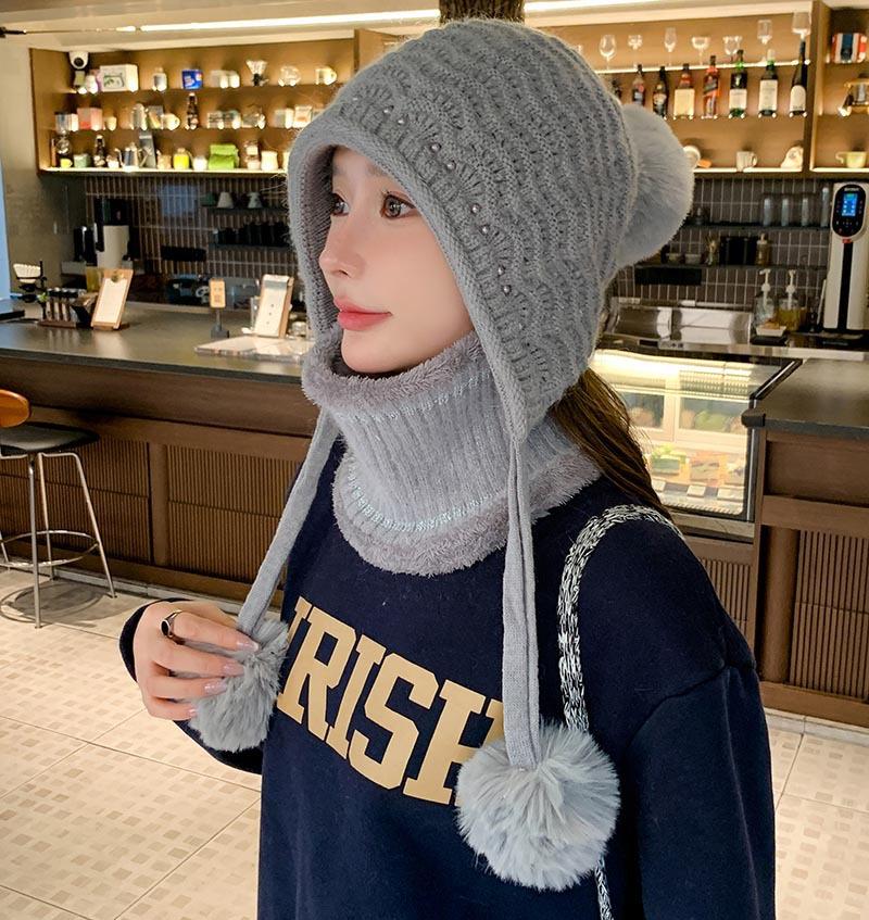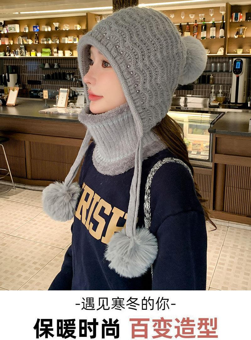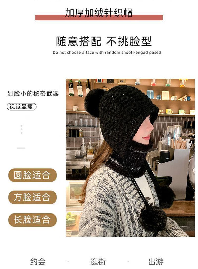 Gorro de lana de punto con protección para los oídos, con cordones, resistente al frío, con tres bolas de pelo, cálido, de piel de conejo, para niños, con forro polar de invierno, grueso y protector facial.