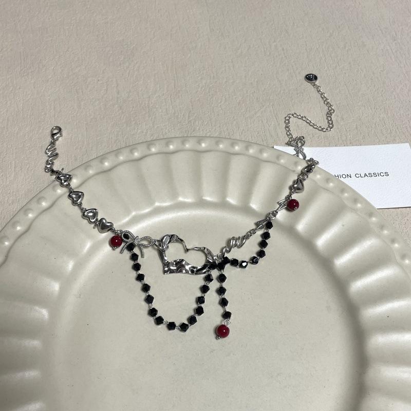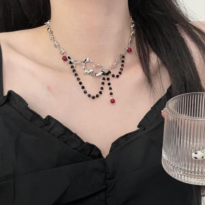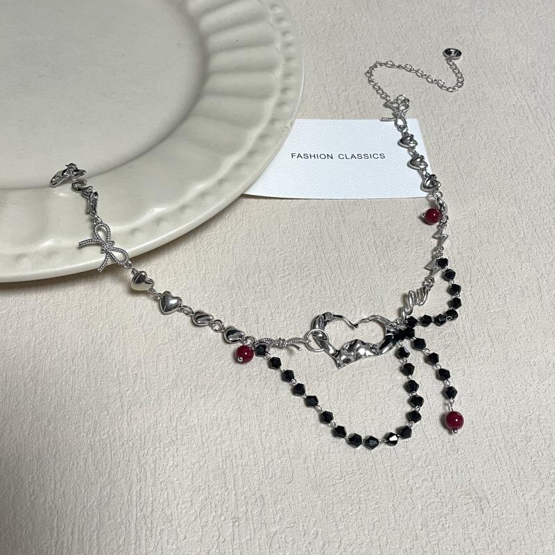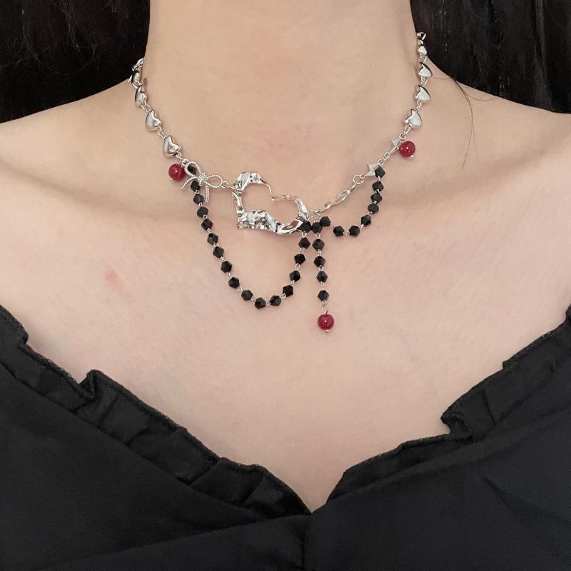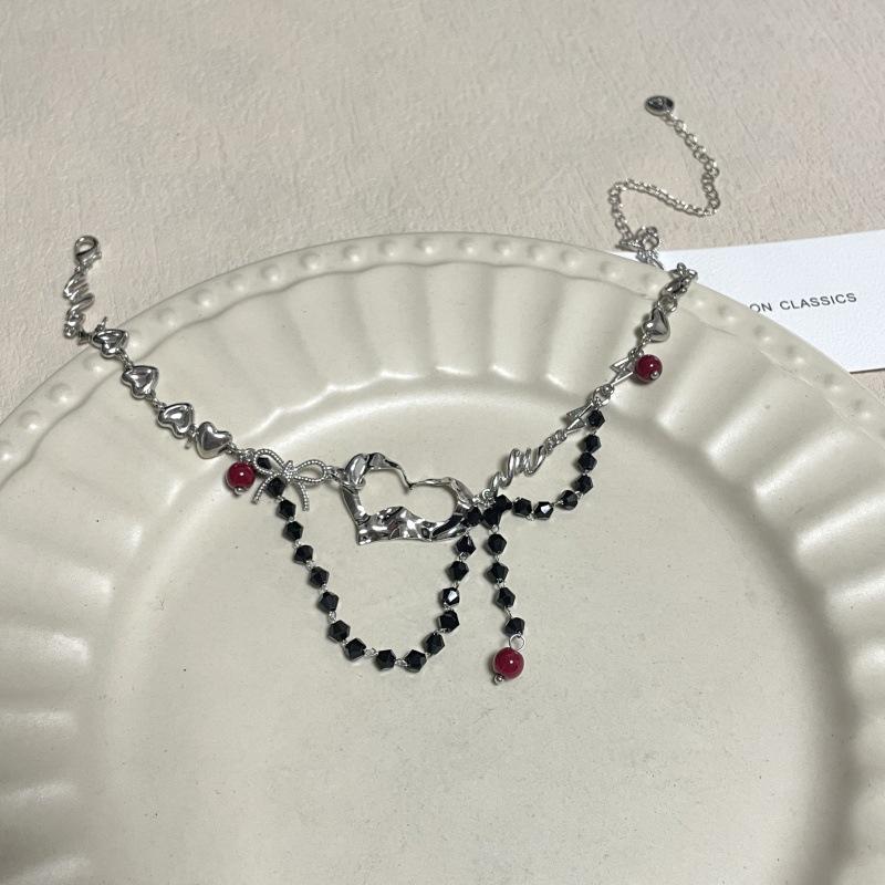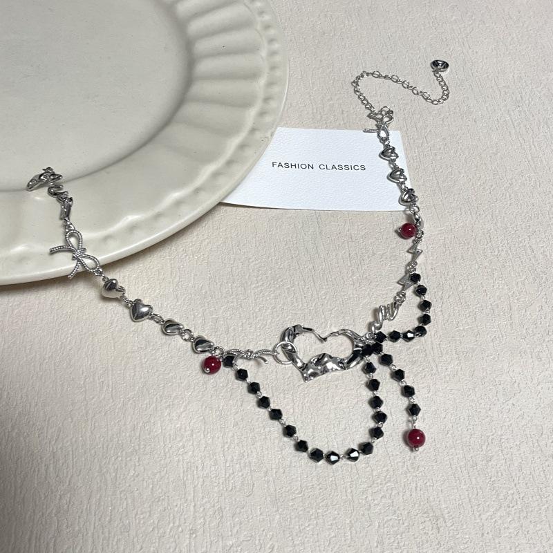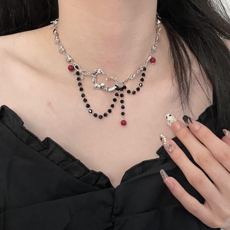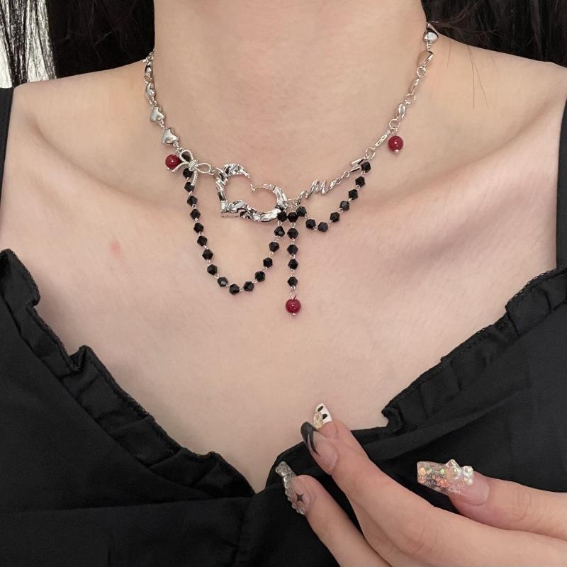 Dulce amor femenino cristal negro borla cadena clavícula pequeño fresco exquisito moda diseño de moda collar