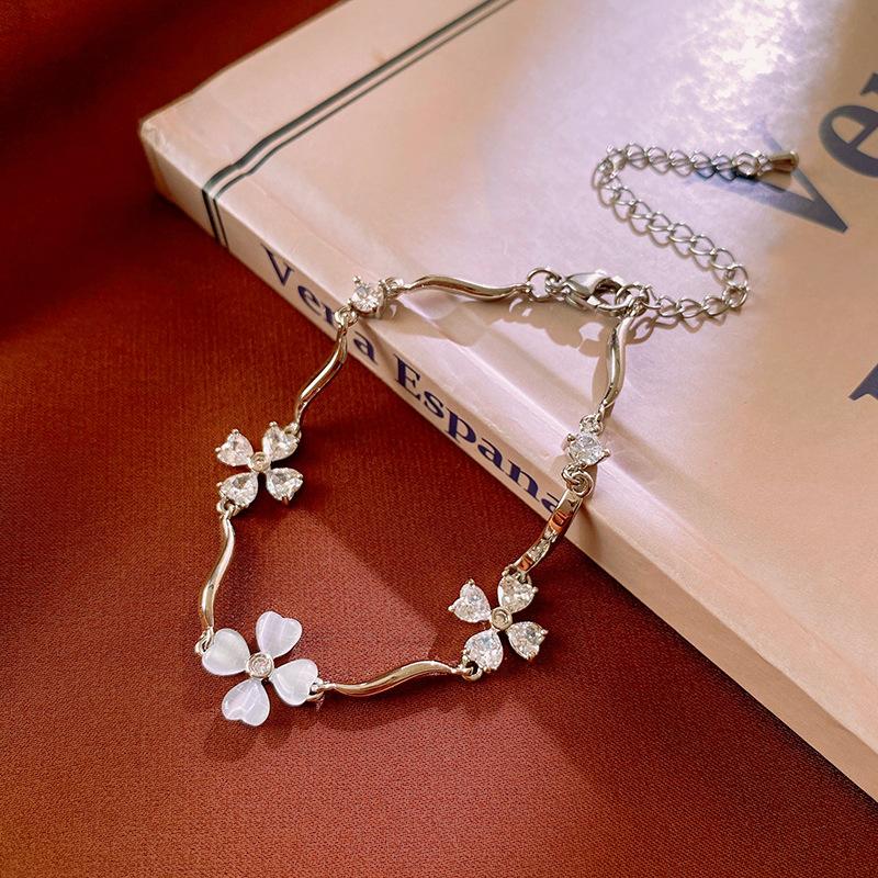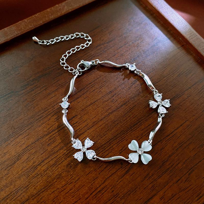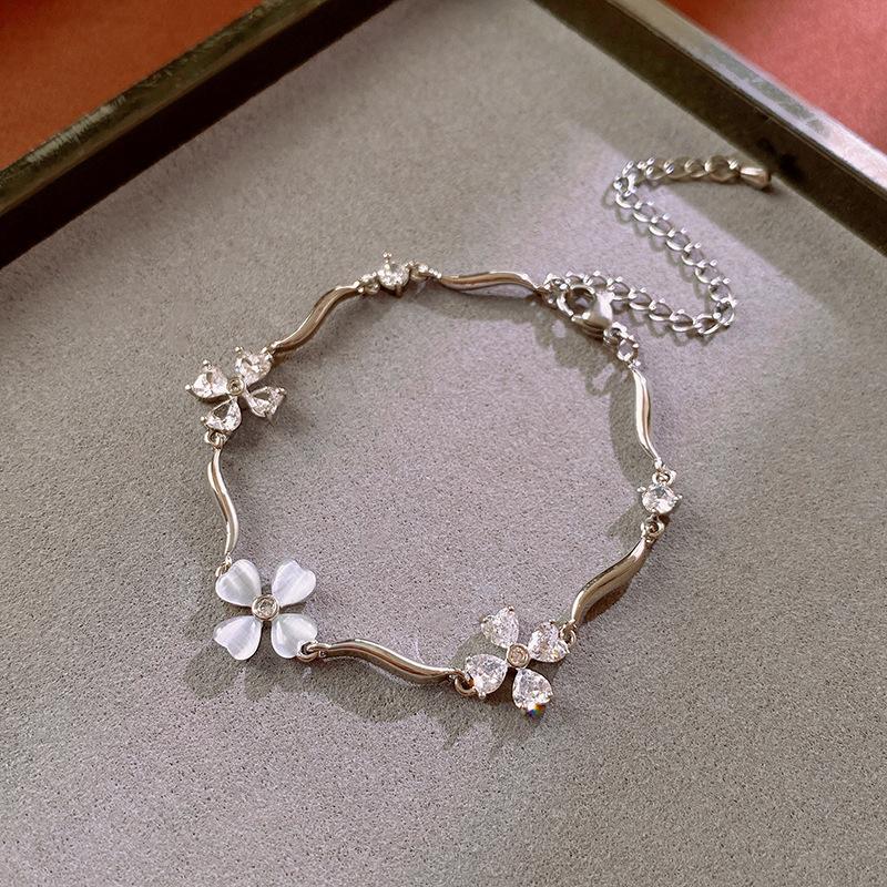 Pulsera Flor de Zircón Ola de Amor Moda Nicho Diseño Sensación Pulsera Lujo Ligero Alto Sentido Temperamento Pulsera Venta al por Mayor