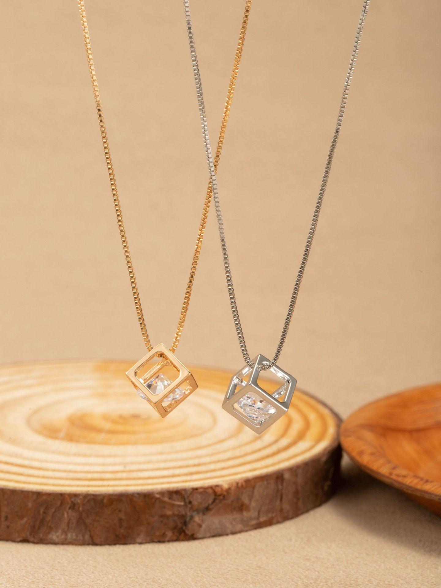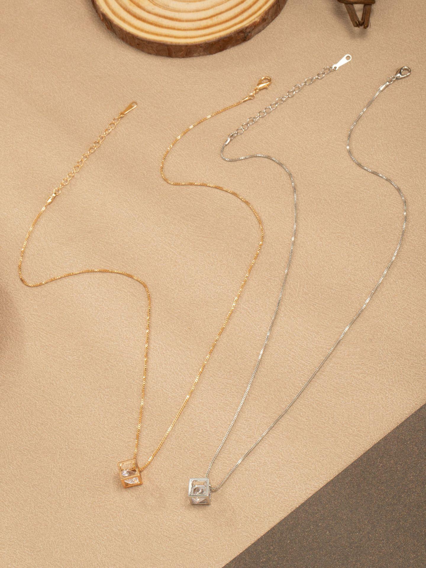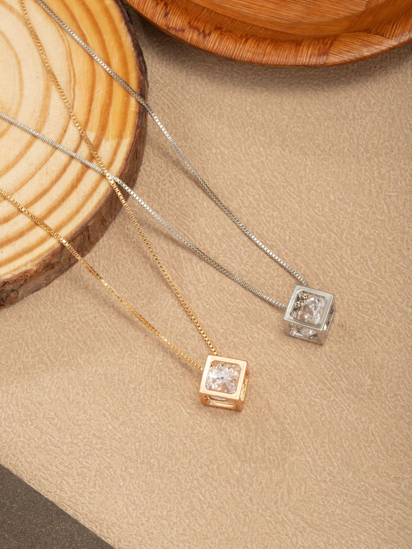 nombre del producto: Collar Cubo Mágico de Zirconia (con Cadena Box)