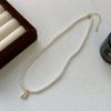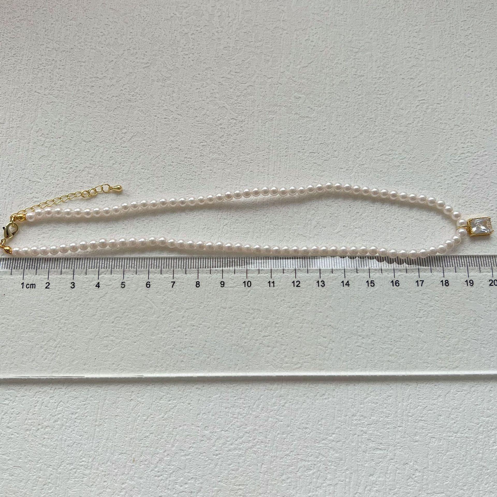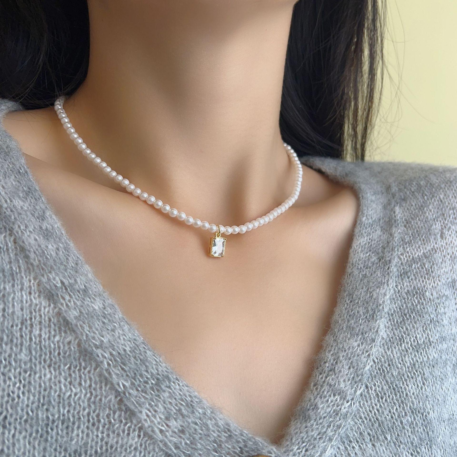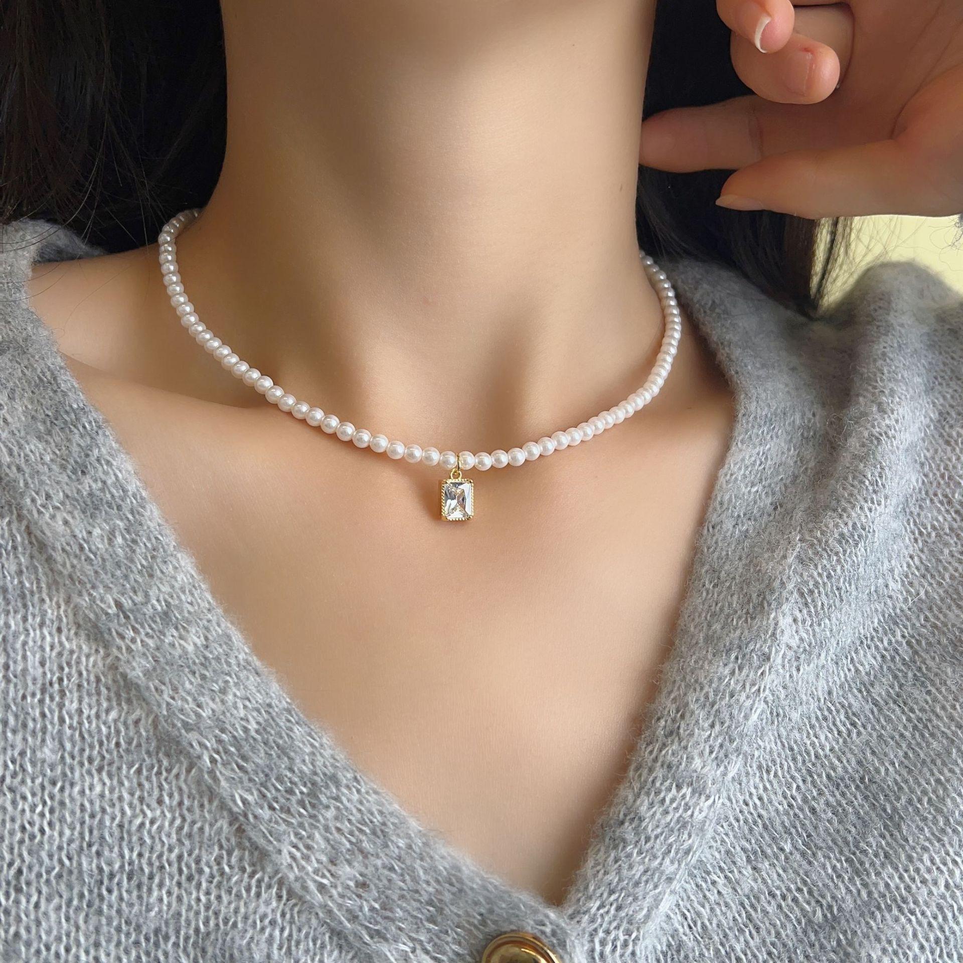 Collar con colgante de circón y perlas Shijia, de nicho, ligero, de lujo, combina con todo, francés, retro, romántico, cuadrado, con diamantes, cadena de clavícula.