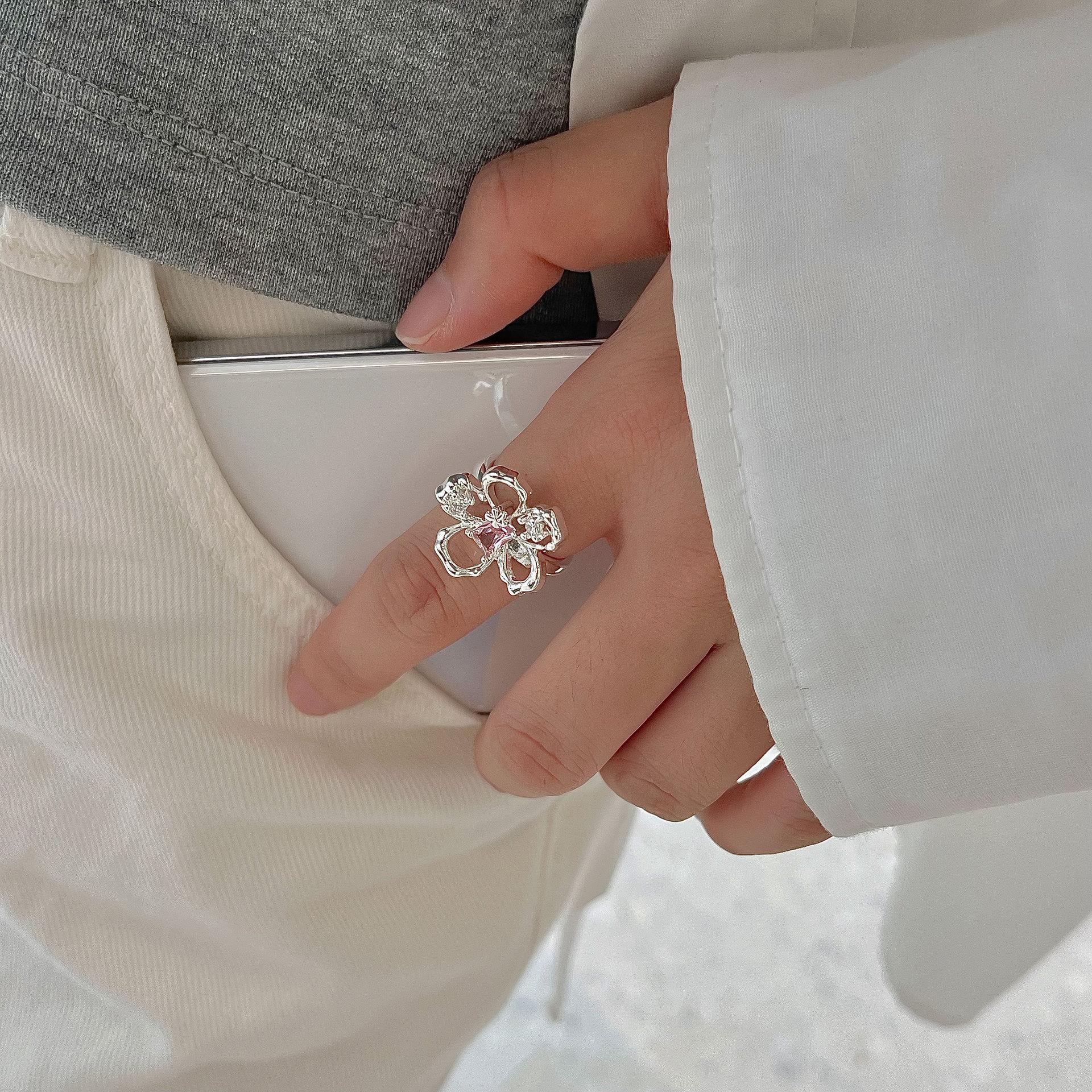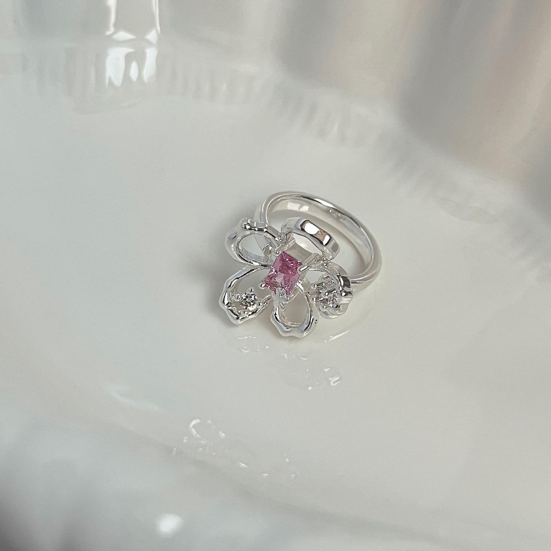 Anillo de Diamantes Flor del Bosque Femenino, Personalizado, Anillo Moderno y Elegante, Diseño de Nicho, Anillo de Chica Fresca Pequeña