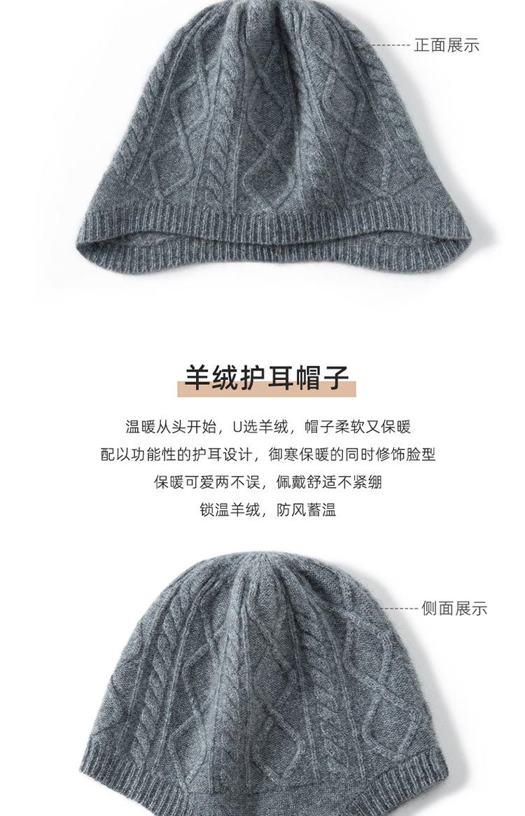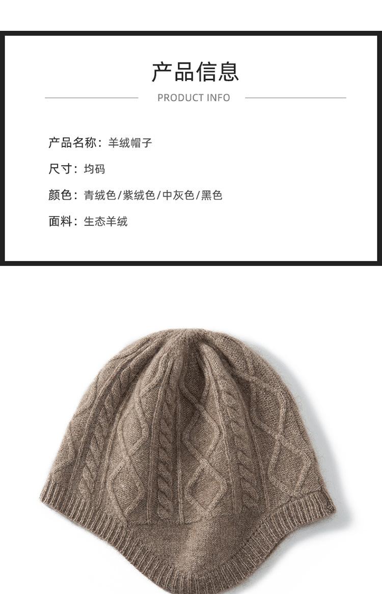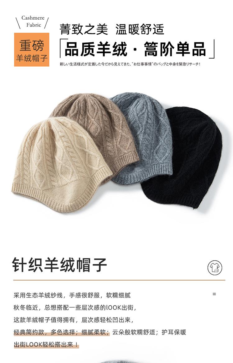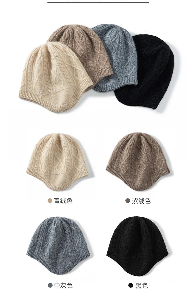 Gorro de cachemira para mujer, otoño e invierno, versátil, estilo coreano, tejido de lana, protección para los oídos, cálido, informal, sombrero de piloto