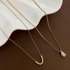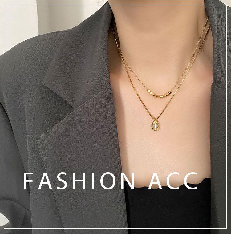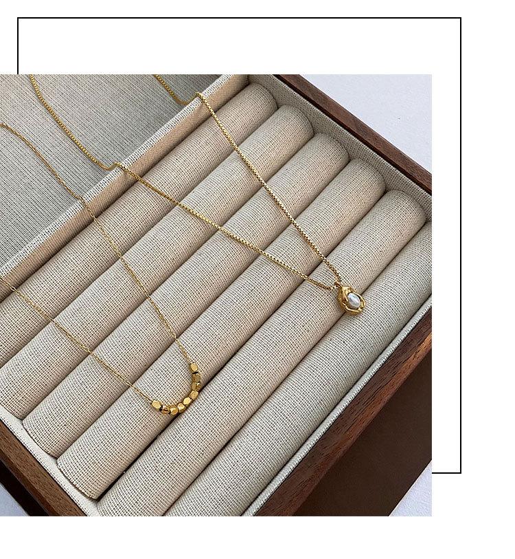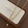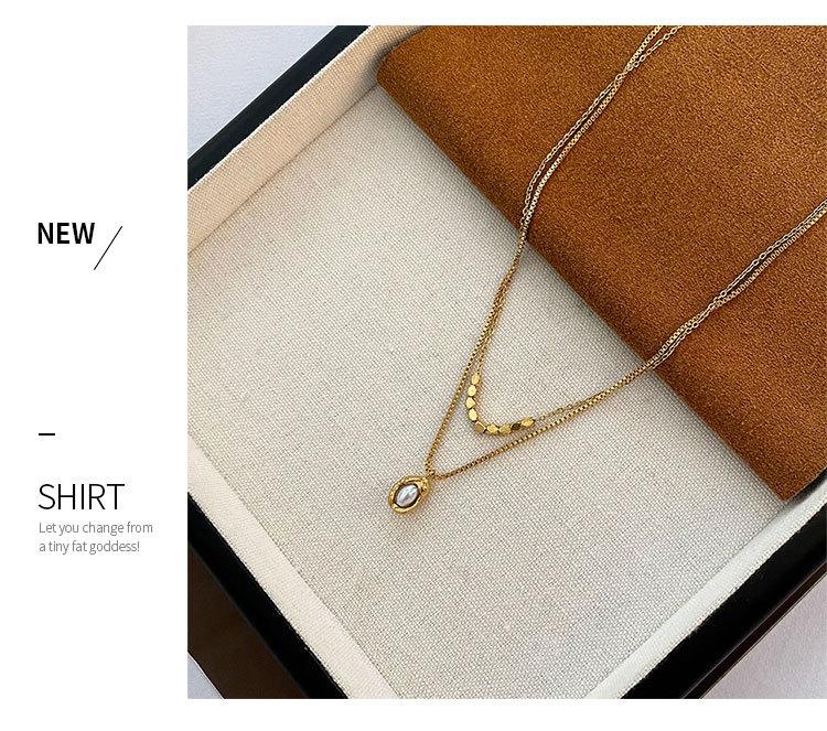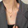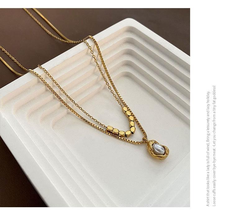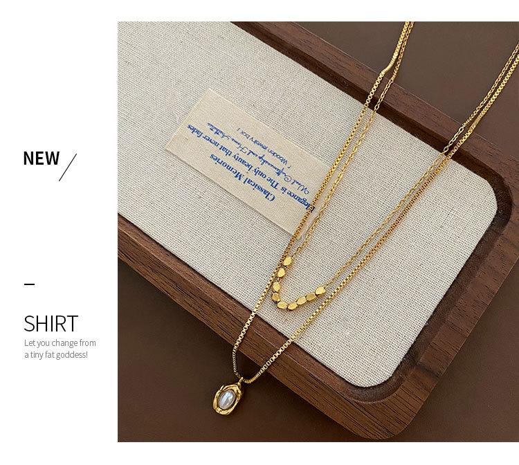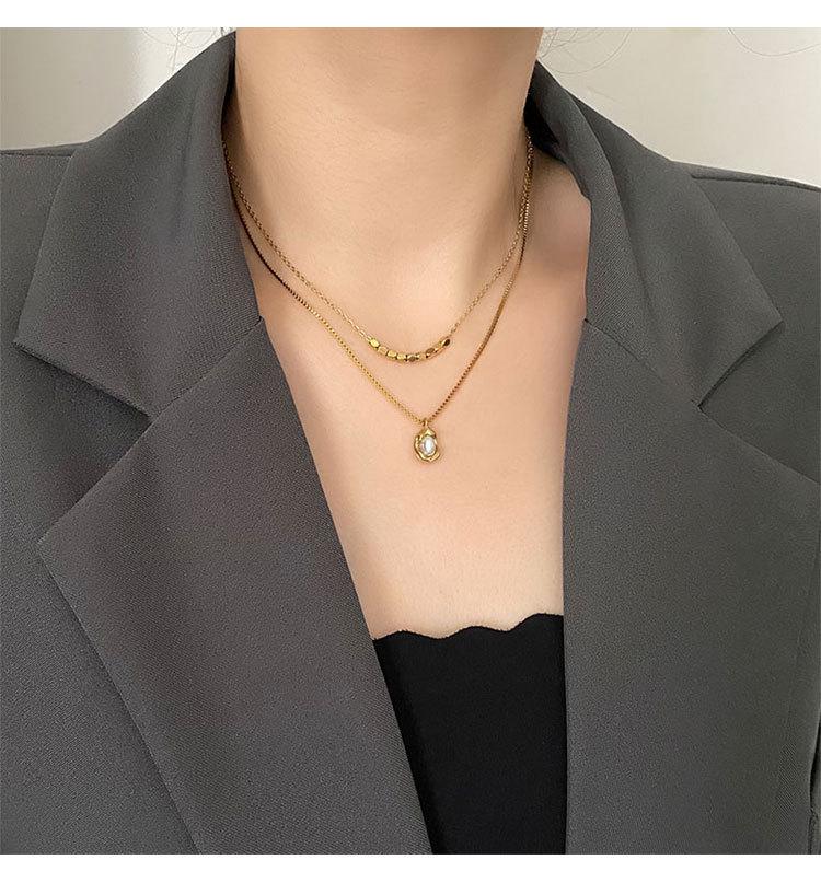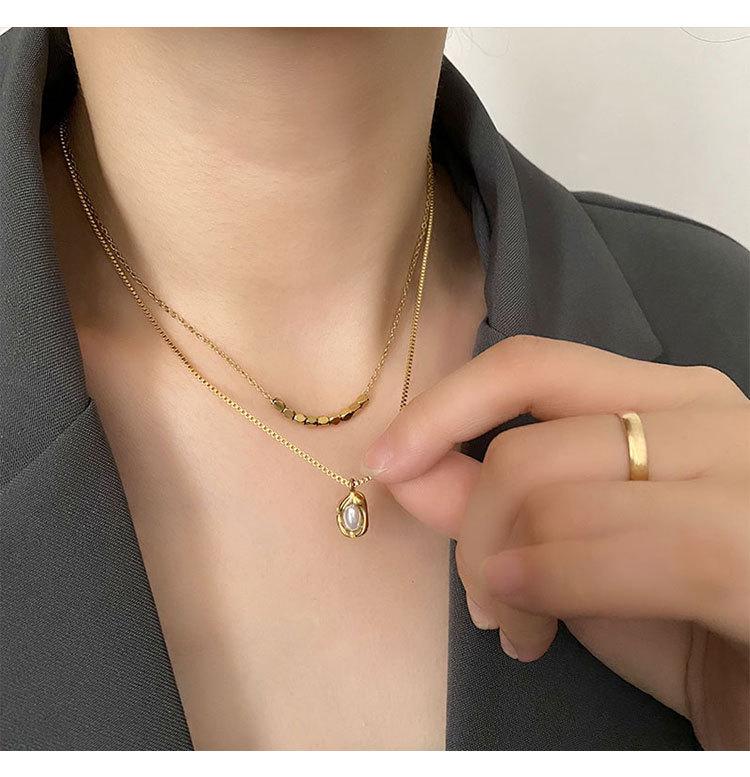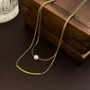 Collar Cuadrado Pequeño de Perlas Tipo Guisante Apiladas de Doble Capa para Mujer, Sencillo, Combinable con Todo, Acero de Titanio, Color de Alta Gama Libre de Decoloración, Cadena para Clavícula