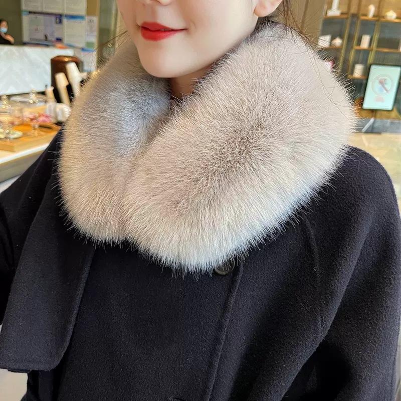 Invierno engrosado piel sintética piel de zorro unisex chaqueta acolchada de algodón bufanda abrigo cuello redondo cuello de piel compra individual cuello falso