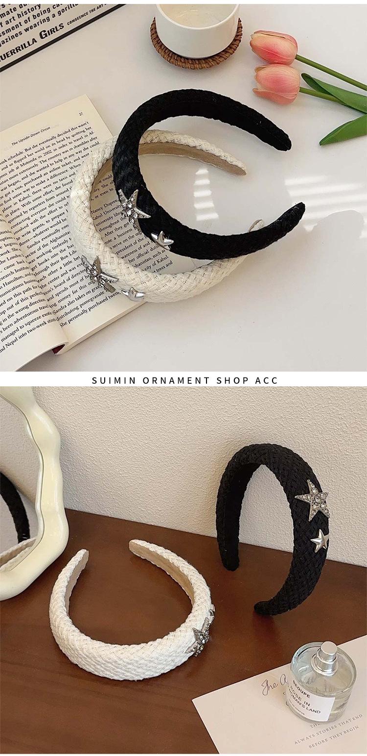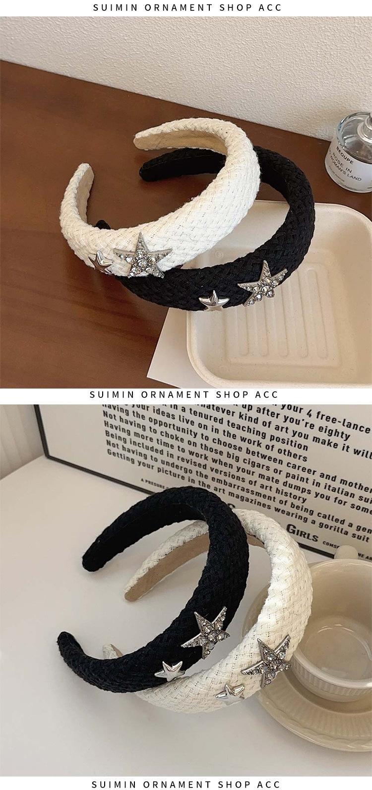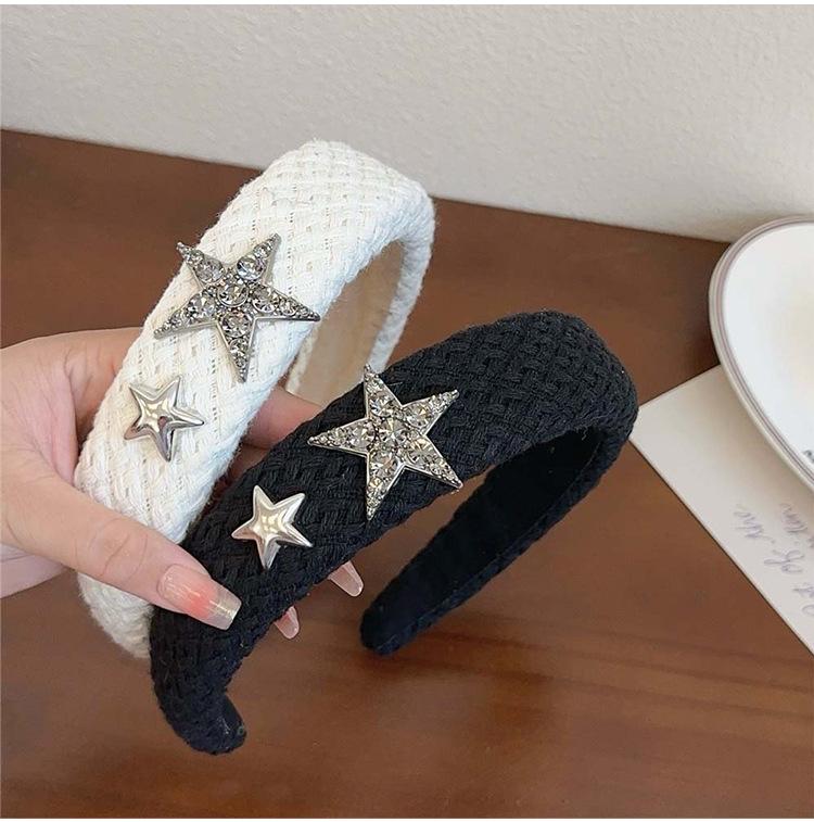 Francés Retro Nuevo 2025 Estrella Corona Alta Diadema Ancha Diseño Nicho Ins Diamante Brillante Accesorio para el Cabello de Alta Gama