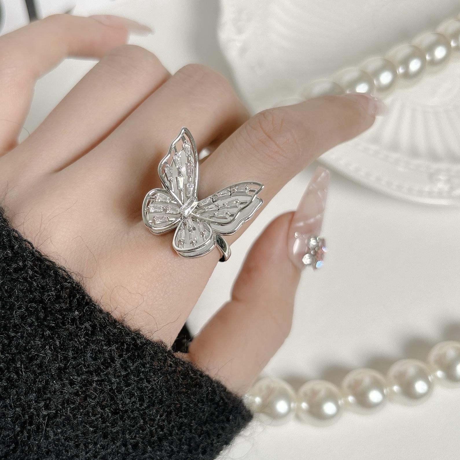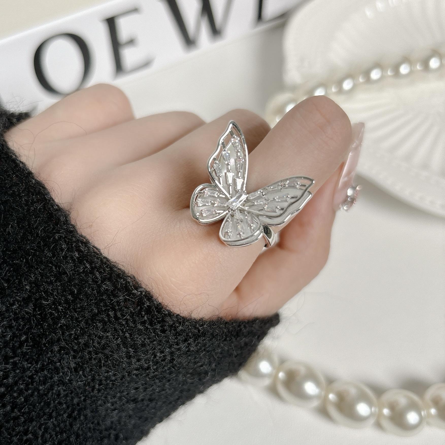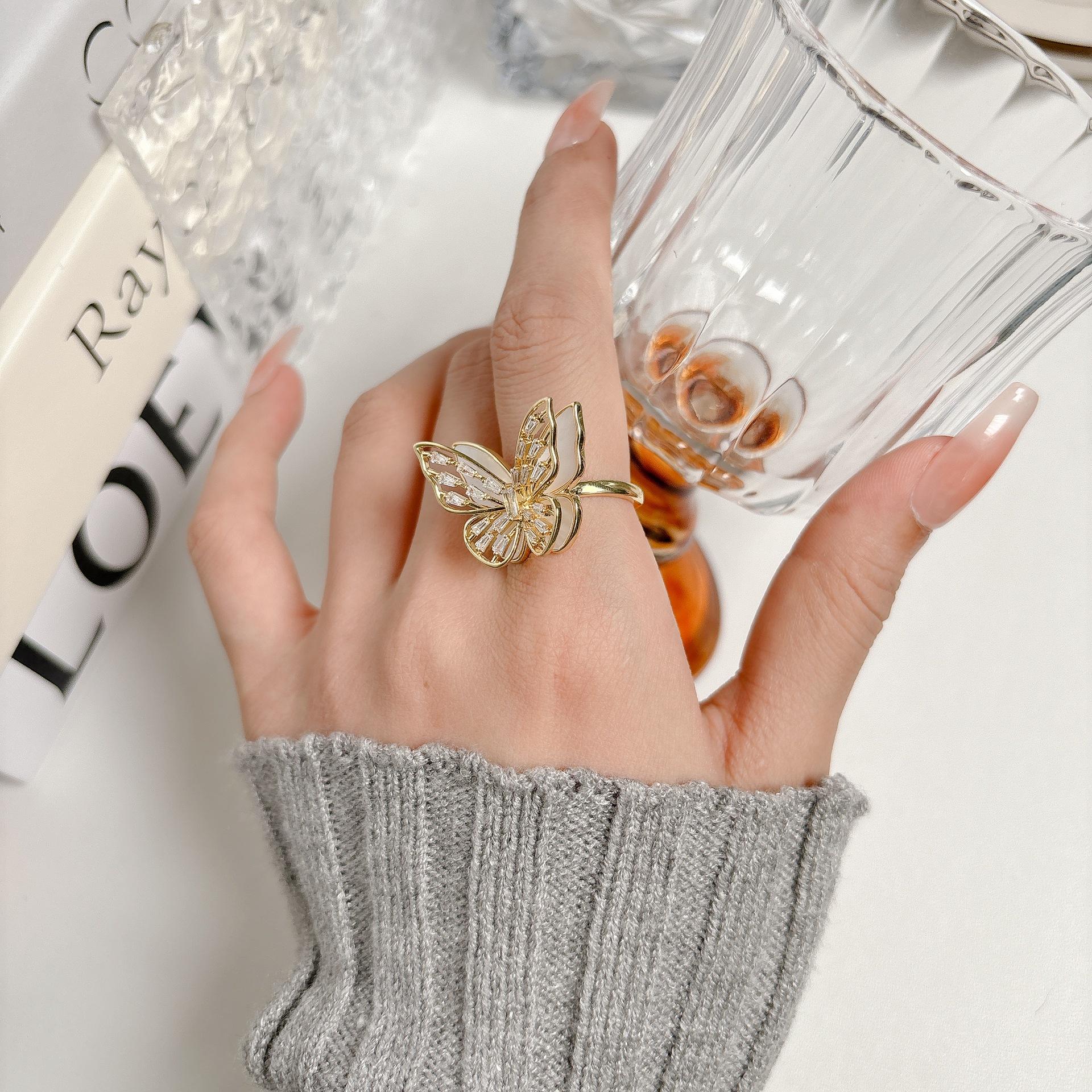 Anillo Abierto de Mariposa de Concha Natural Blanca de Doble Capa Anillo Elegante Nicho para Mujer Lujo Accesible de Alta Gama Moda Anillo para Dedo Índice
