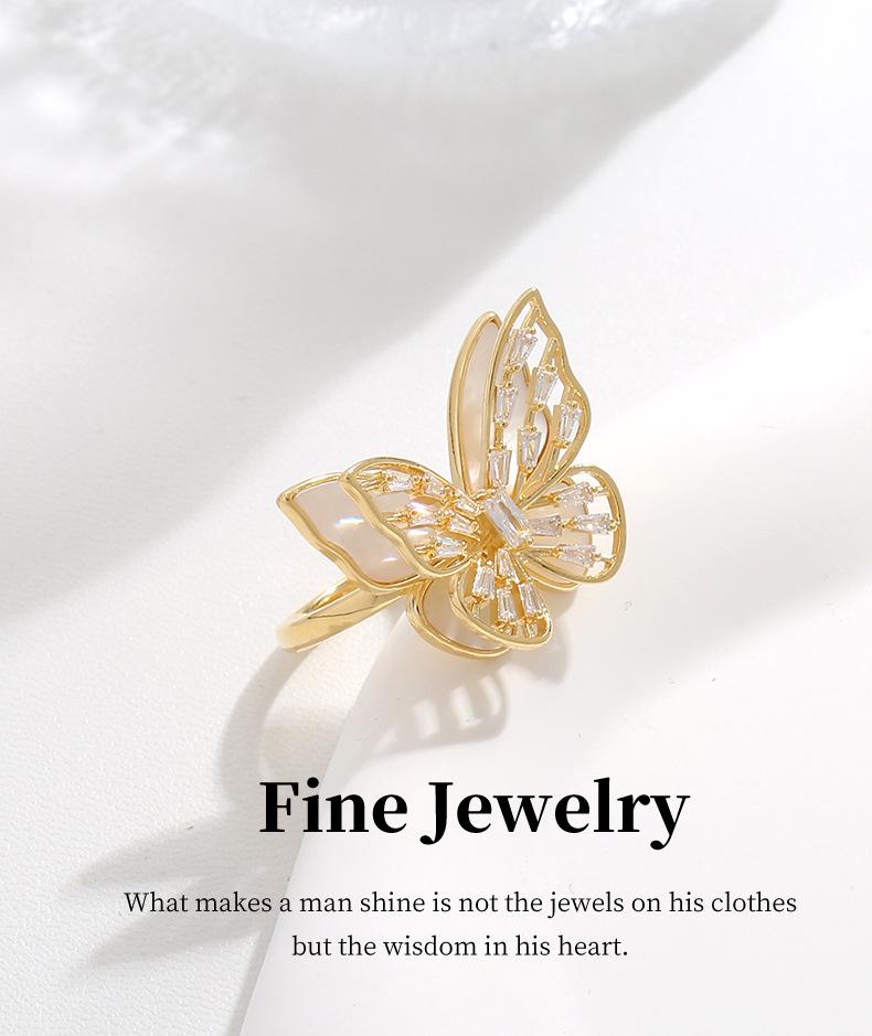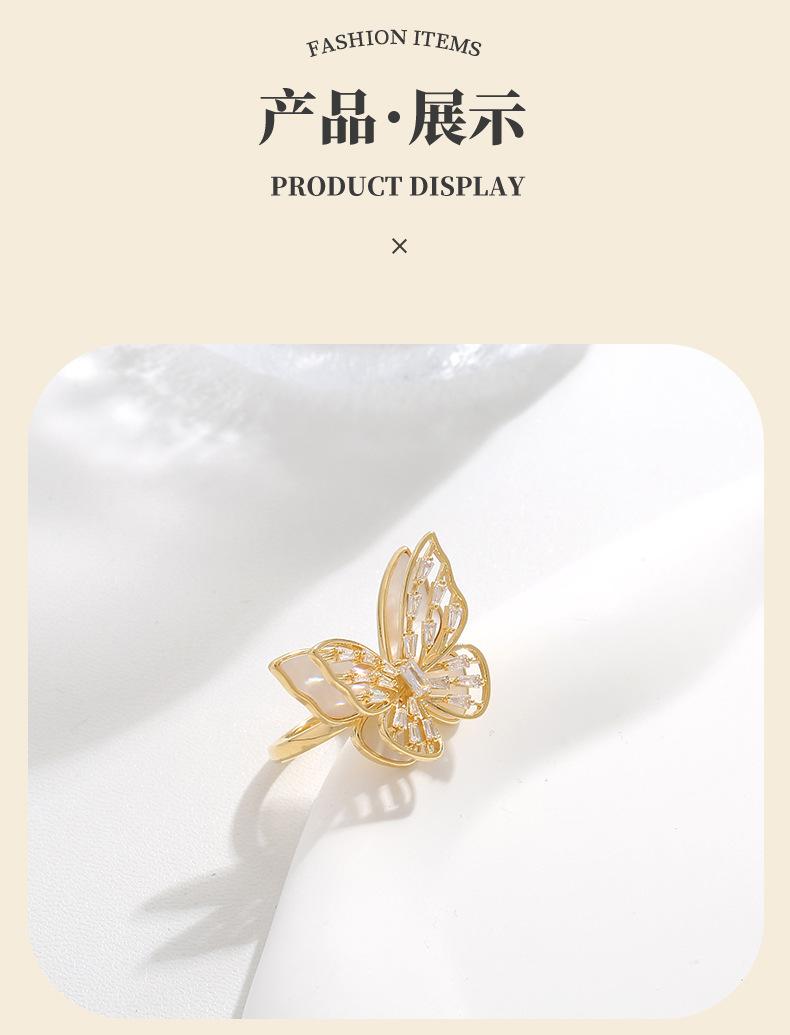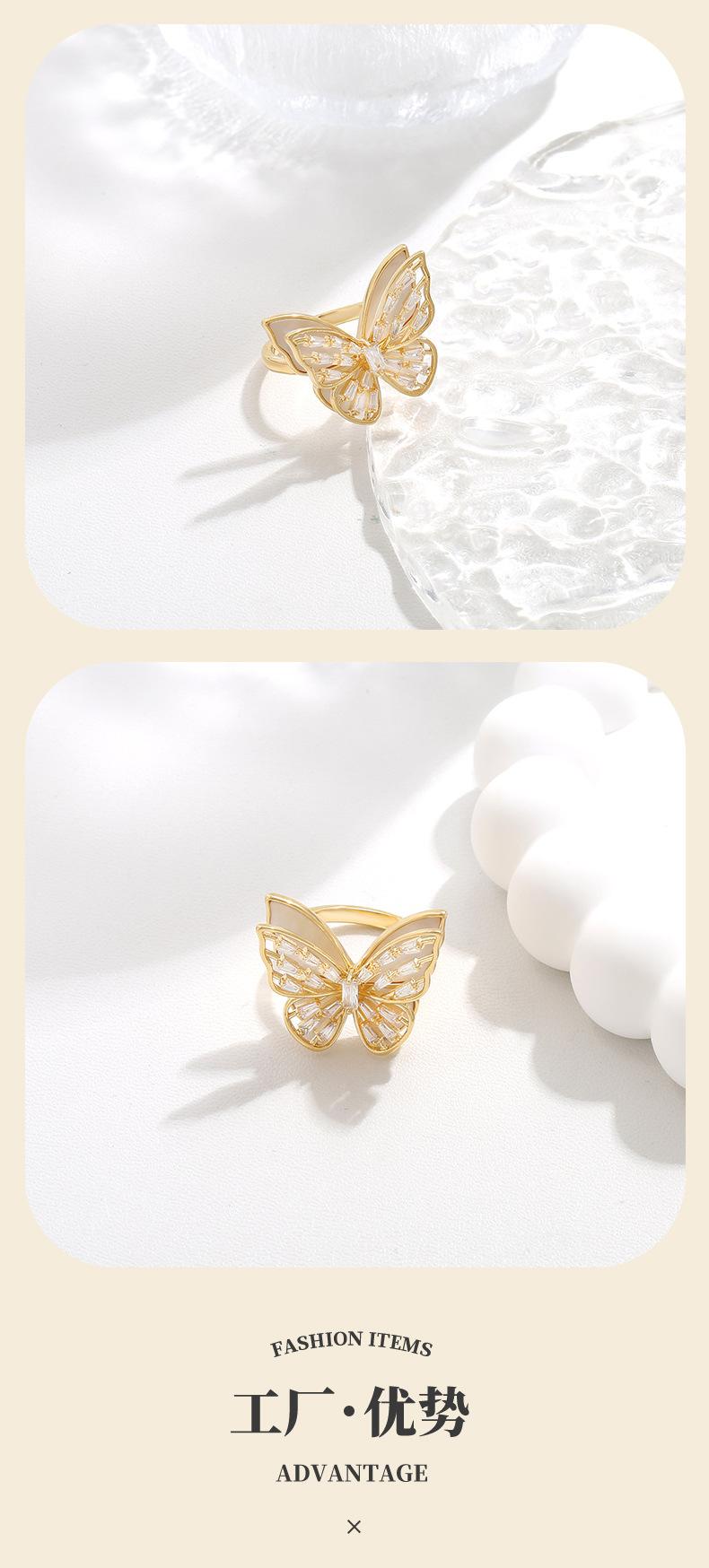 Anillo Abierto de Mariposa de Concha Natural Blanca de Doble Capa Anillo Elegante Nicho para Mujer Lujo Accesible de Alta Gama Moda Anillo para Dedo Índice