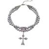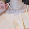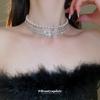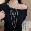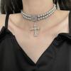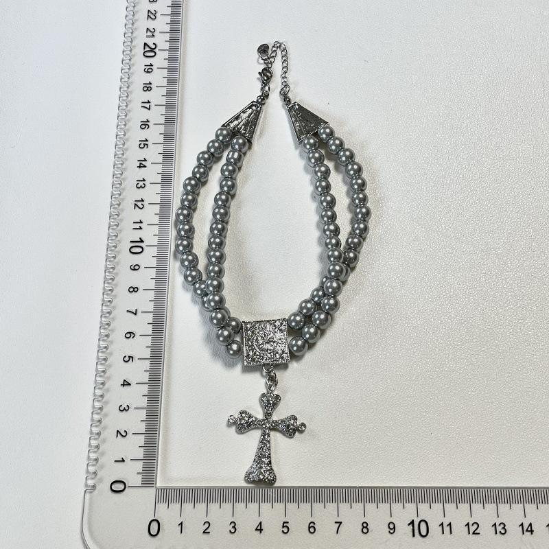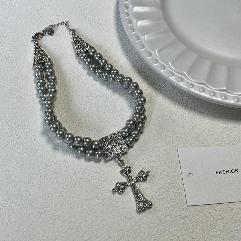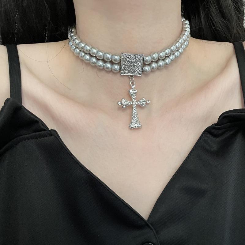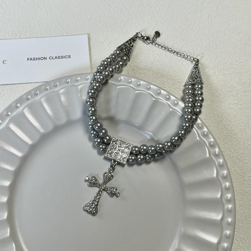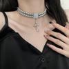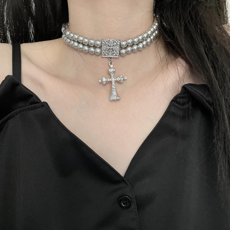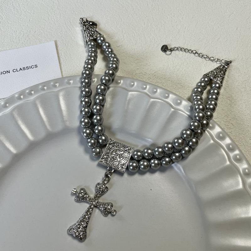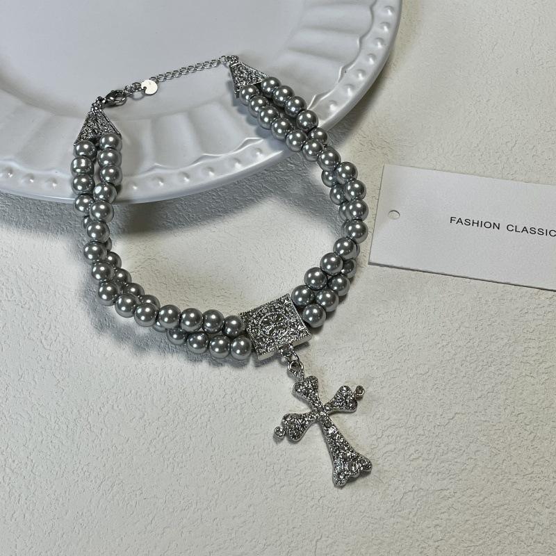 Collar de perlas multicapa con cruz incrustada de diamantes de lujo ligero para mujer, estilo europeo y americano, cadena de clavícula elegante y moderna.