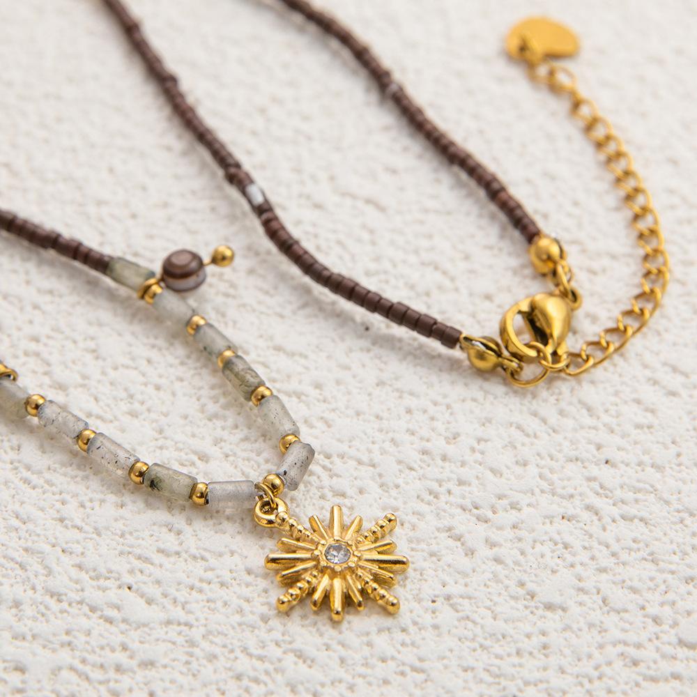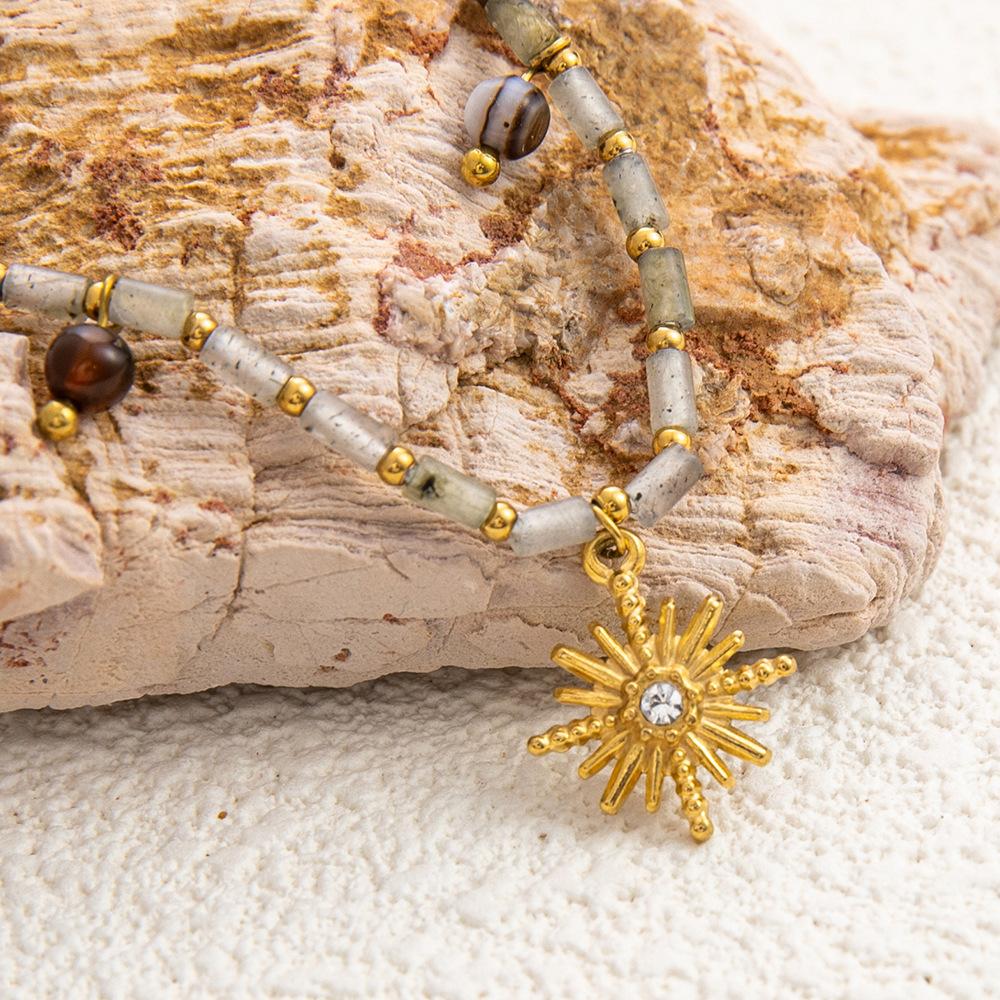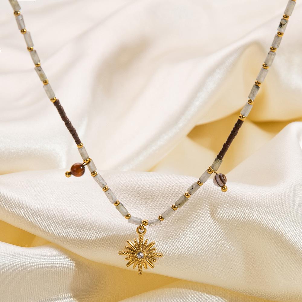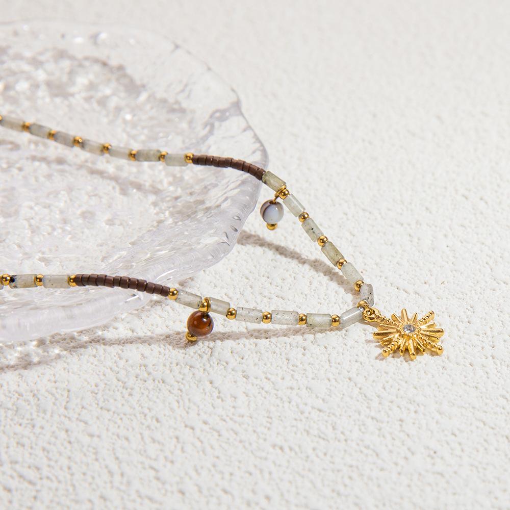 Collar con colgante de girasol de piedra natural, estilo retro, de alta gama, con cadena de clavícula de acero inoxidable de lujo.