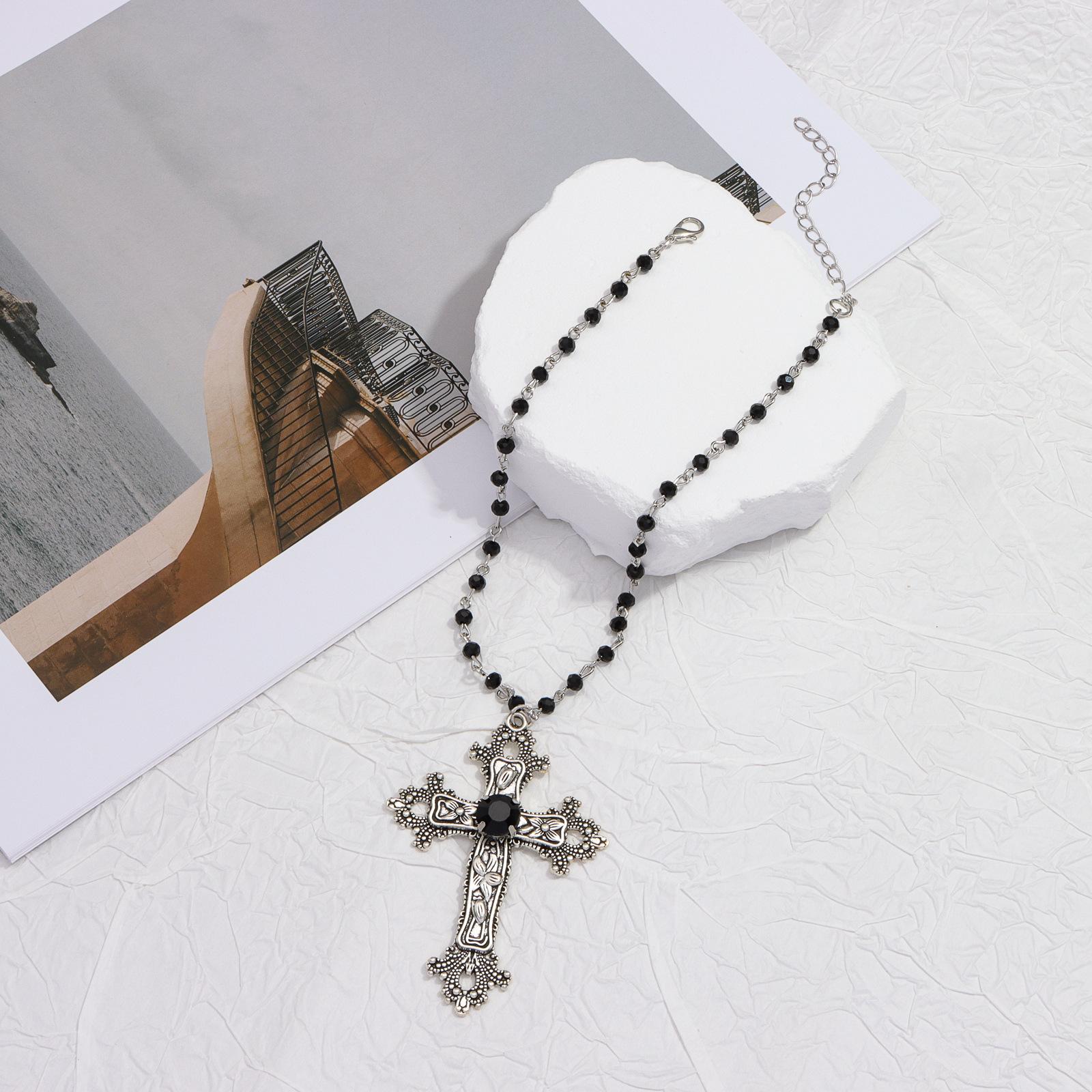 Joyería transfronteriza europea y americana, collar de hip-hop, colgante de cruz, cadena de clavícula oscura, collar gótico punk exagerado