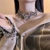 Collar antiguo de perla y ojo de tigre para mujer, gargantilla industrial, cadena de clavícula ligera de lujo, elegante collar retro.