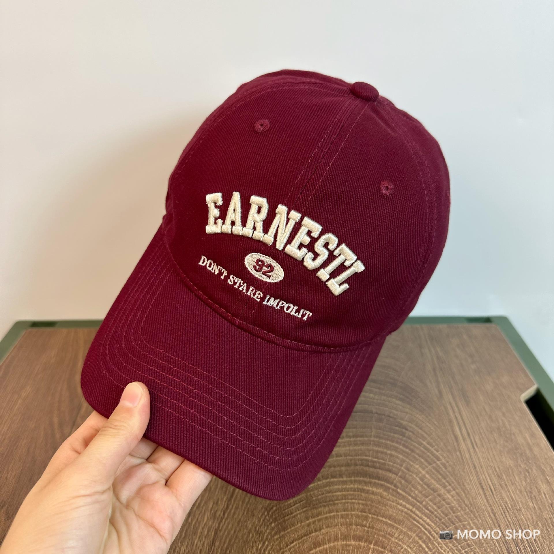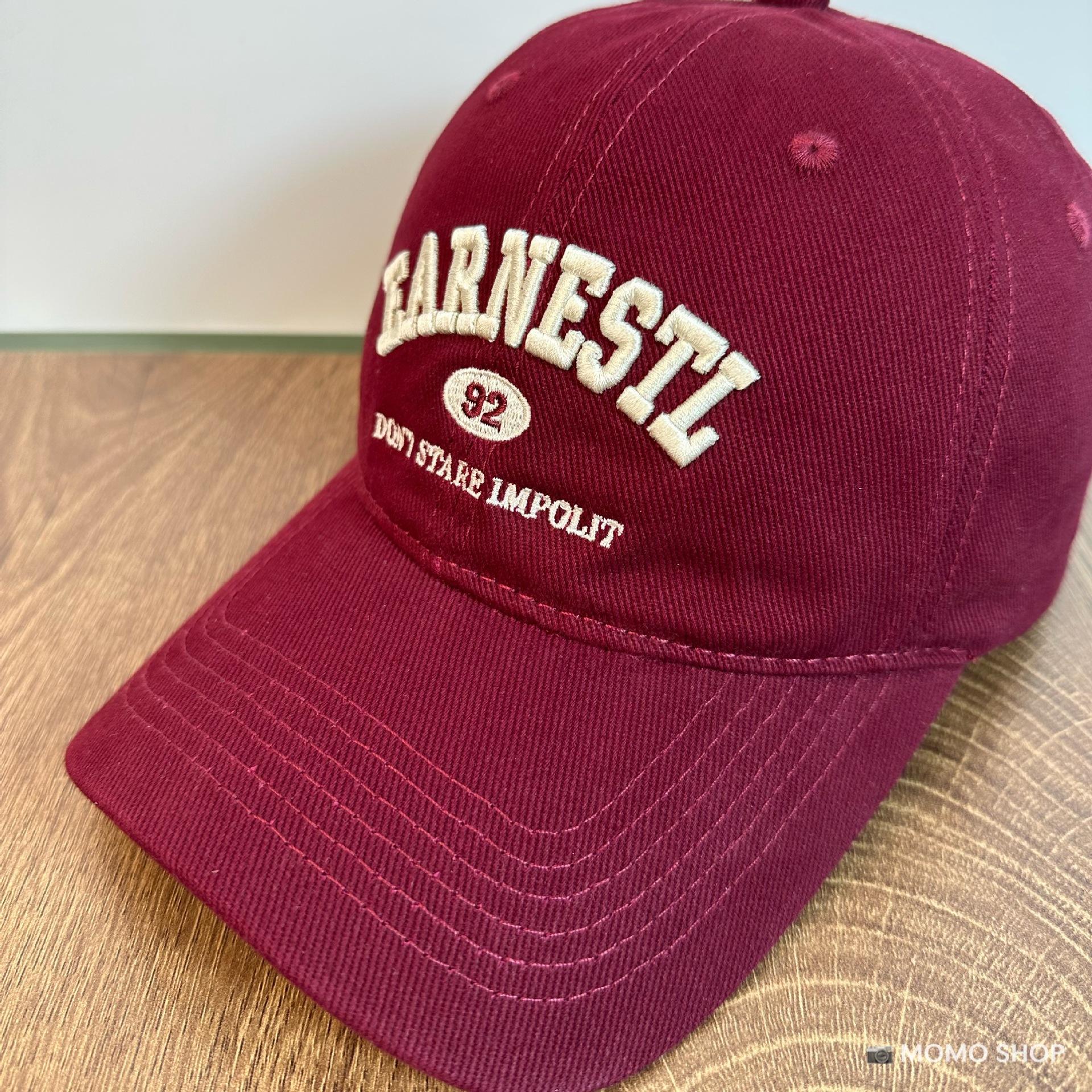 Gorra de béisbol estilo coreano para mujer, gorra grande bordada, suave, de ala ancha, pequeña, sencilla, color vino tinto