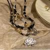 Collar de Seguridad Estilo Étnico Retro para Mujer 2024 Nuevo Popular Cadena de Clavícula con Cuentas Lujo Accesible Diseño Nicho