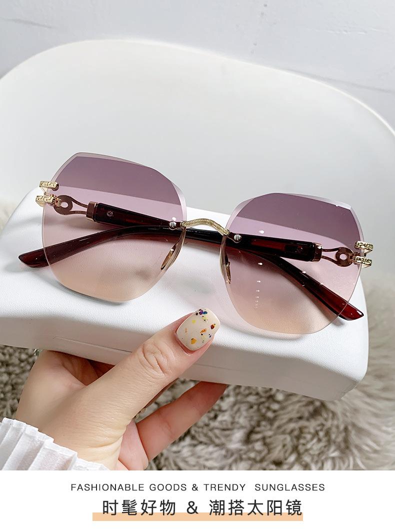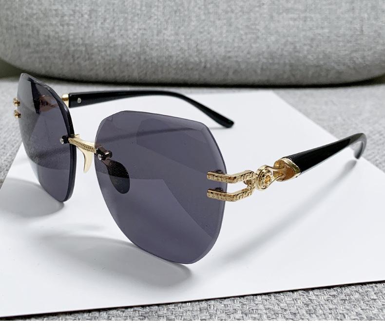 Nuevas gafas de sol de moda con borde sin marco poligonal, estilo retro, personalizadas, informales, con montura grande y anti-UV.
