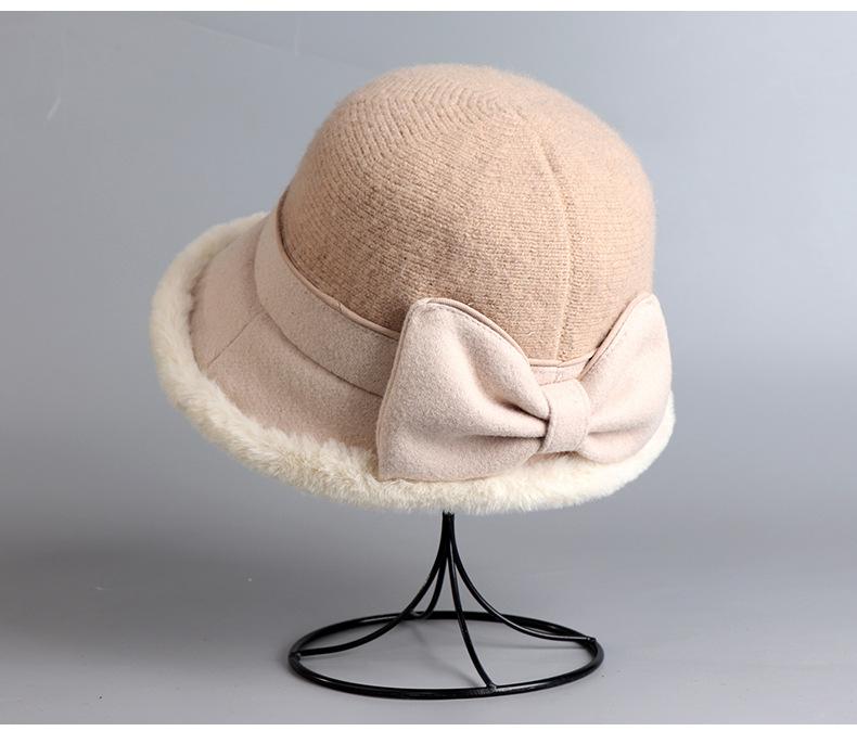 Gorro de pescador con lazo para mujer, gorro de lavabo de punto coreano, cálido y de felpa para actividades al aire libre, para otoño e invierno, venta al por mayor