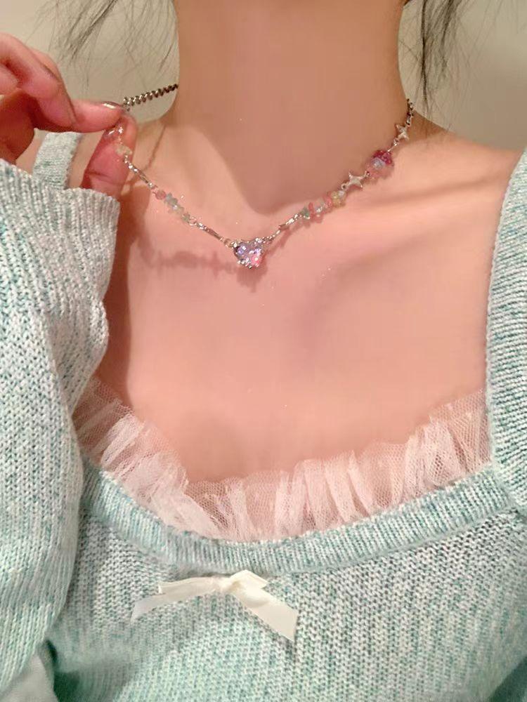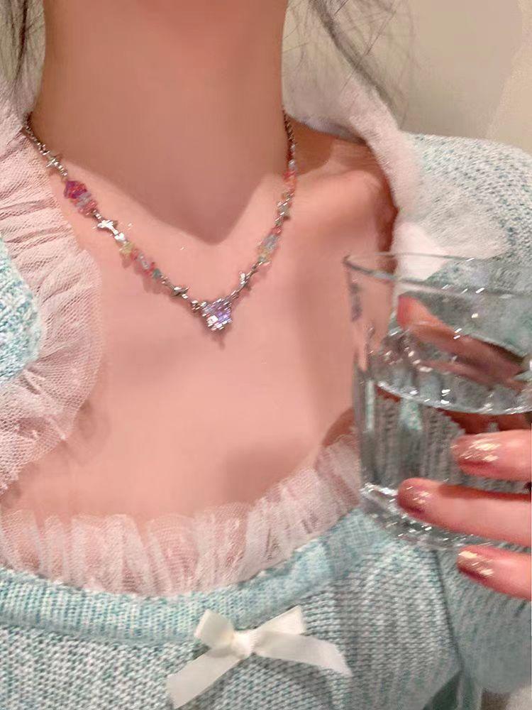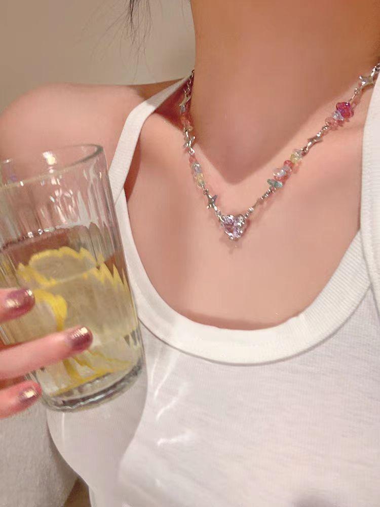 Dulce Cool Explosivo Dopamina Rosa Amor Colgante Collar para Mujer Cadena Clavícula Nicho Lujo Ligero de Alta Gama Accesorios