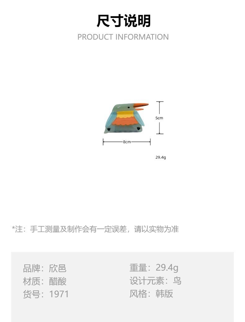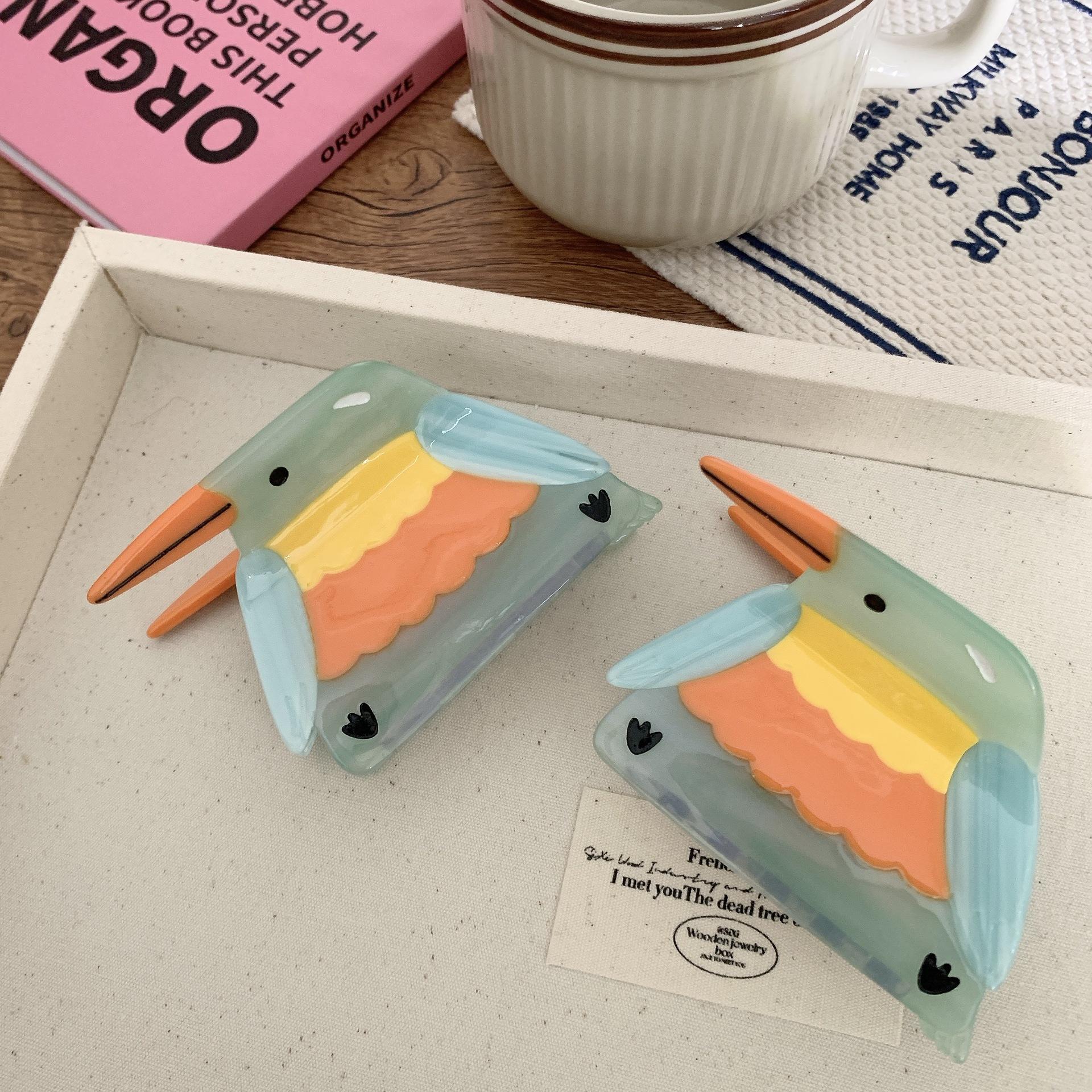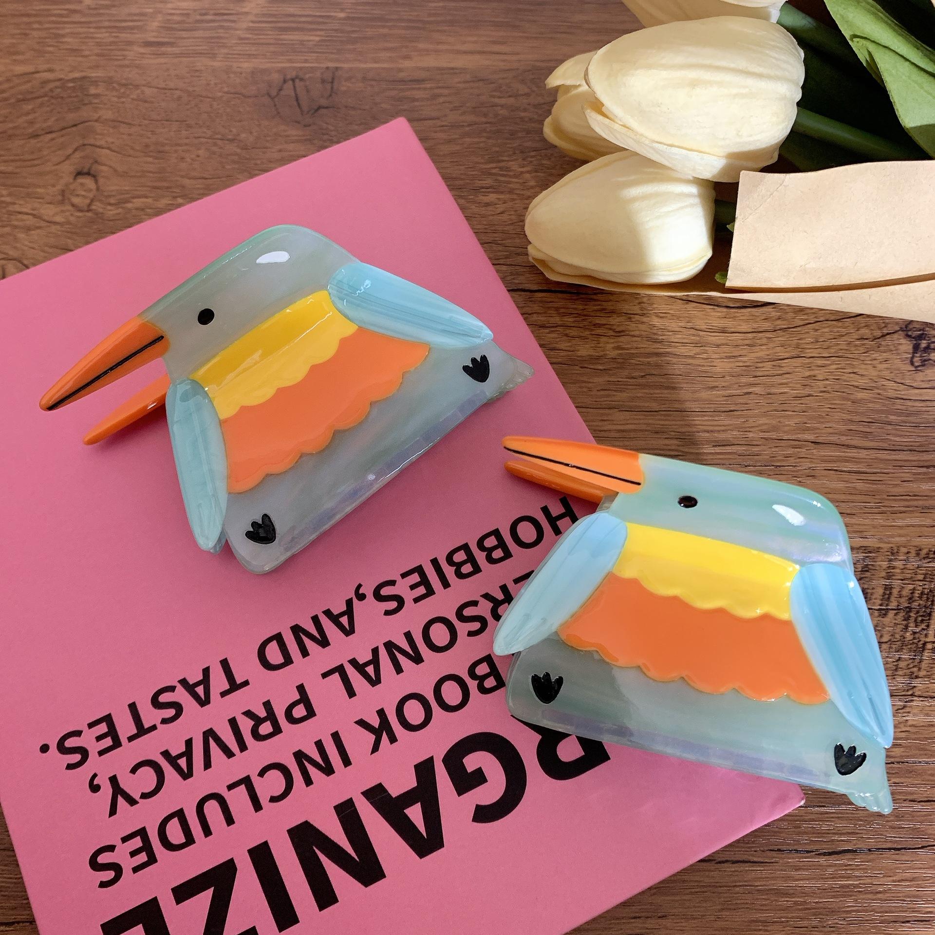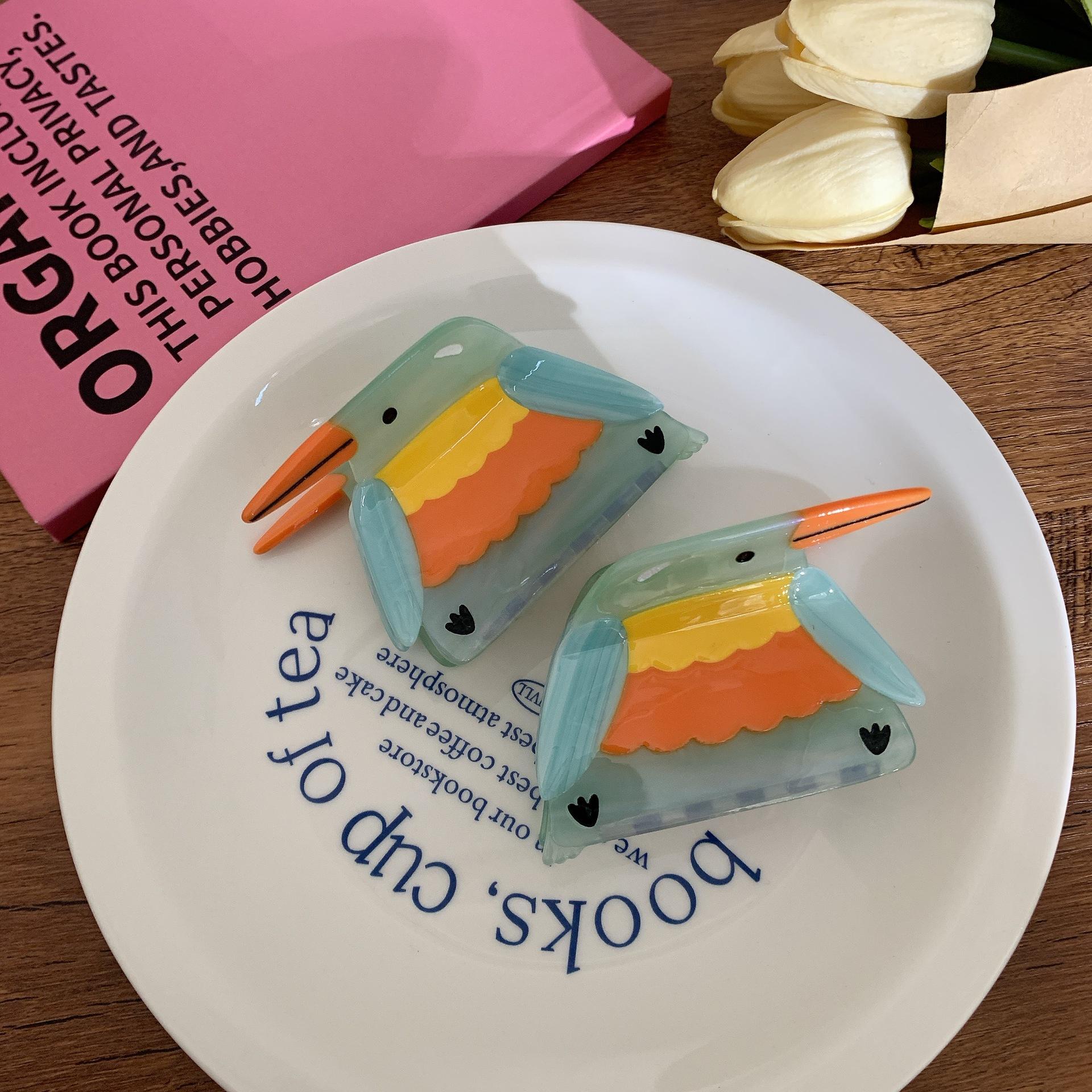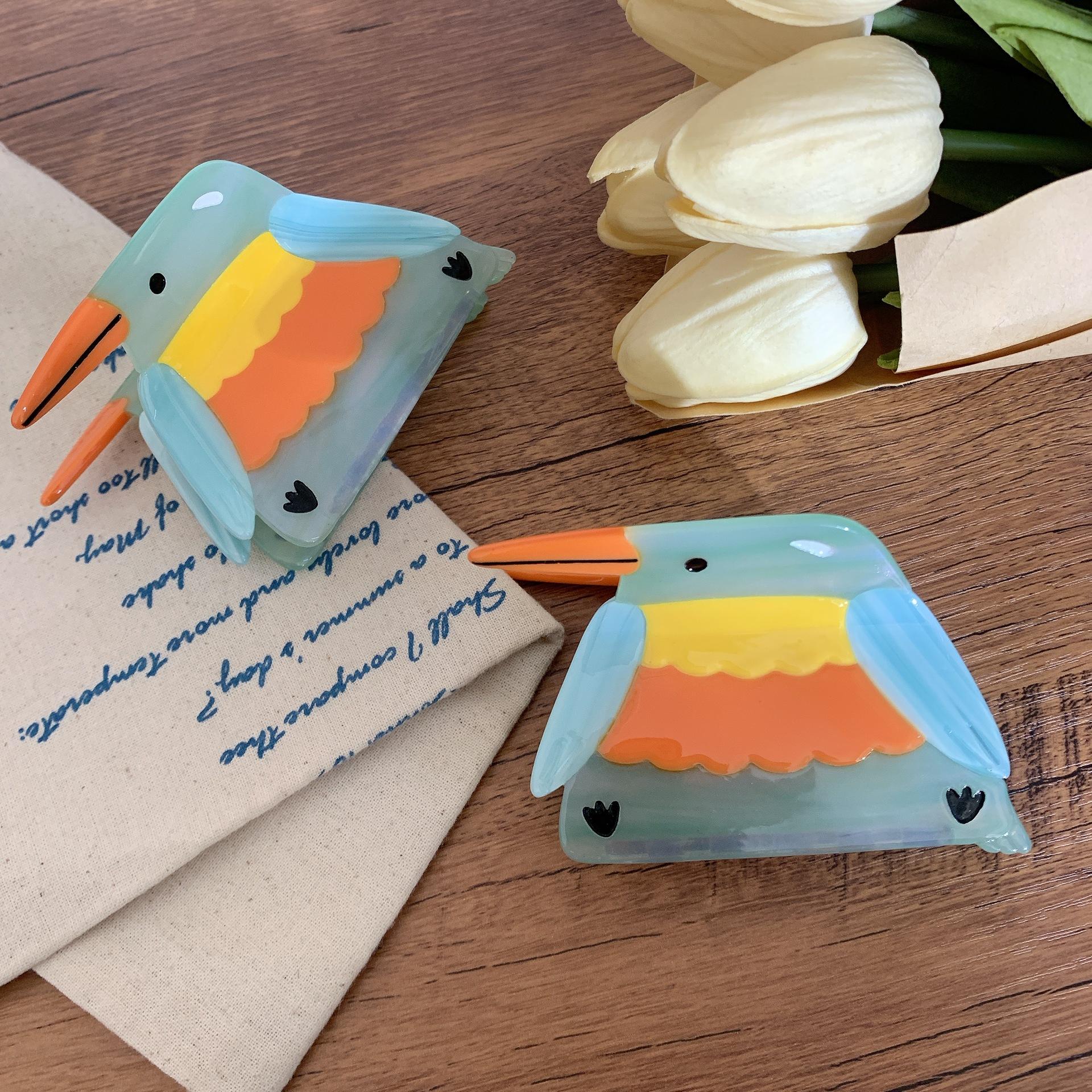 Horquilla de acetato con forma de pájaro de nicho francés, bonita y moderna, con forma de pájaro azul y tiburón, con forma de cola de caballo, accesorio para el cabello.