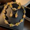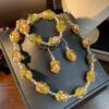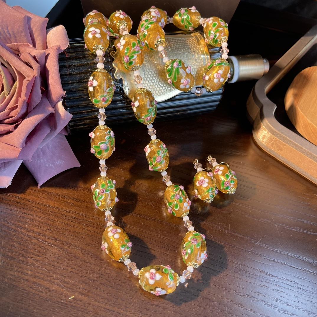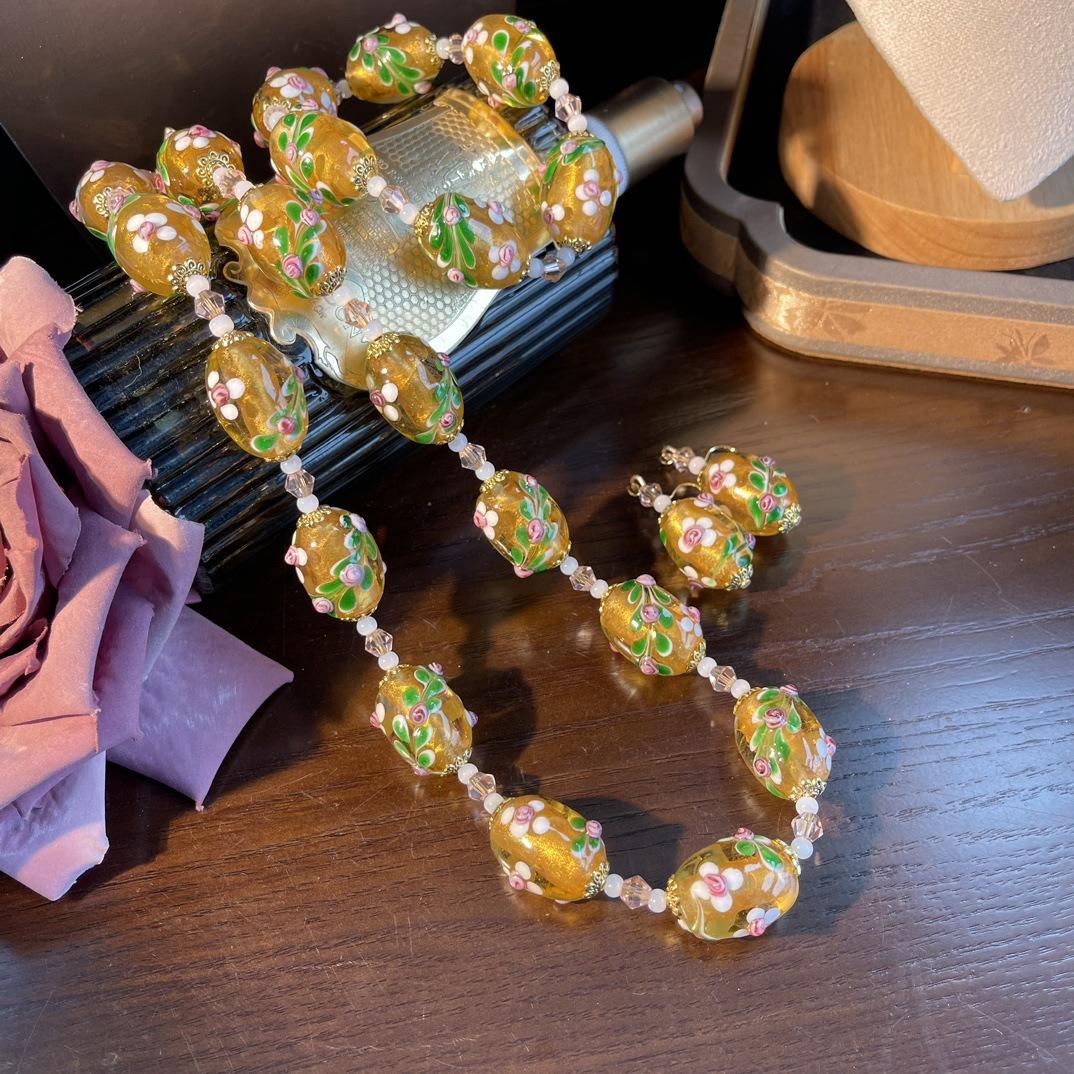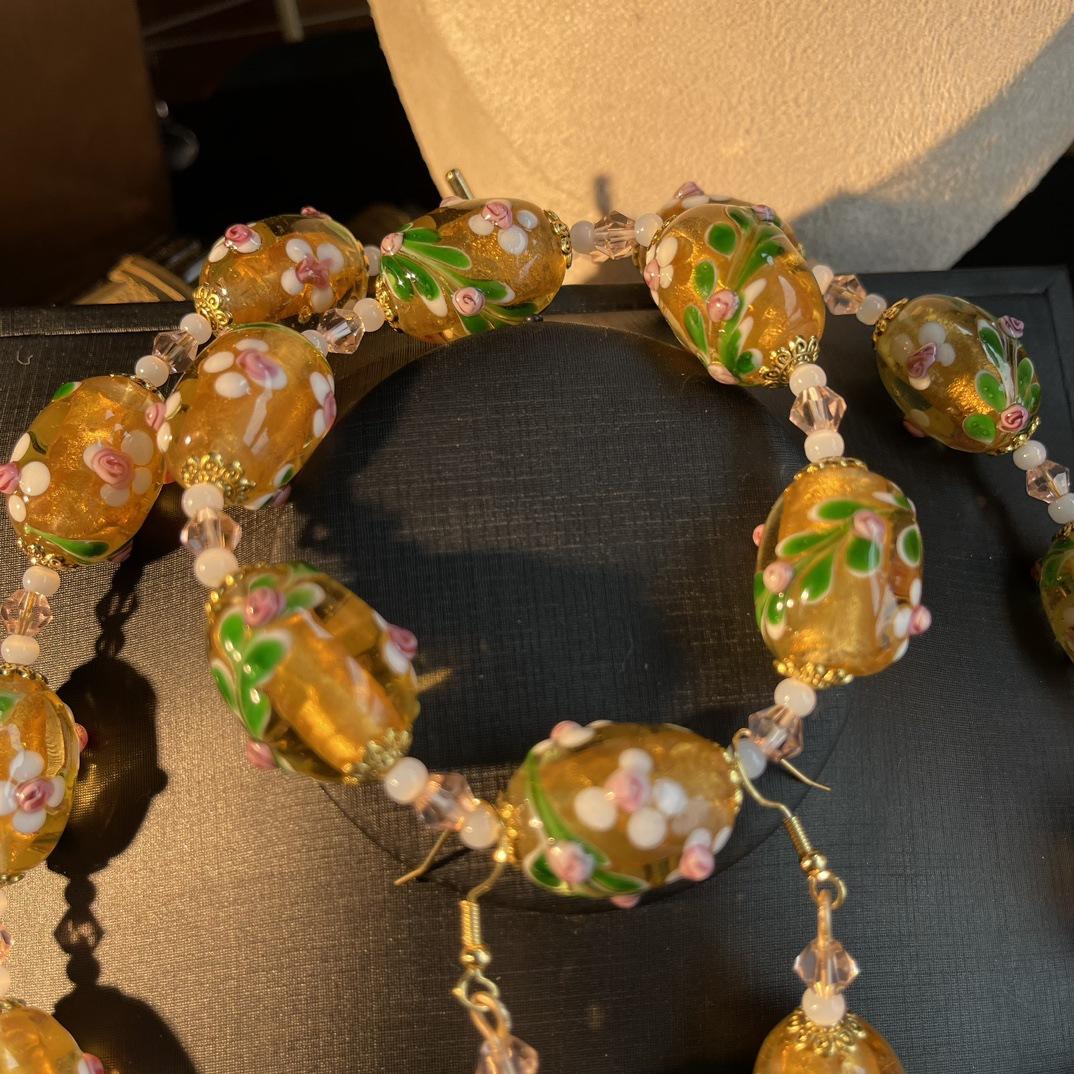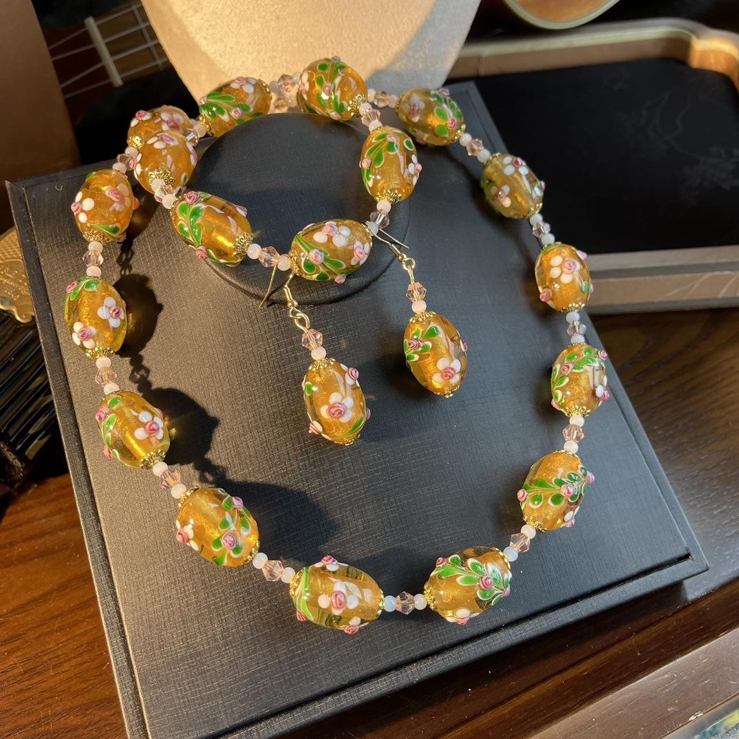 [Honey South] Collar con pulsera y pendientes de flores de Murano con lámina de oro estilo corte vintage
