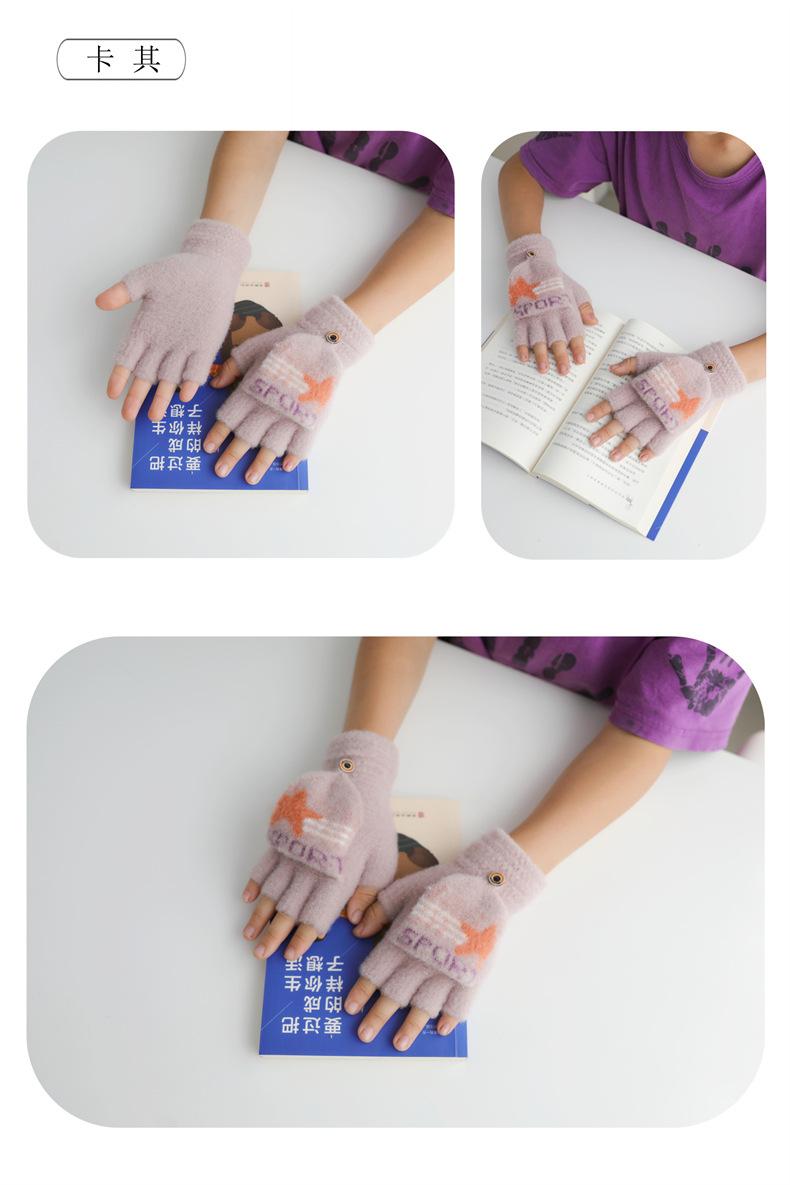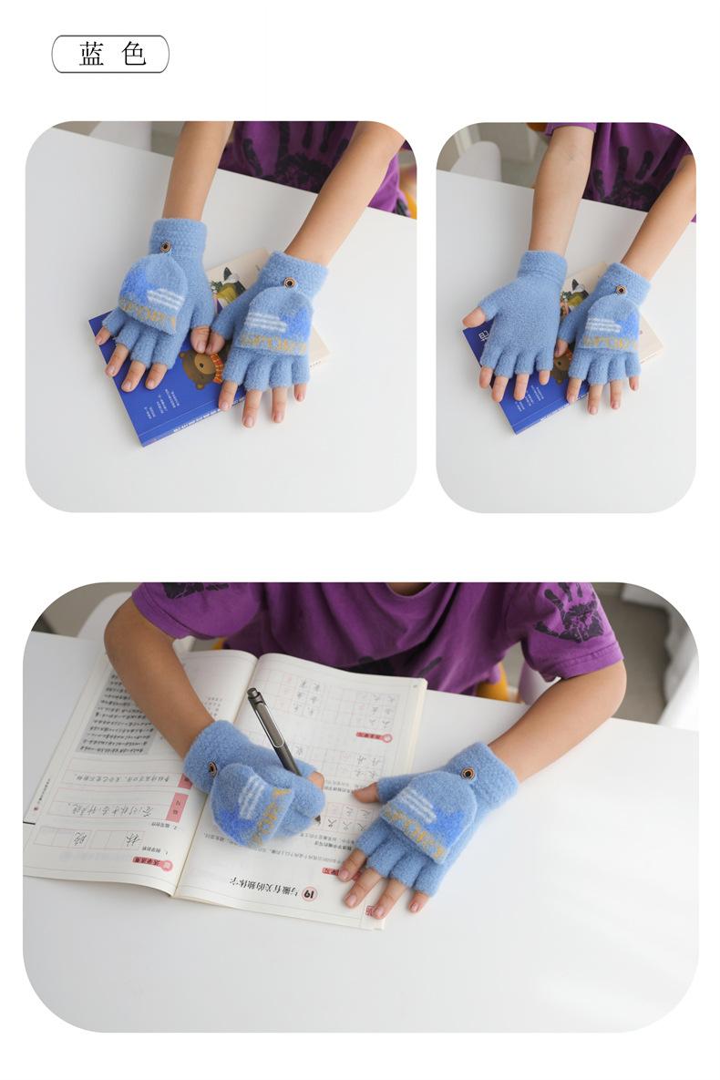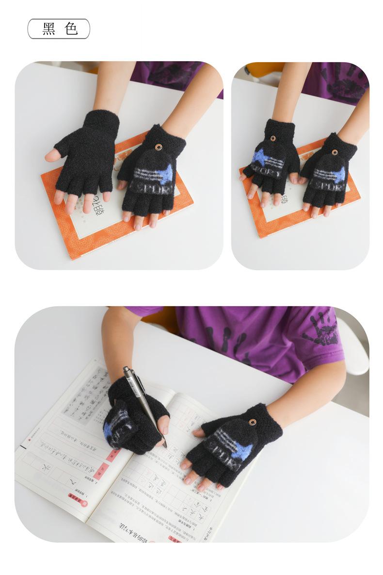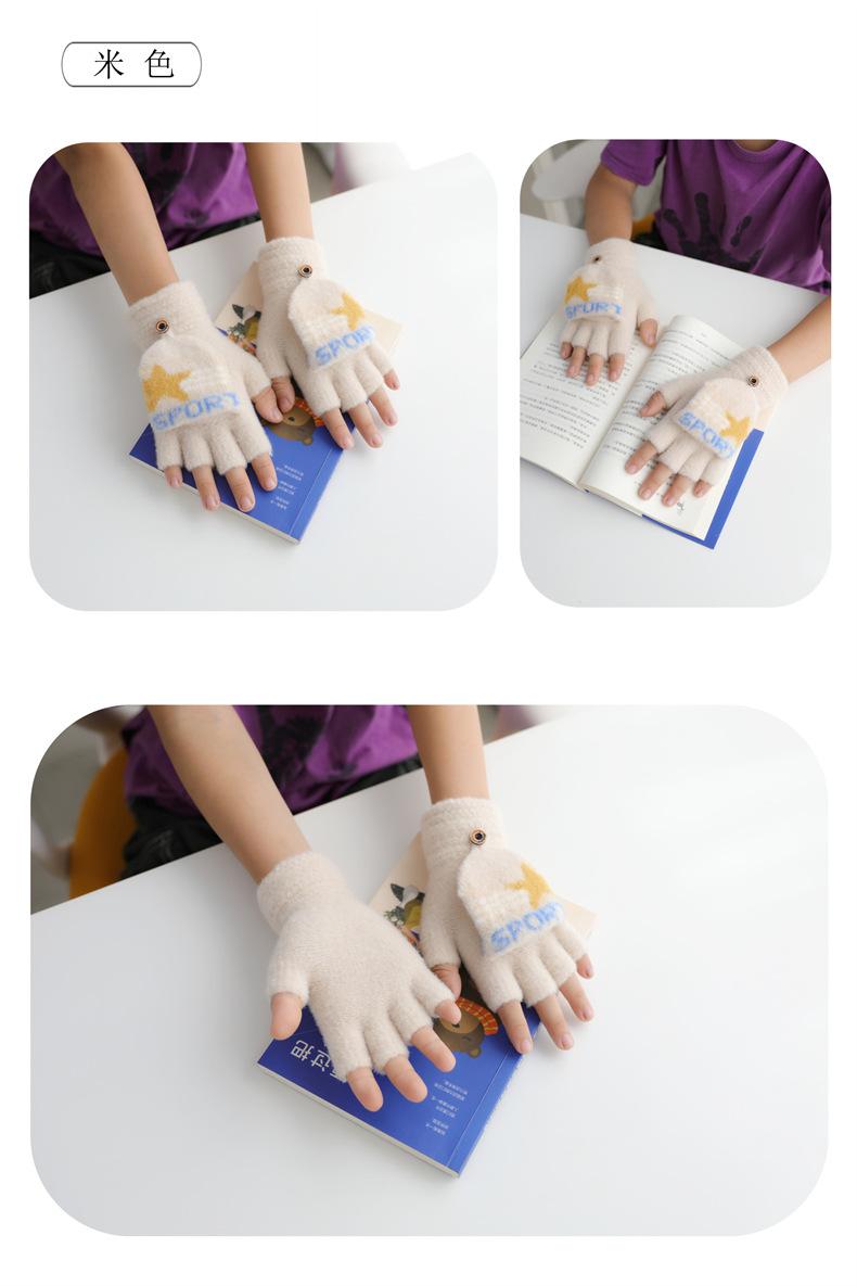 Guantes para niños Invierno Niños Niñas Lana Medio Dedo Solapa Engrosado Cálido Pequeño Estudiantes de Secundaria Escritura