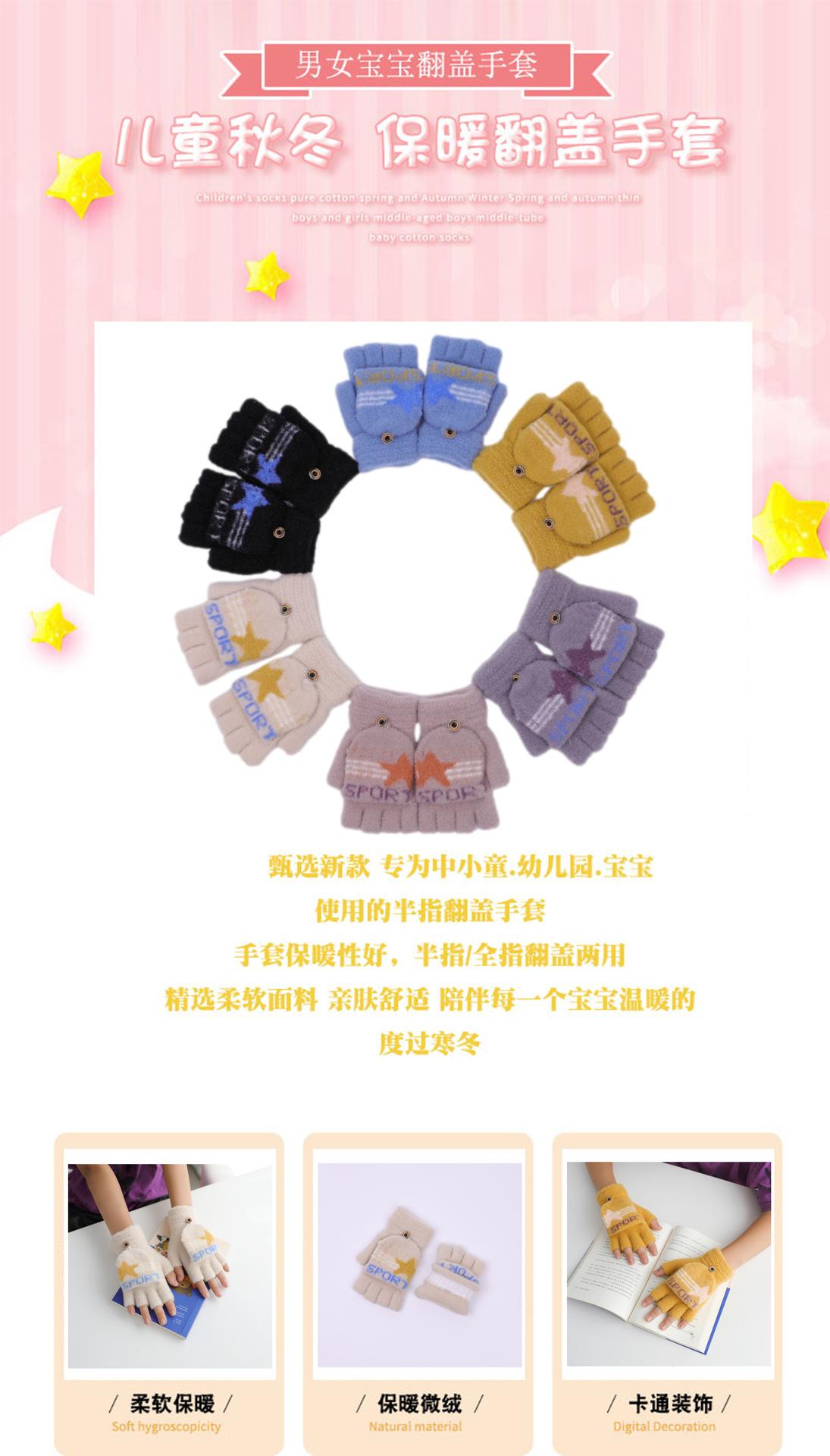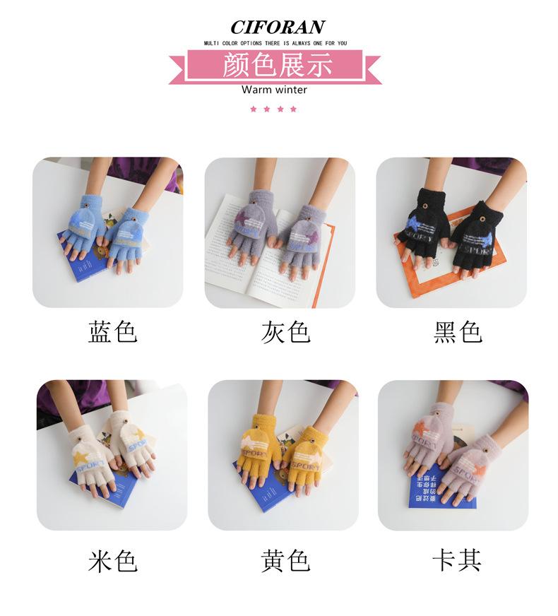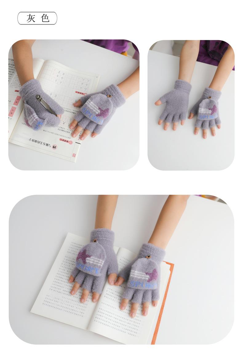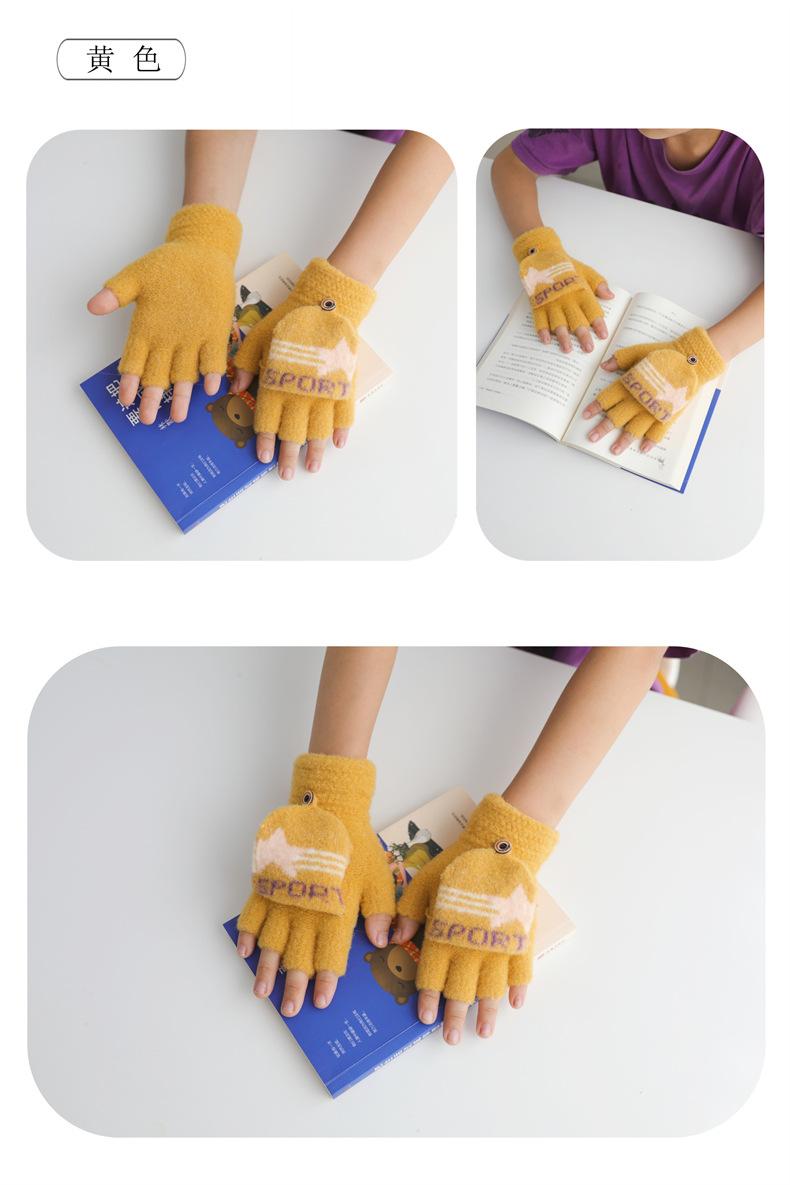 Guantes para niños Invierno Niños Niñas Lana Medio Dedo Solapa Engrosado Cálido Pequeño Estudiantes de Secundaria Escritura