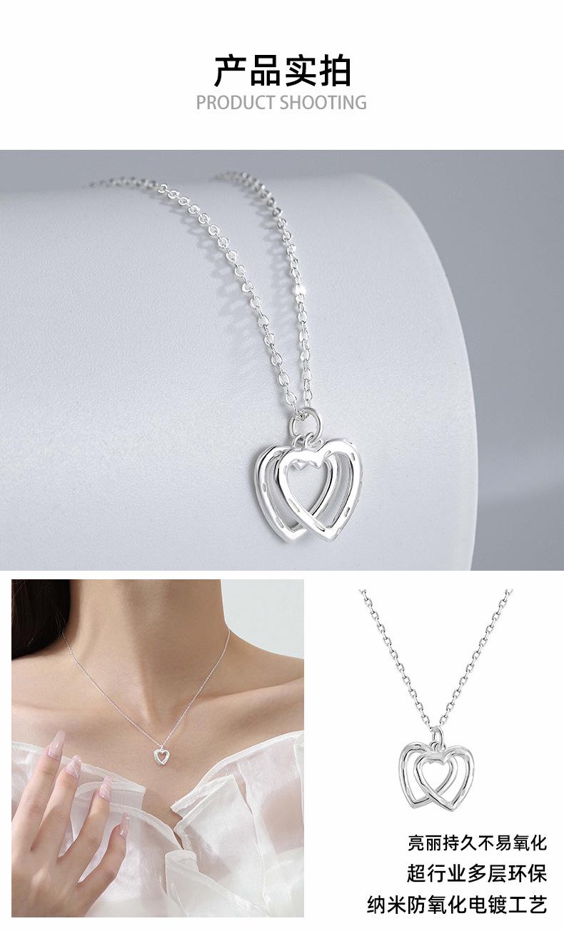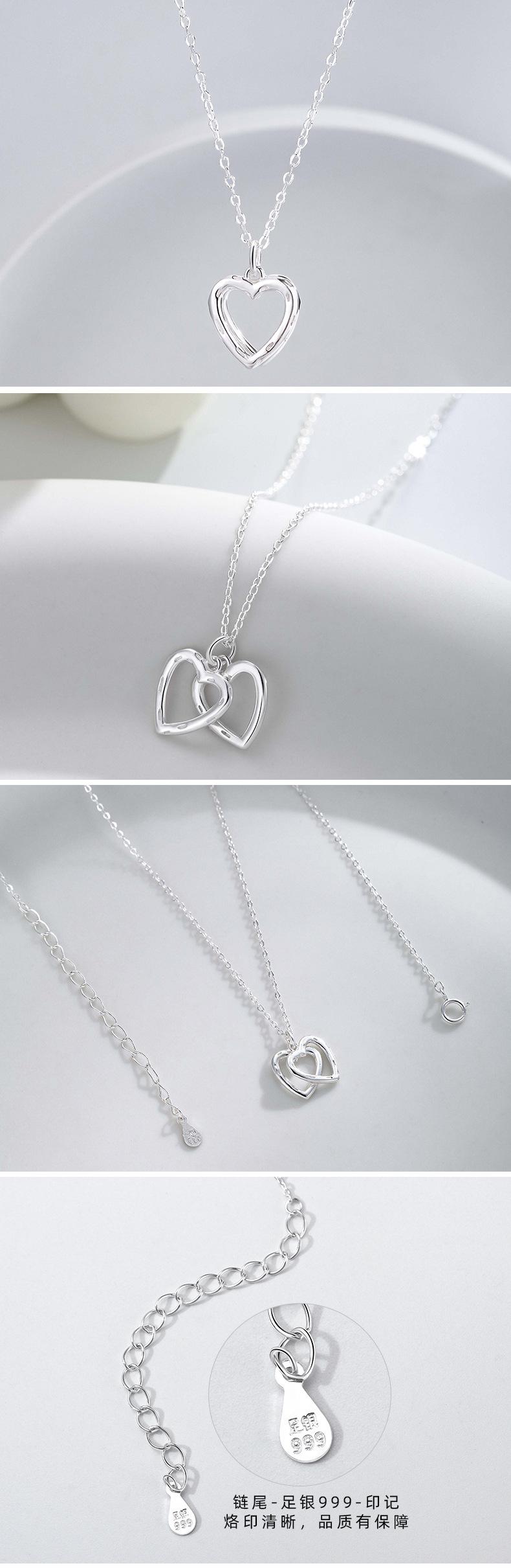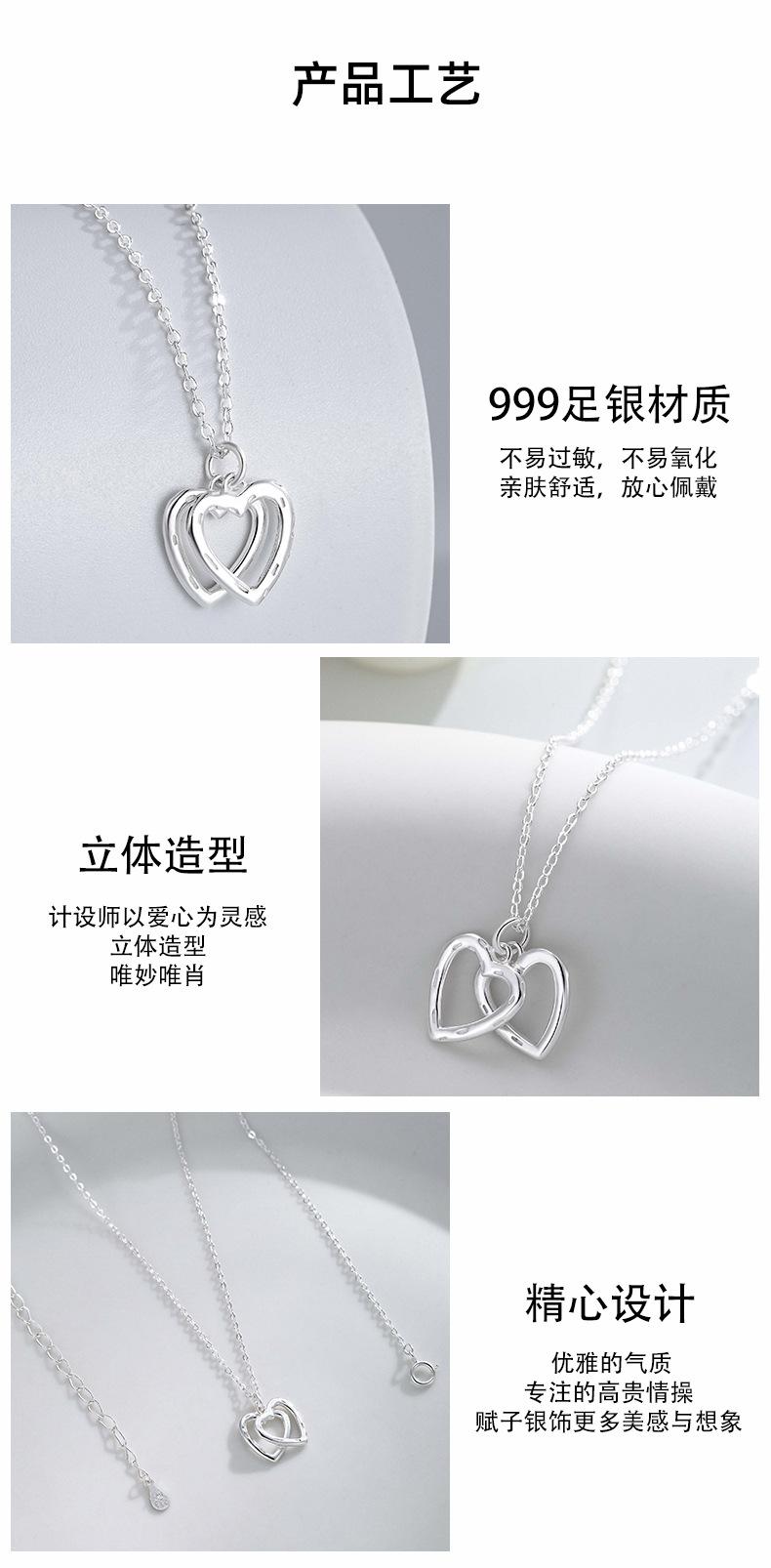 Collar de doble corazón de plata esterlina S999 para mujer, colgante de amor sencillo, collar con temperamento, cadena de clavícula de plata de alta calidad que combina con todo.