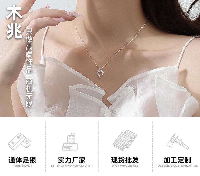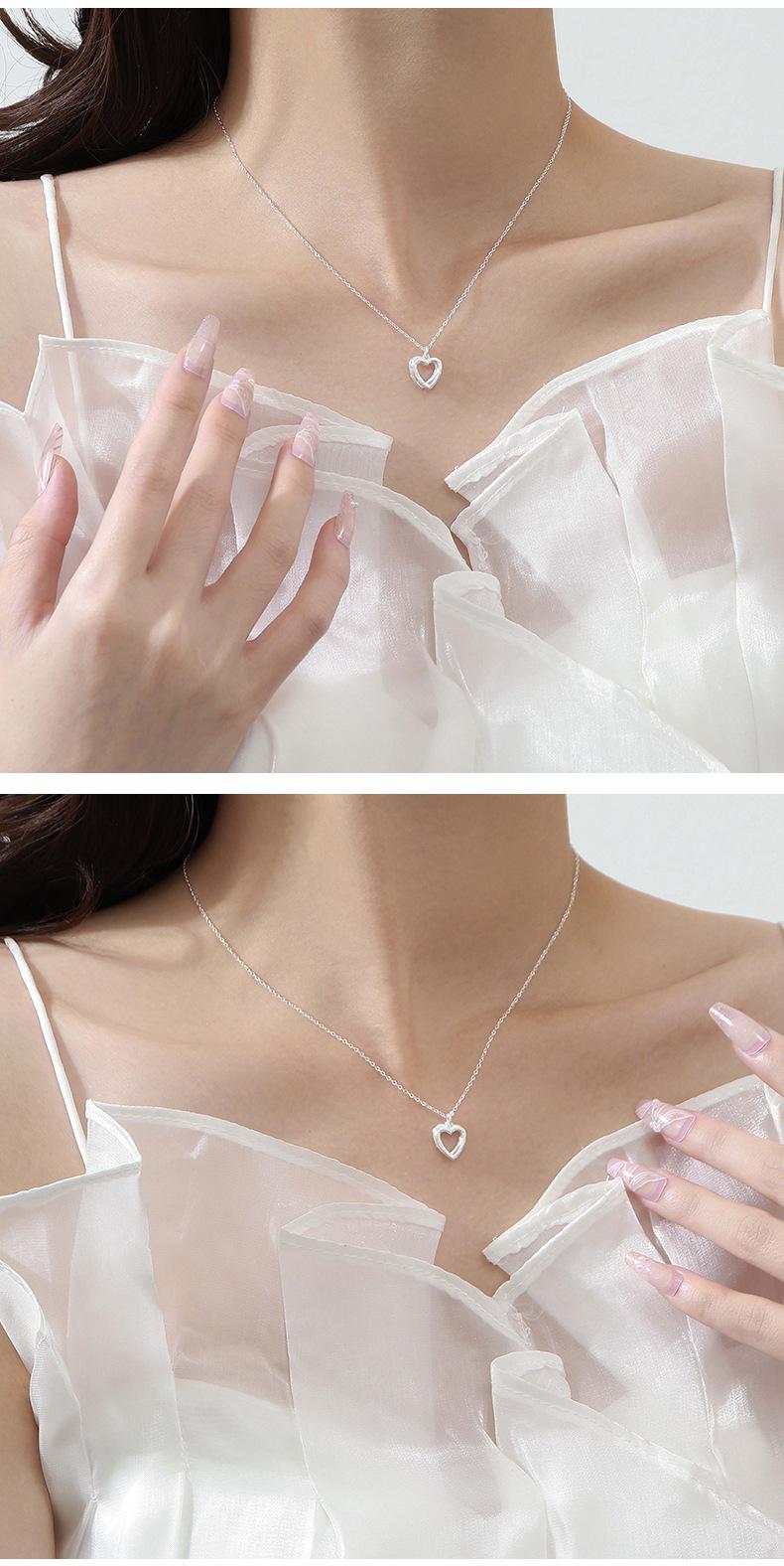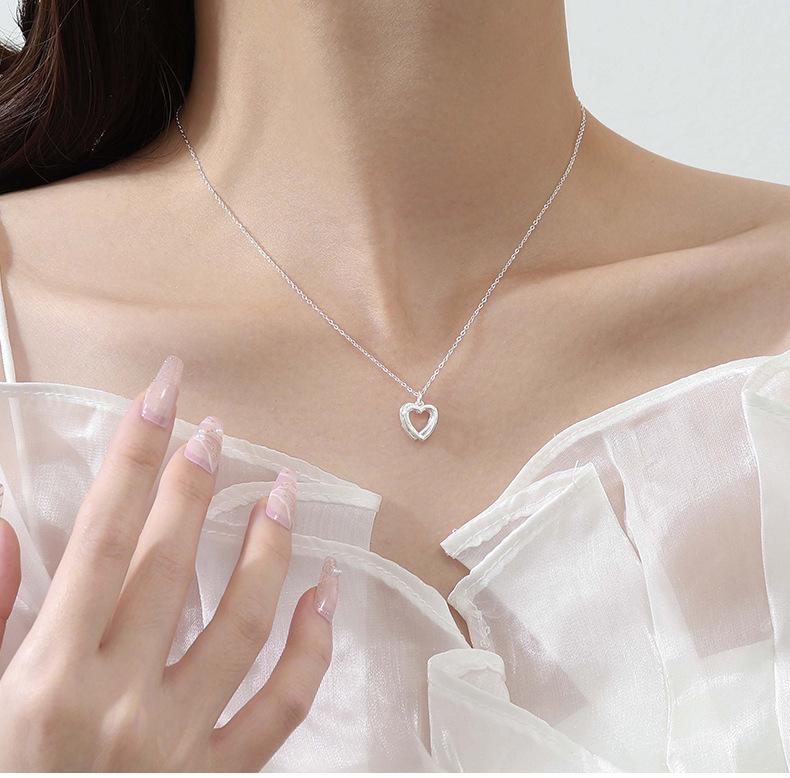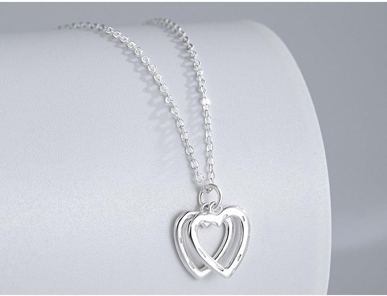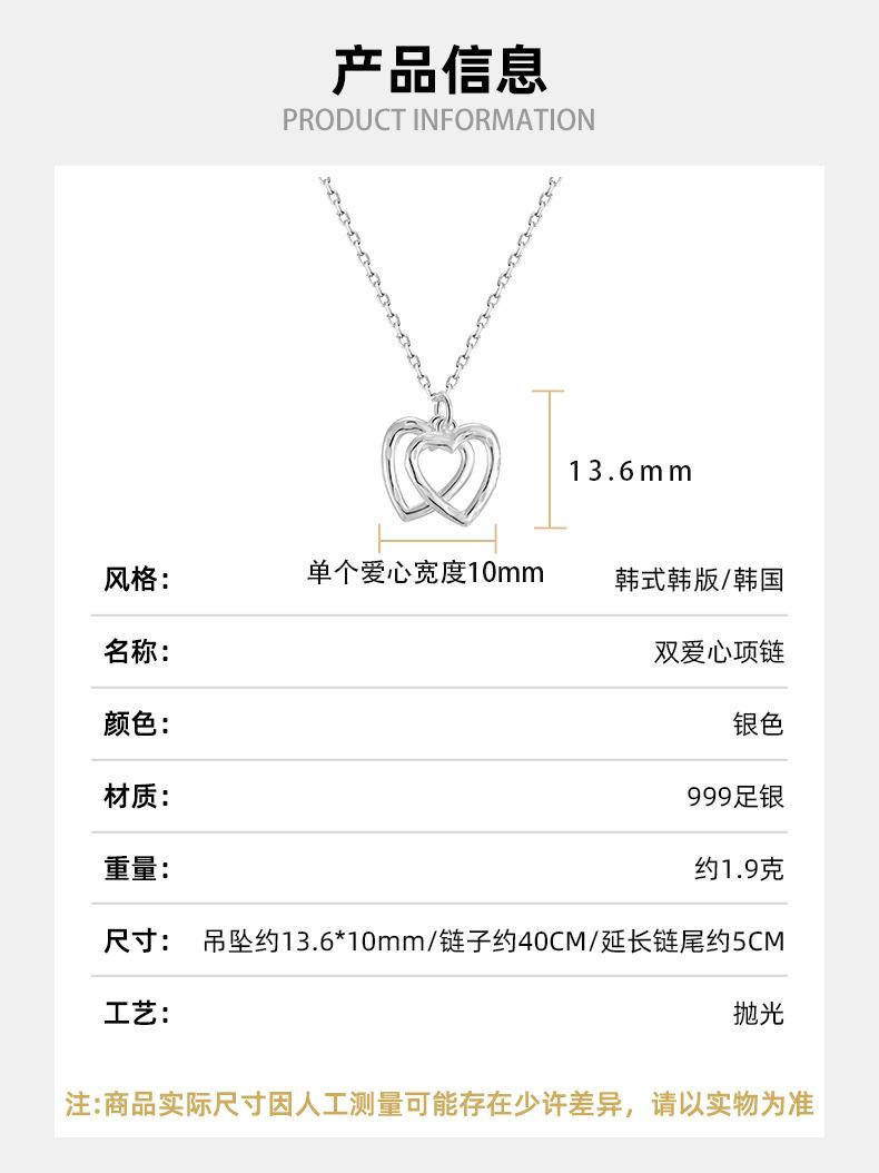 Collar de doble corazón de plata esterlina S999 para mujer, colgante de amor sencillo, collar con temperamento, cadena de clavícula de plata de alta calidad que combina con todo.