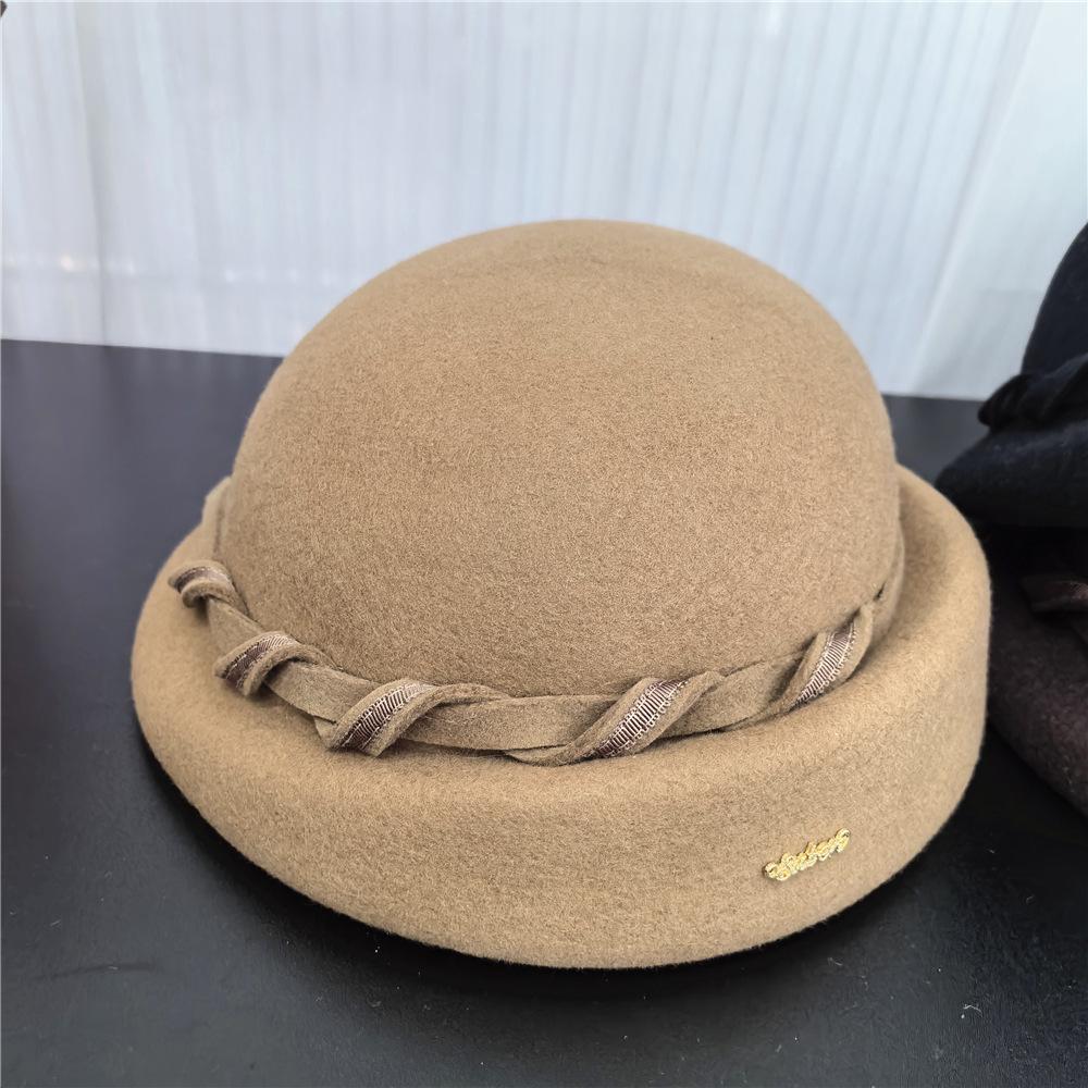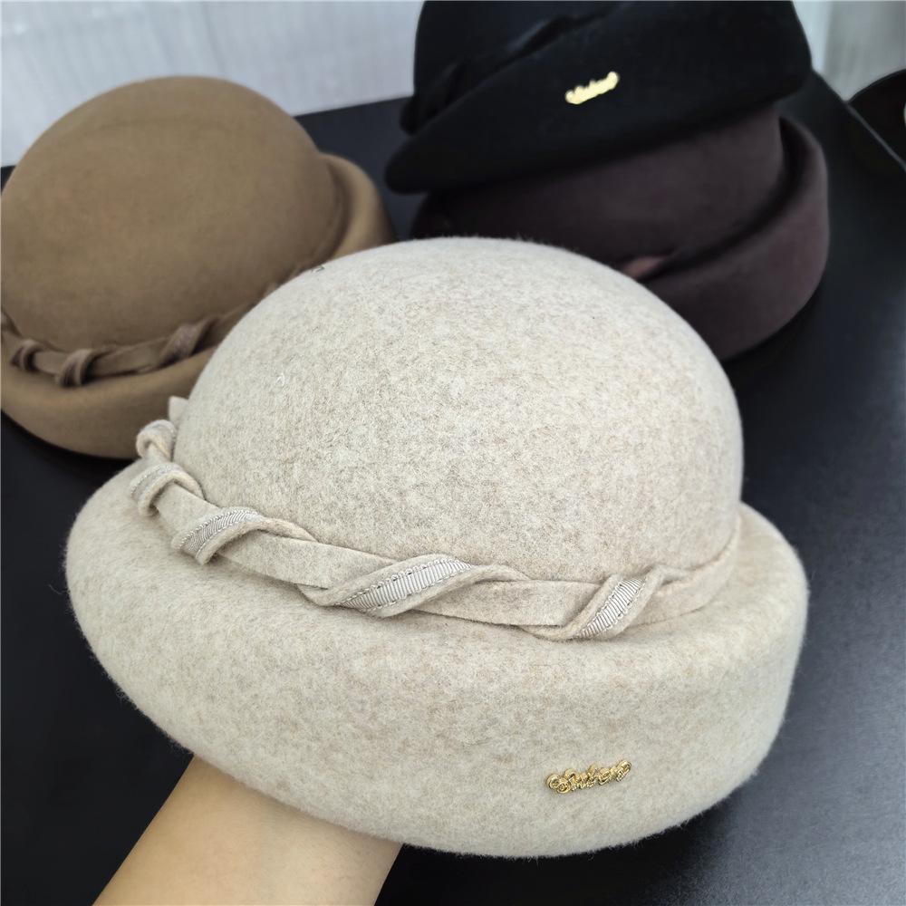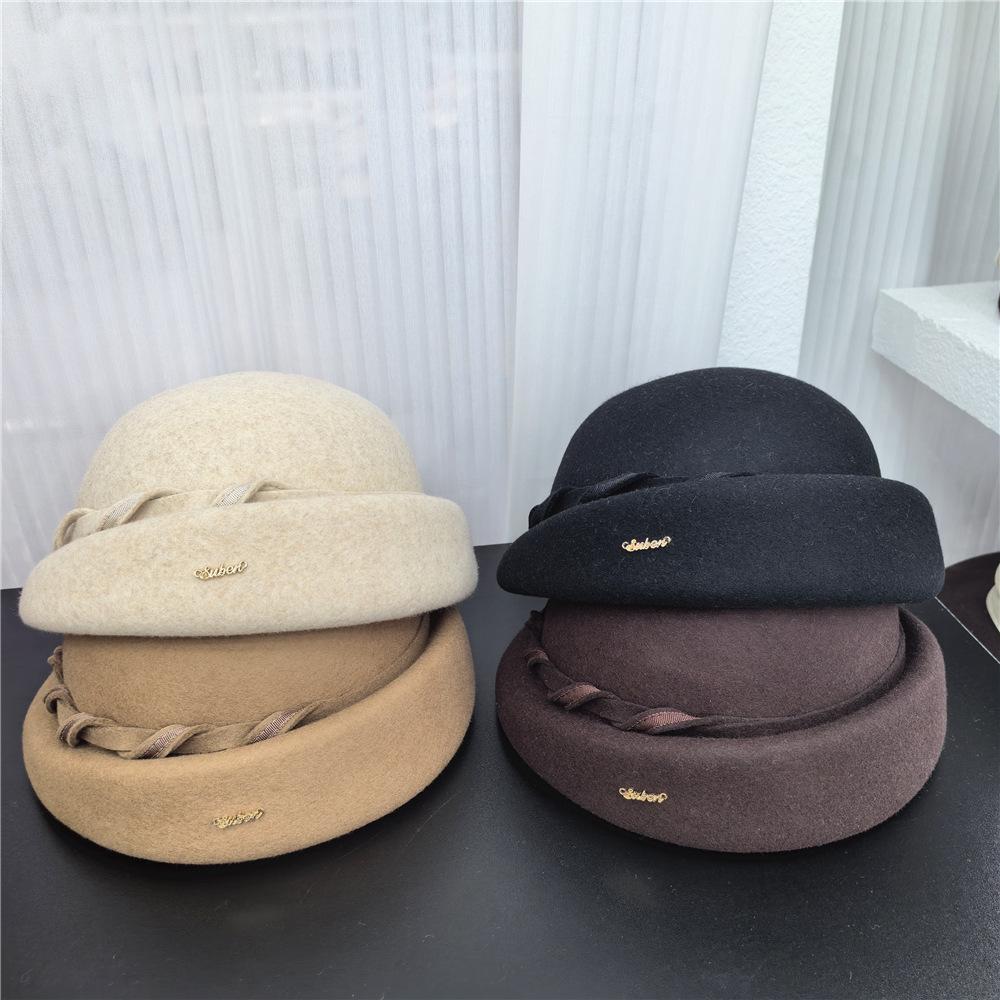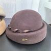 Boina Retro de Lana Australiana de Lujo Ligero Artístico para Niños Otoño e Invierno Sombrero de Fieltro Sombrero de Celebridad Sombrero de Azafata con Cinta Torcida