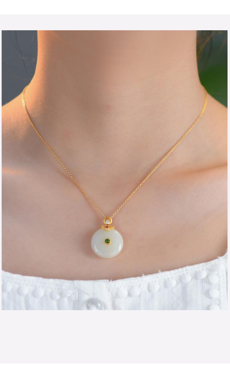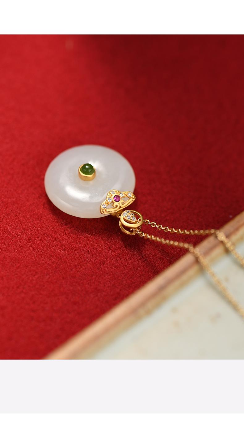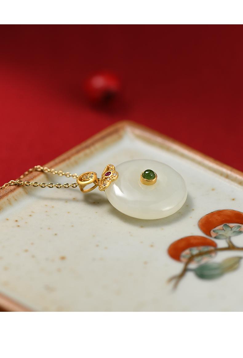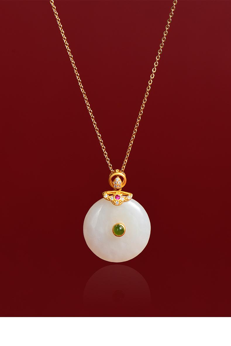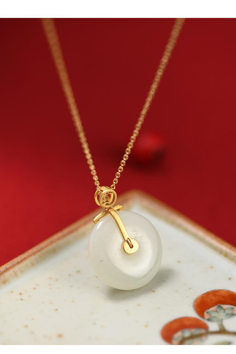 Hetian jade peace buckle necklace: gold