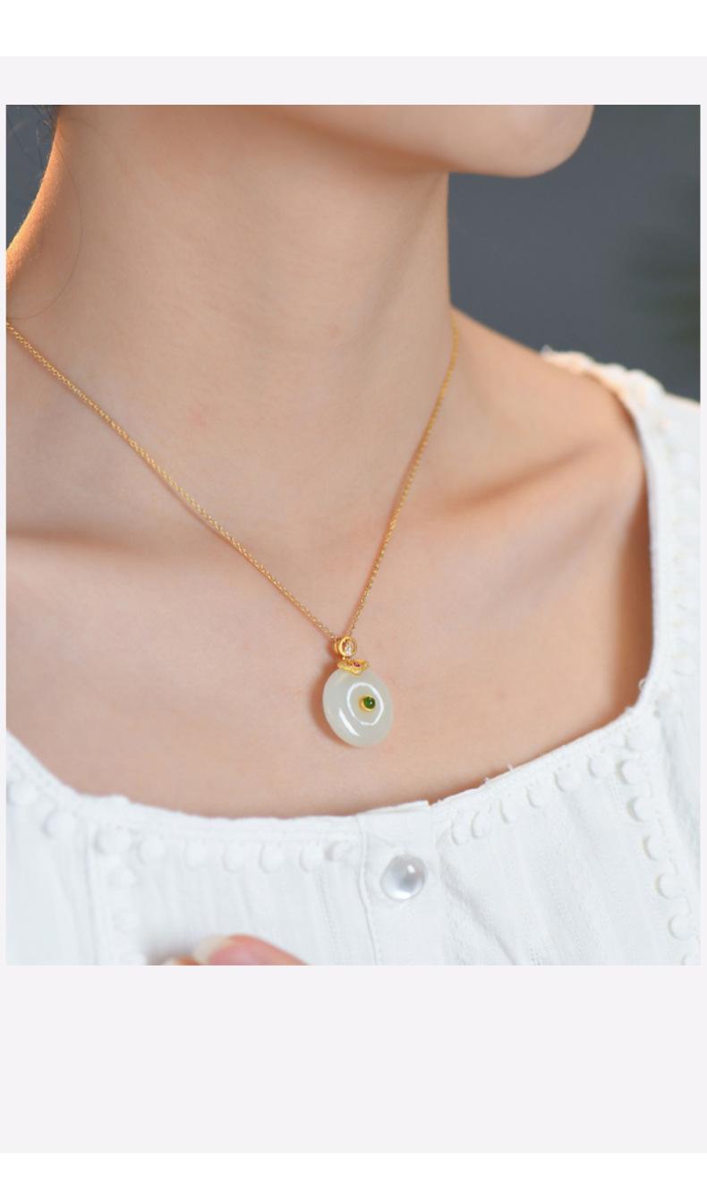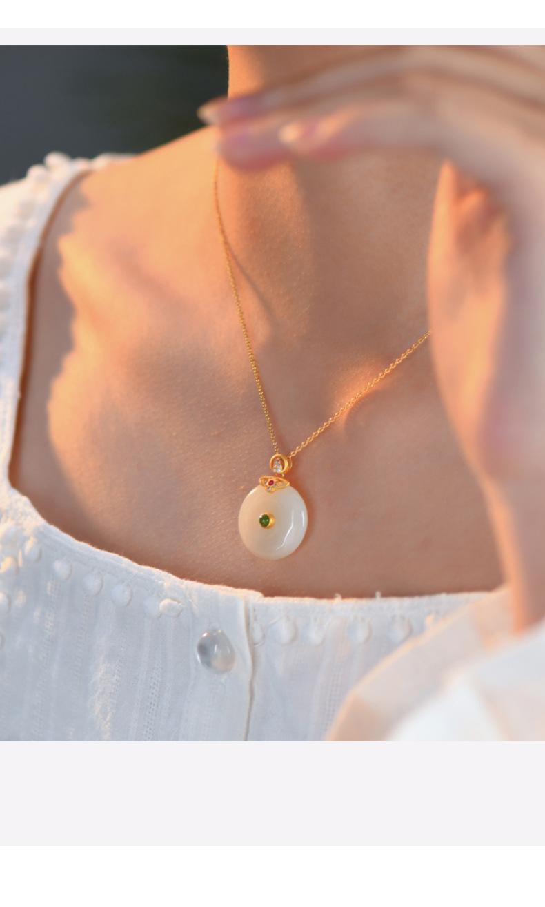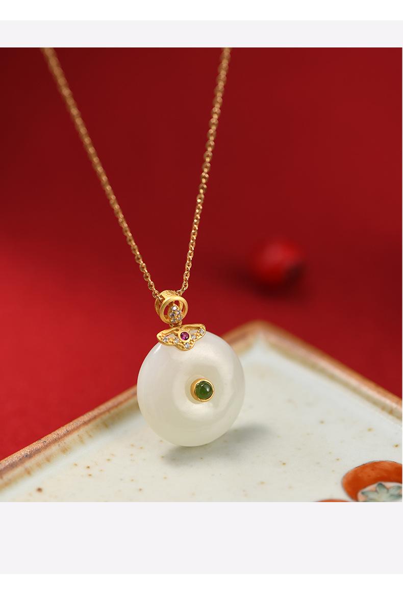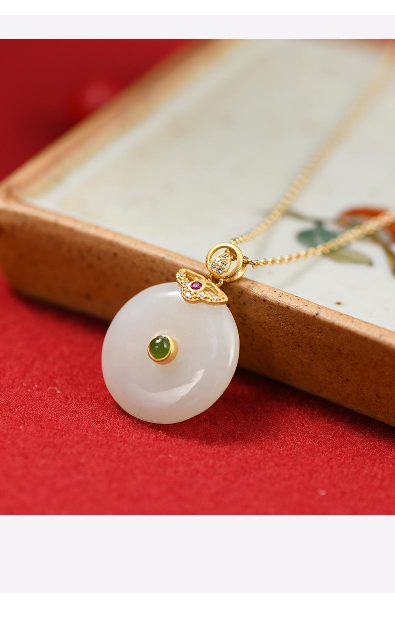 Hetian jade peace buckle necklace: gold