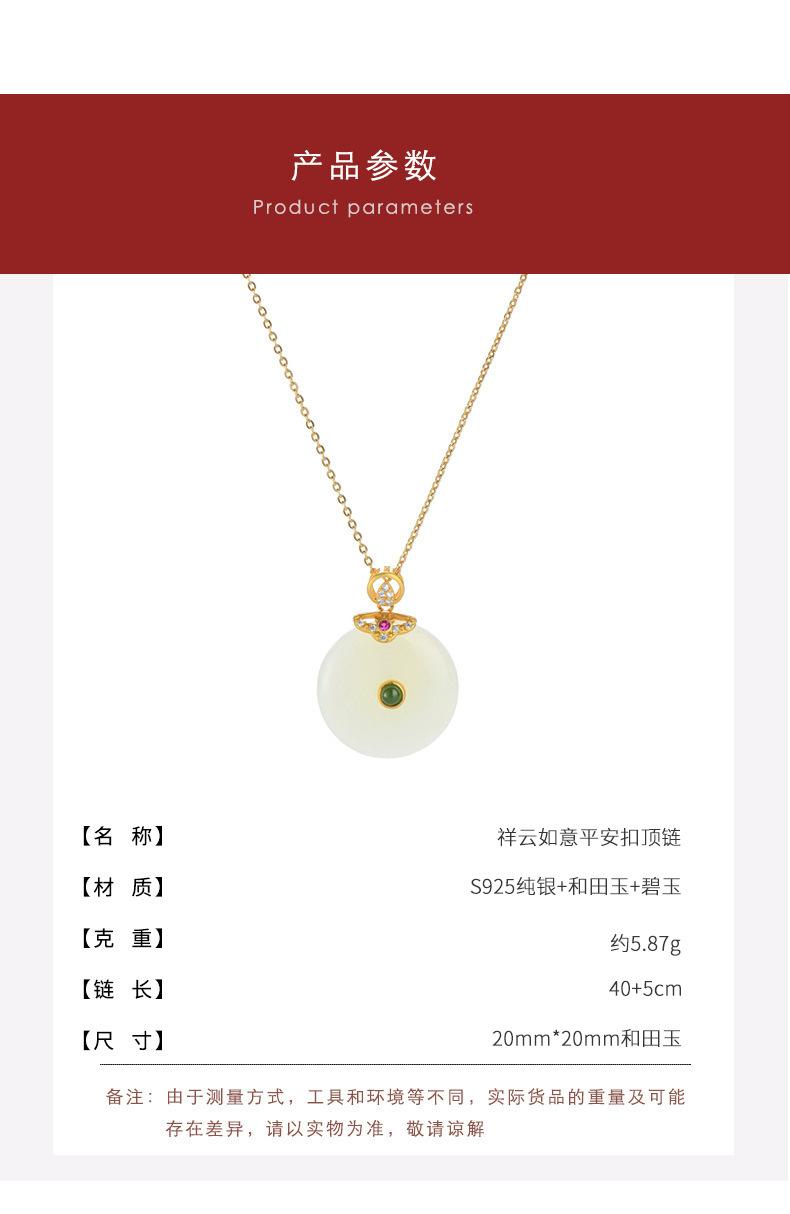 Collar Tichia Real Pat con botón de la paz de jade hetiano natural para mujer, plata de ley S925, estilo retro, cadena de clavícula de jade de alta calidad