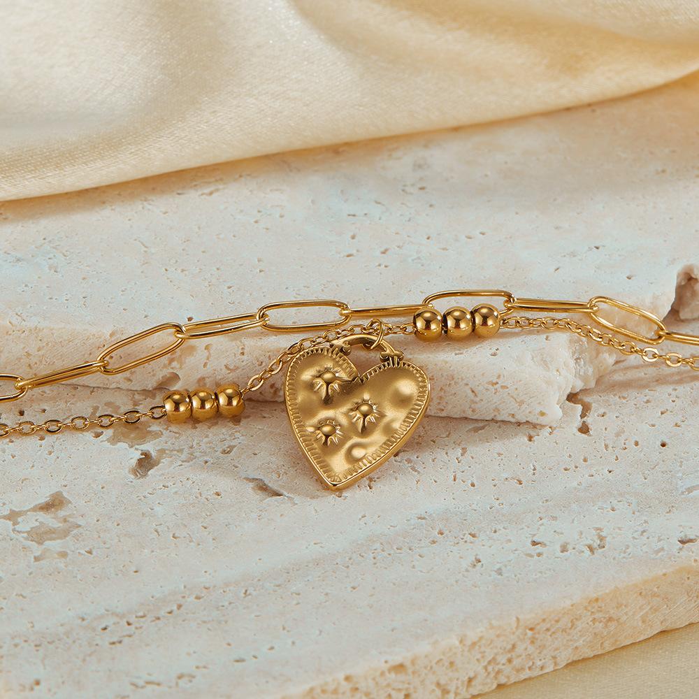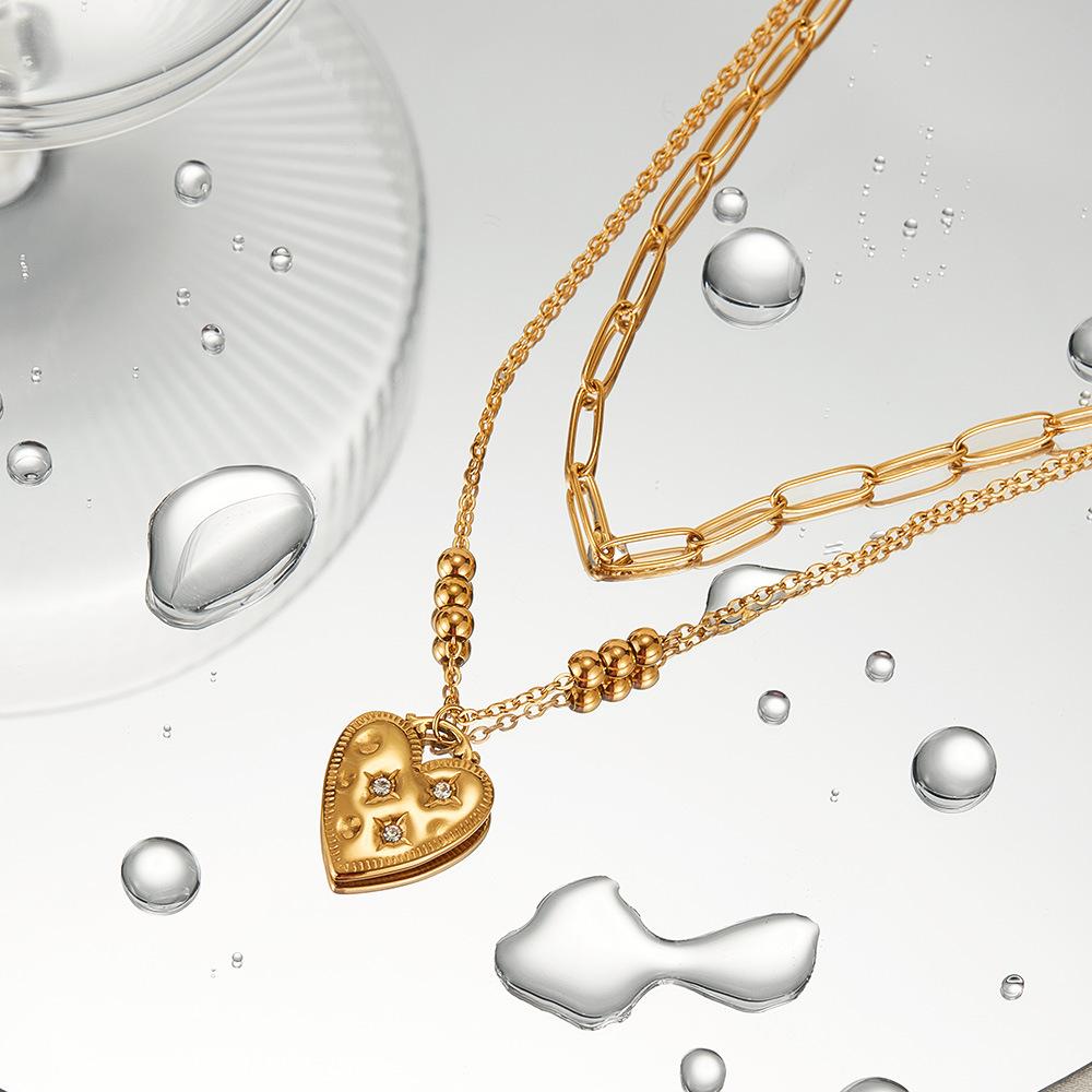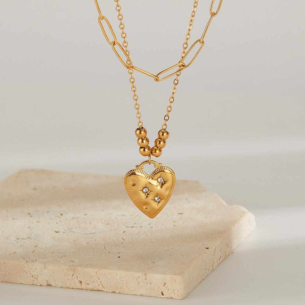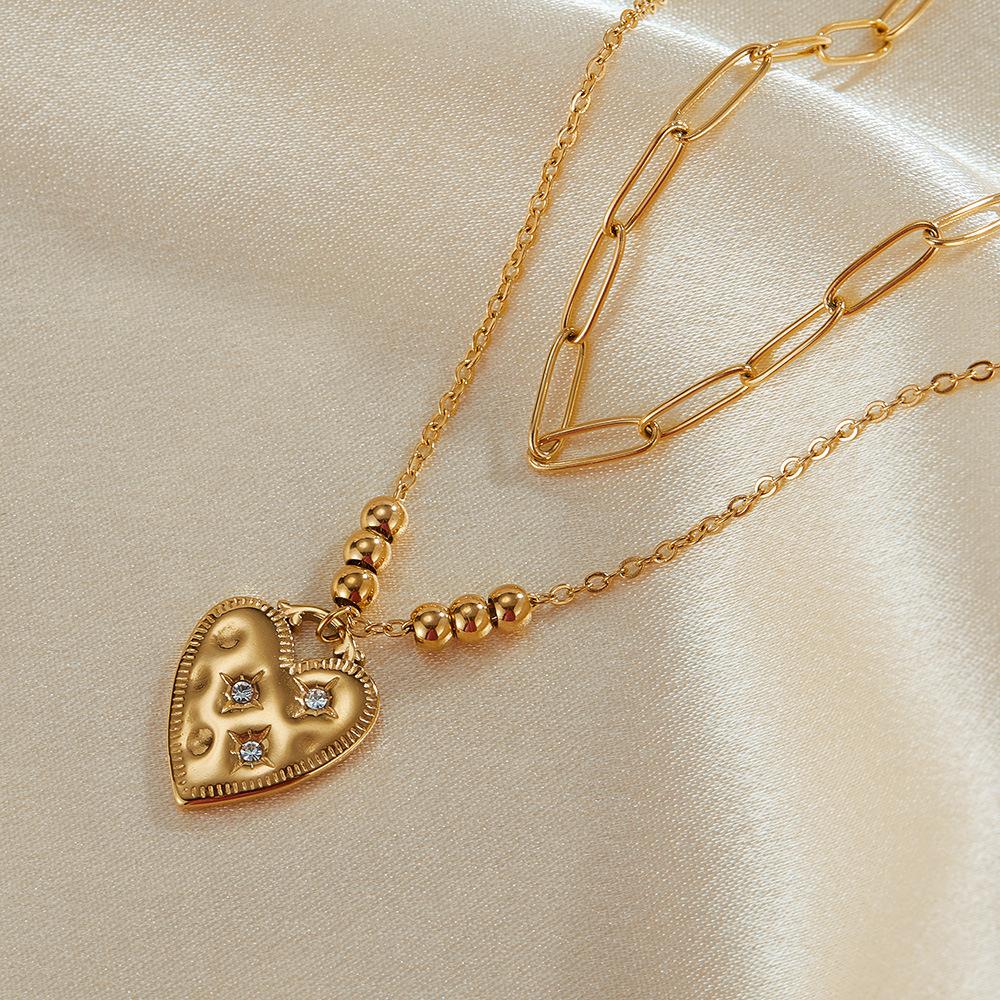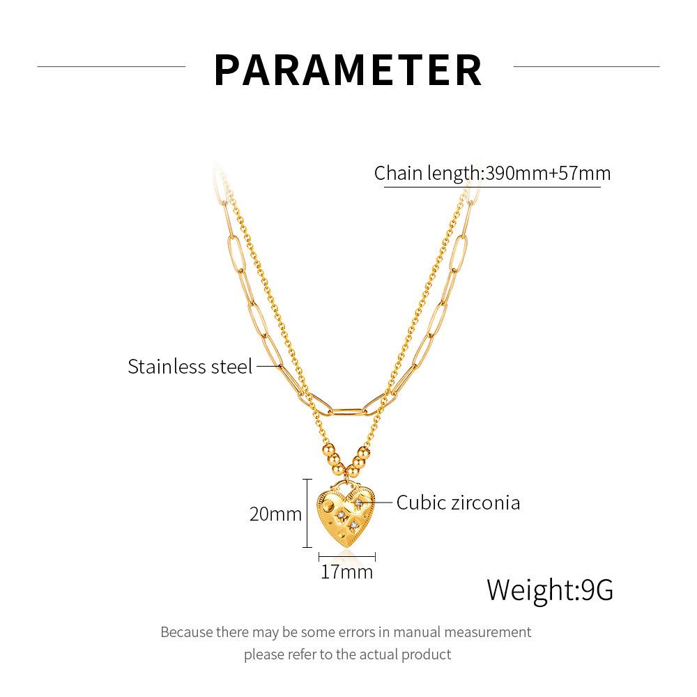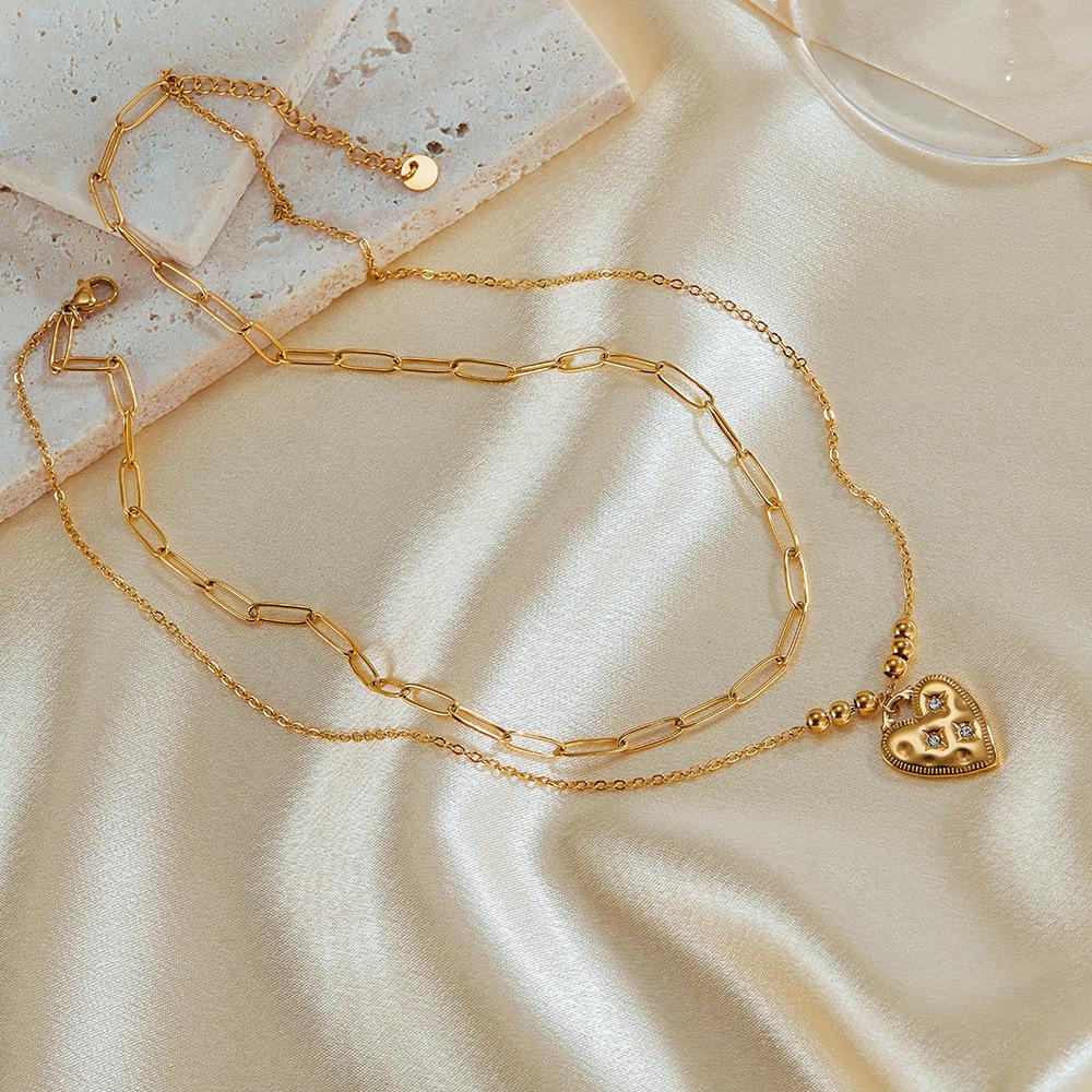 Collar de diamantes de amor de moda personalizado de Amazon, cadena de clavícula doble de acero inoxidable, joyería para damas al por mayor