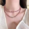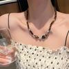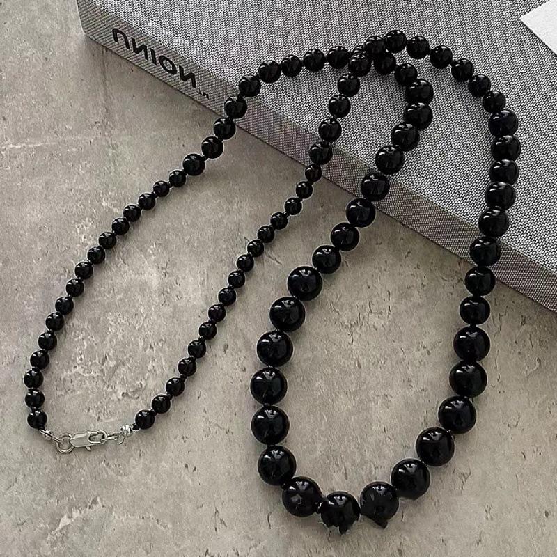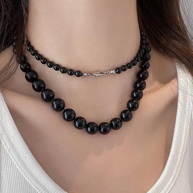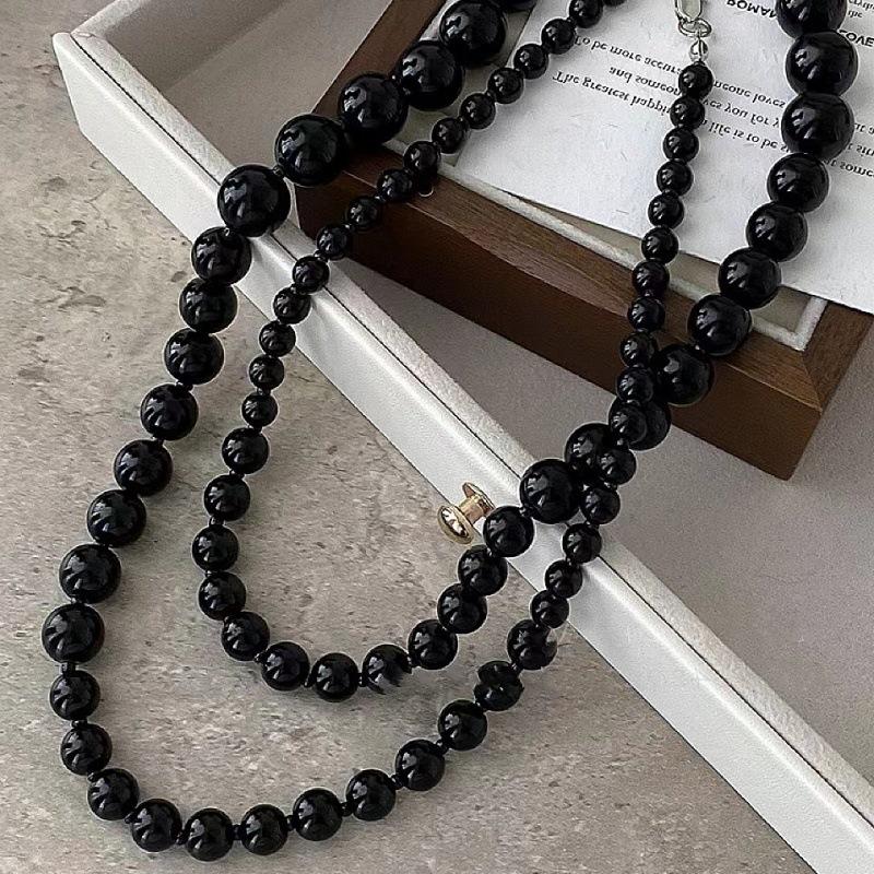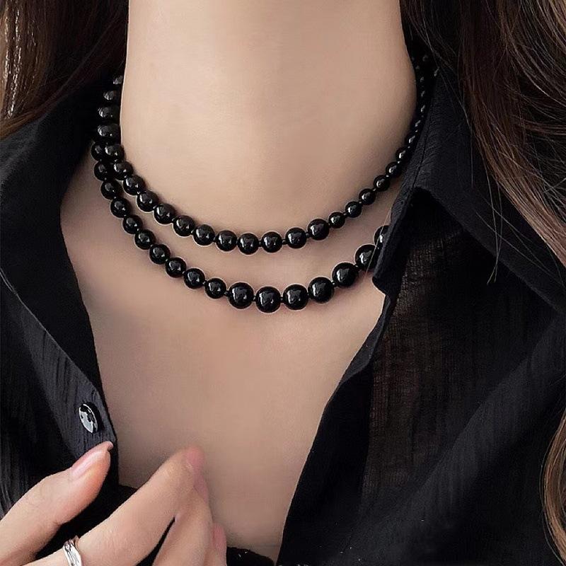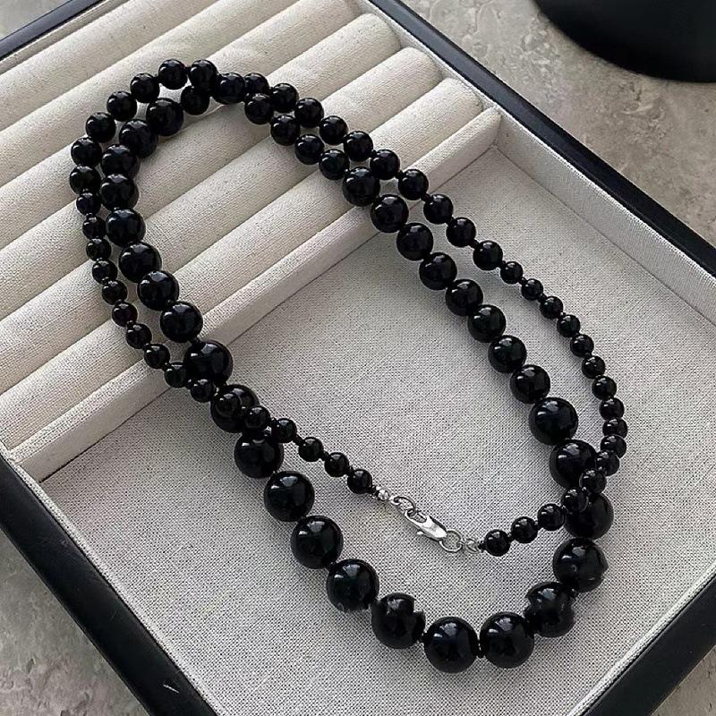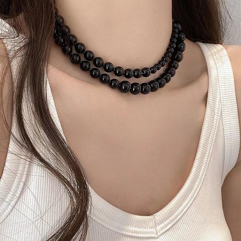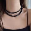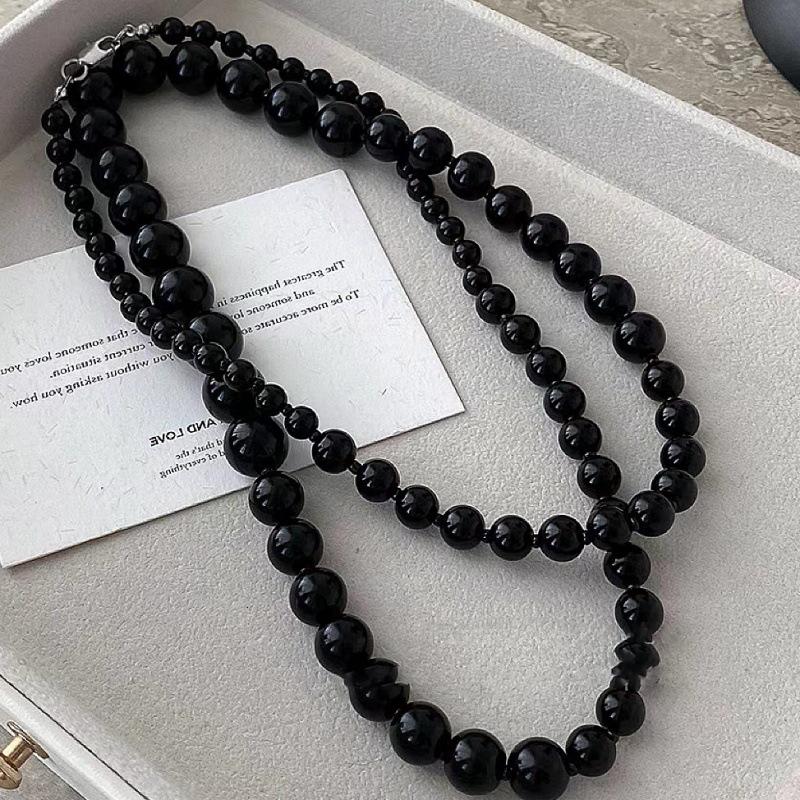 Collar de cuentas negras de tamaño retro, sencillo y elegante, de lujo, de alta gama, con cadena de clavícula multicapa larga.