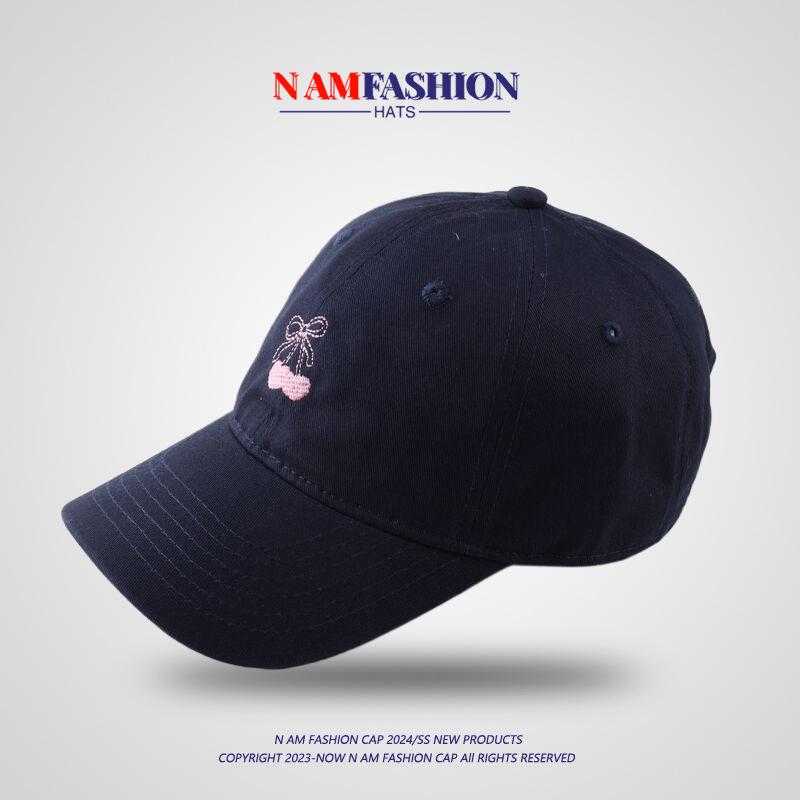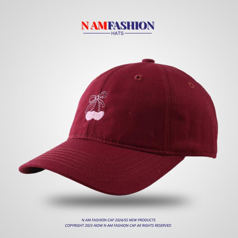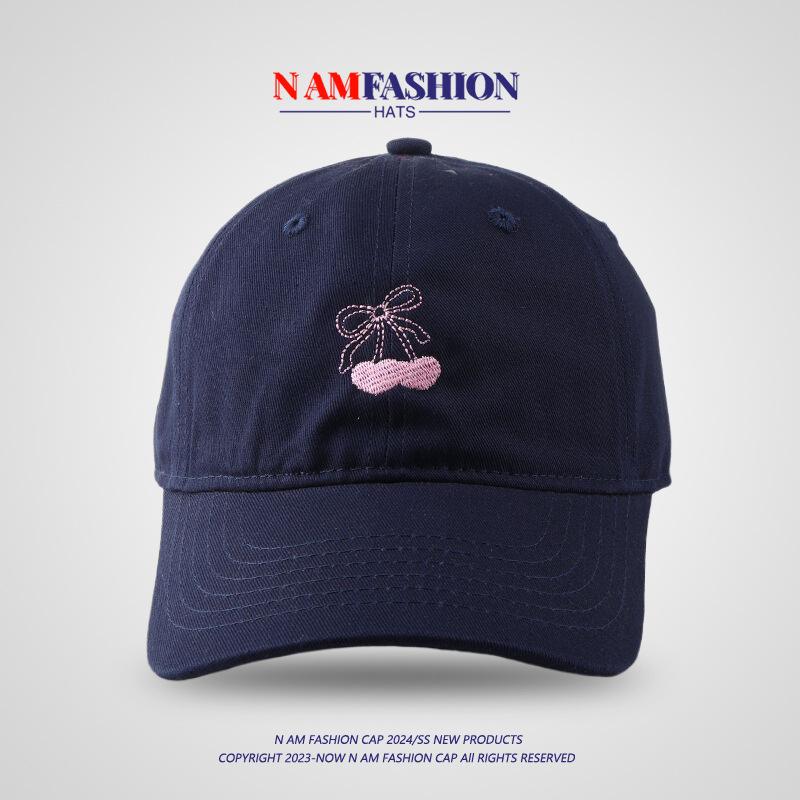 Gorra de béisbol estilo universitario con lazo bordado de cerezas, para verano, bonita y casual, combinable para hombres y mujeres.