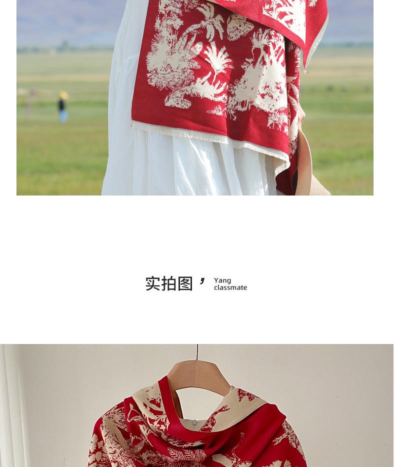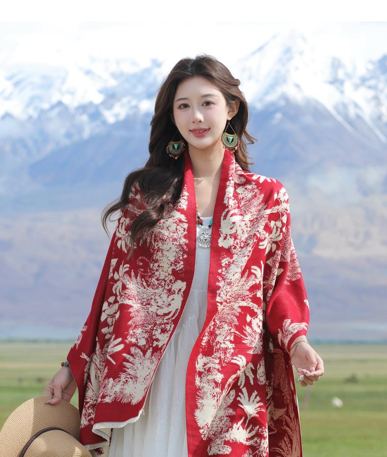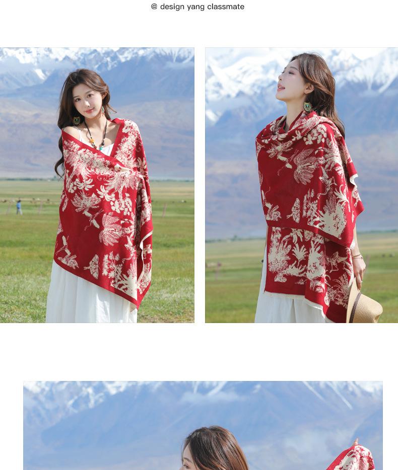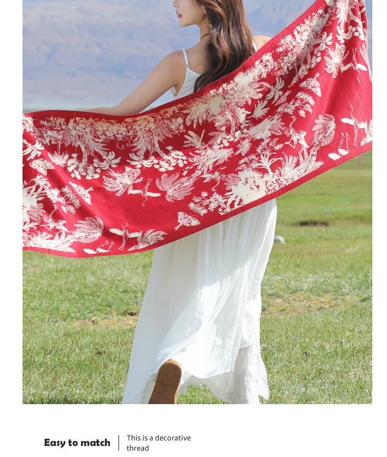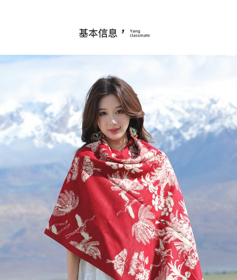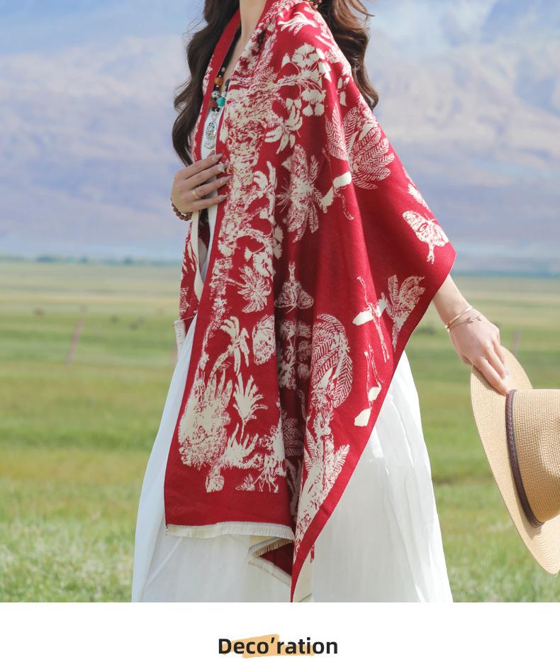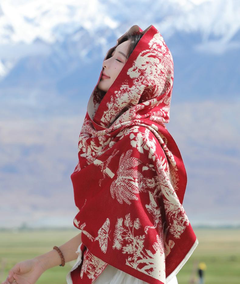 Chal de cachemira étnico de doble cara para mujer, otoño e invierno, bufanda de viaje roja para regalo de cumpleaños de madre de mediana edad