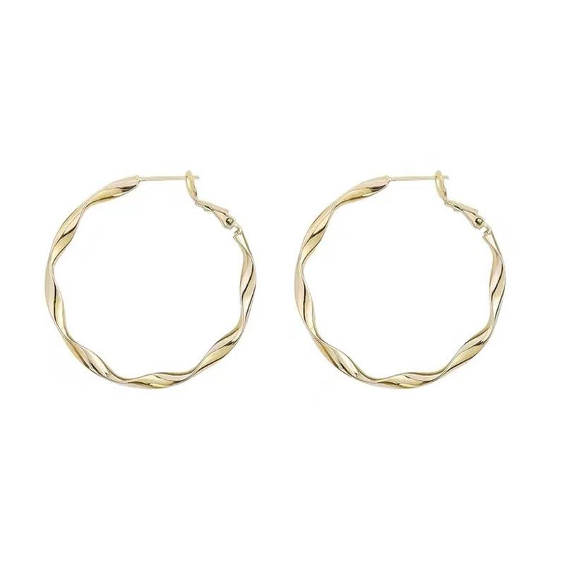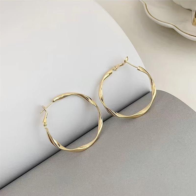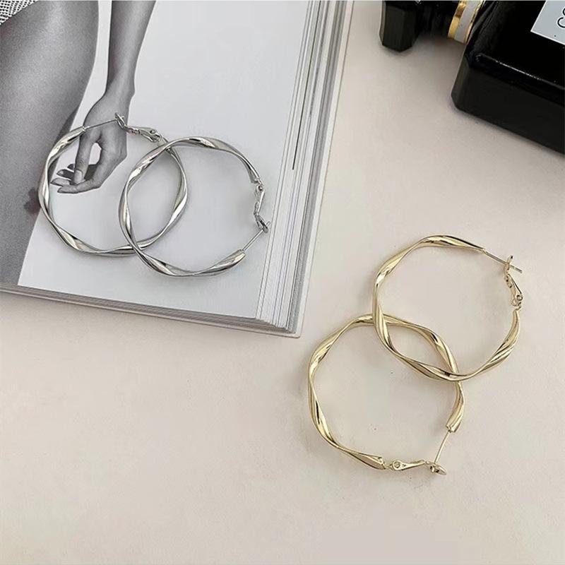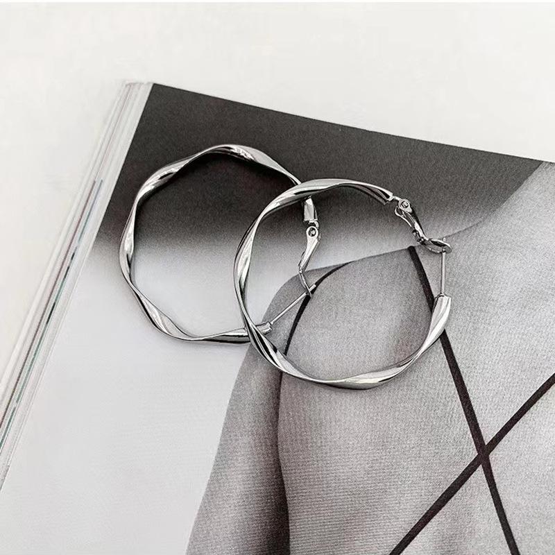 Pendientes de aro grandes retorcidos con aguja de plata S925 de Corea del Sur, para otoño e invierno, de moda sencilla y combinable para mujer.