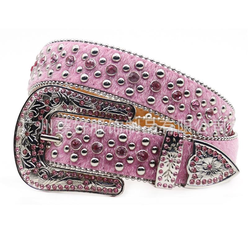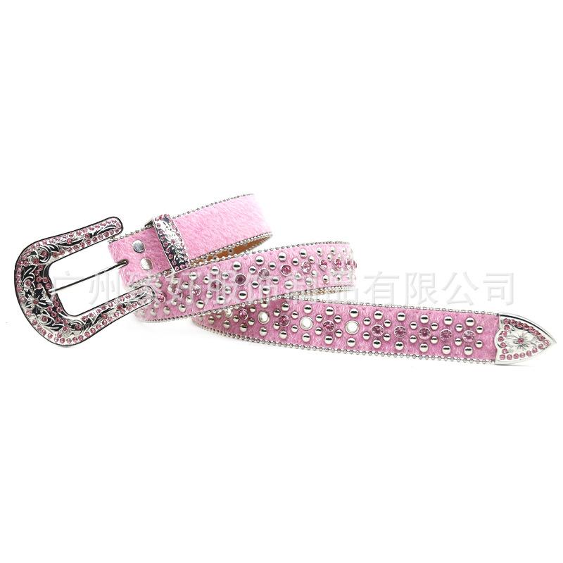 Cinturón de crin transfronterizo, cinturón de diamantes de imitación para mujer, cinturón de moda en línea, popular personalidad callejera, cinturón de tendencia punk para mujer