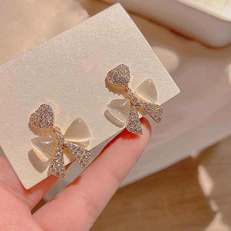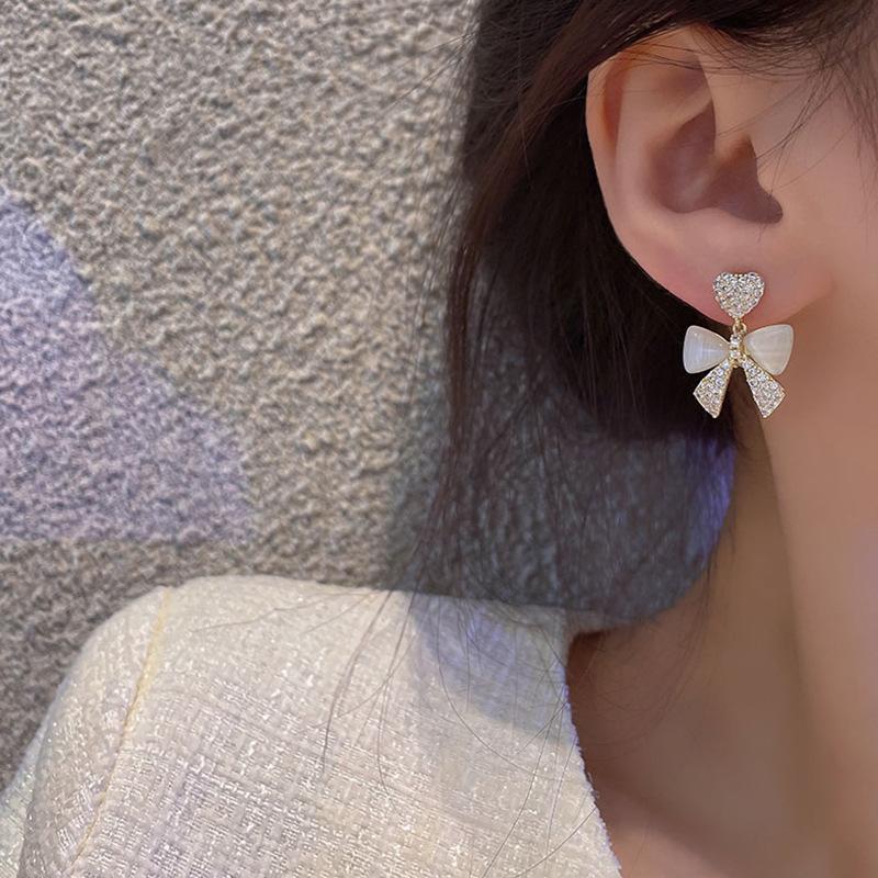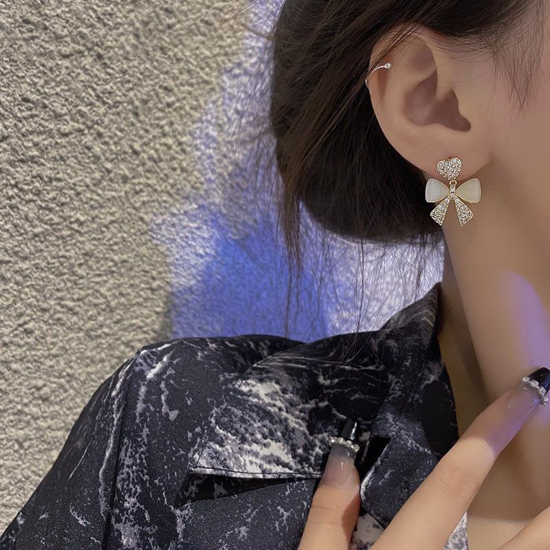 Pendientes de lujo ligeros de alta calidad con aguja de plata S925, estilo coreano, con lazo encantador, nuevos pendientes de moda 2023 para mujer.