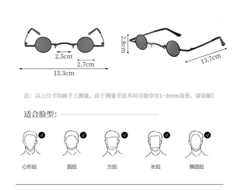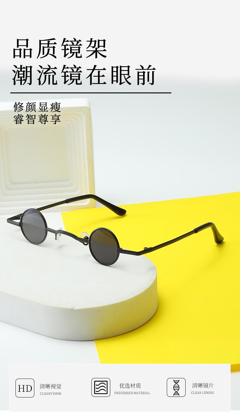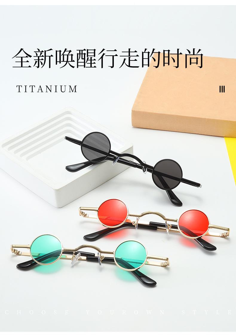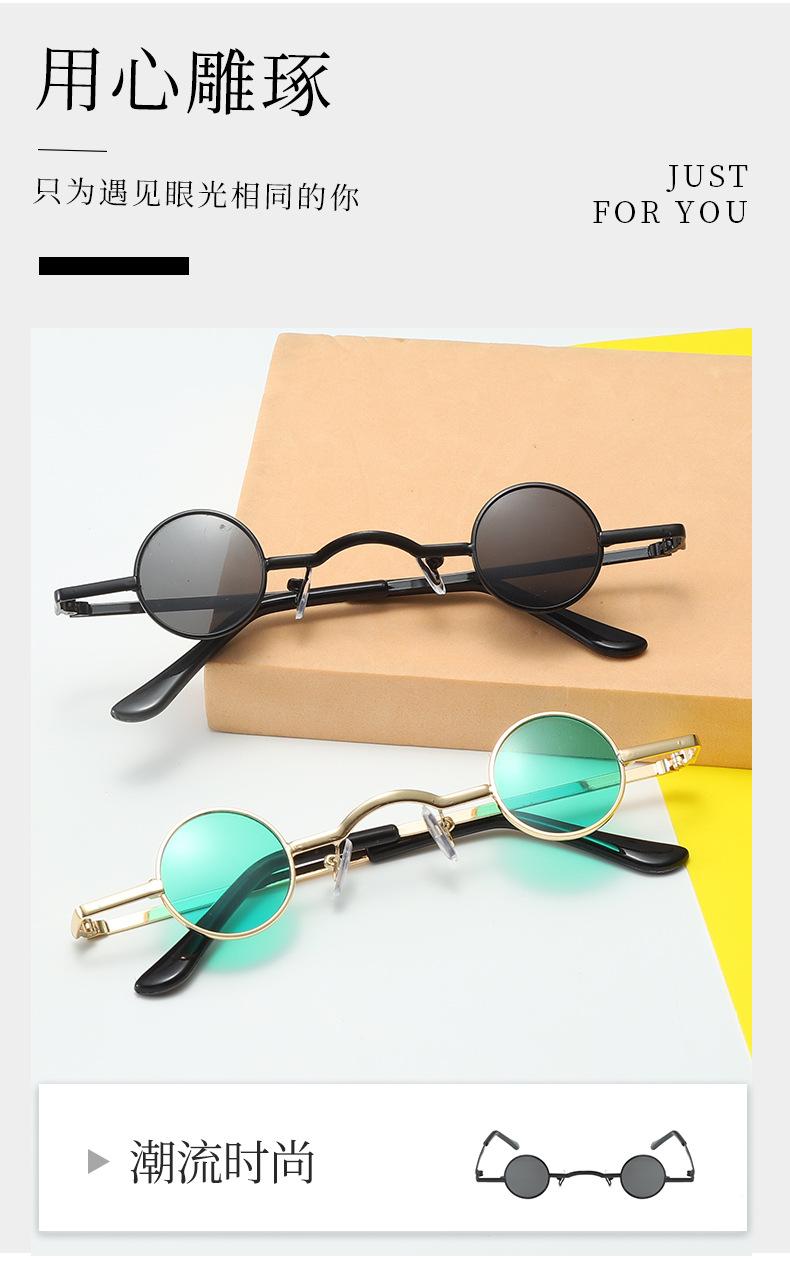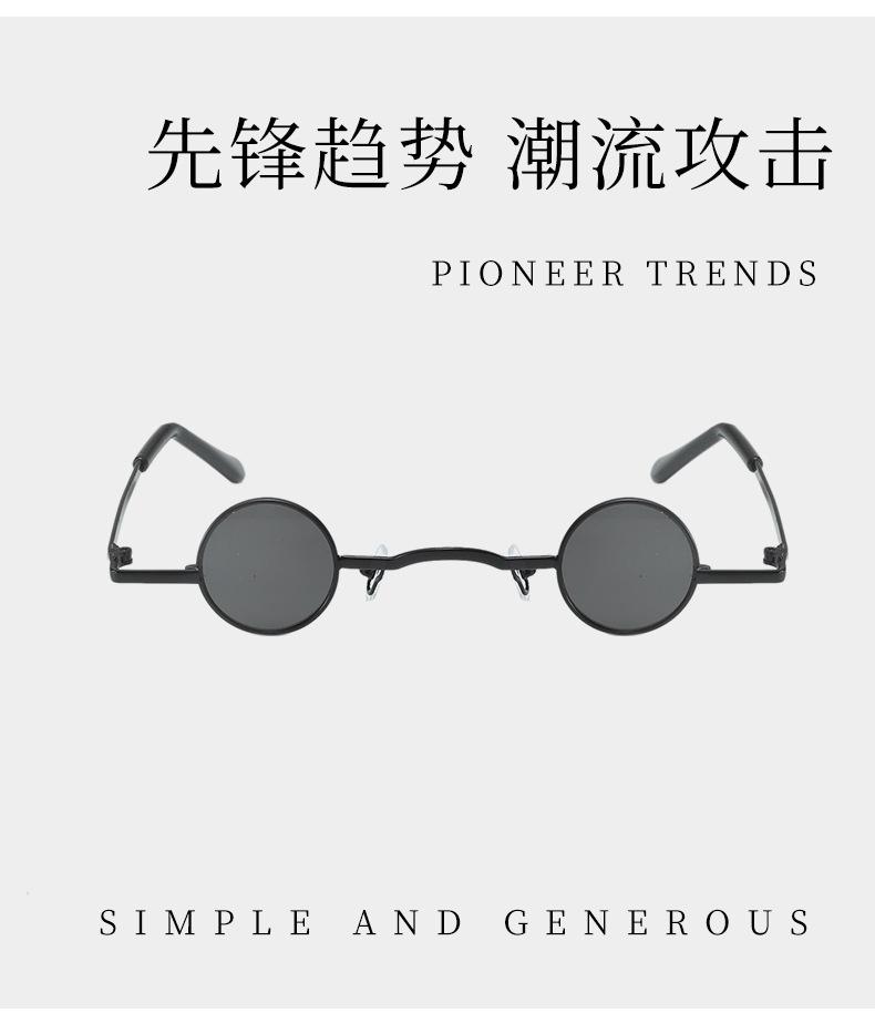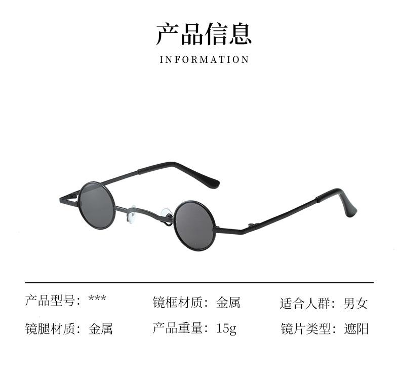 Gafas de sol retro de hip-hop con montura redonda súper pequeña para hombres y mujeres, montura Ins, estilo de celebridades de Internet, gafas de sol de metal con montura redonda pequeña distintiva.