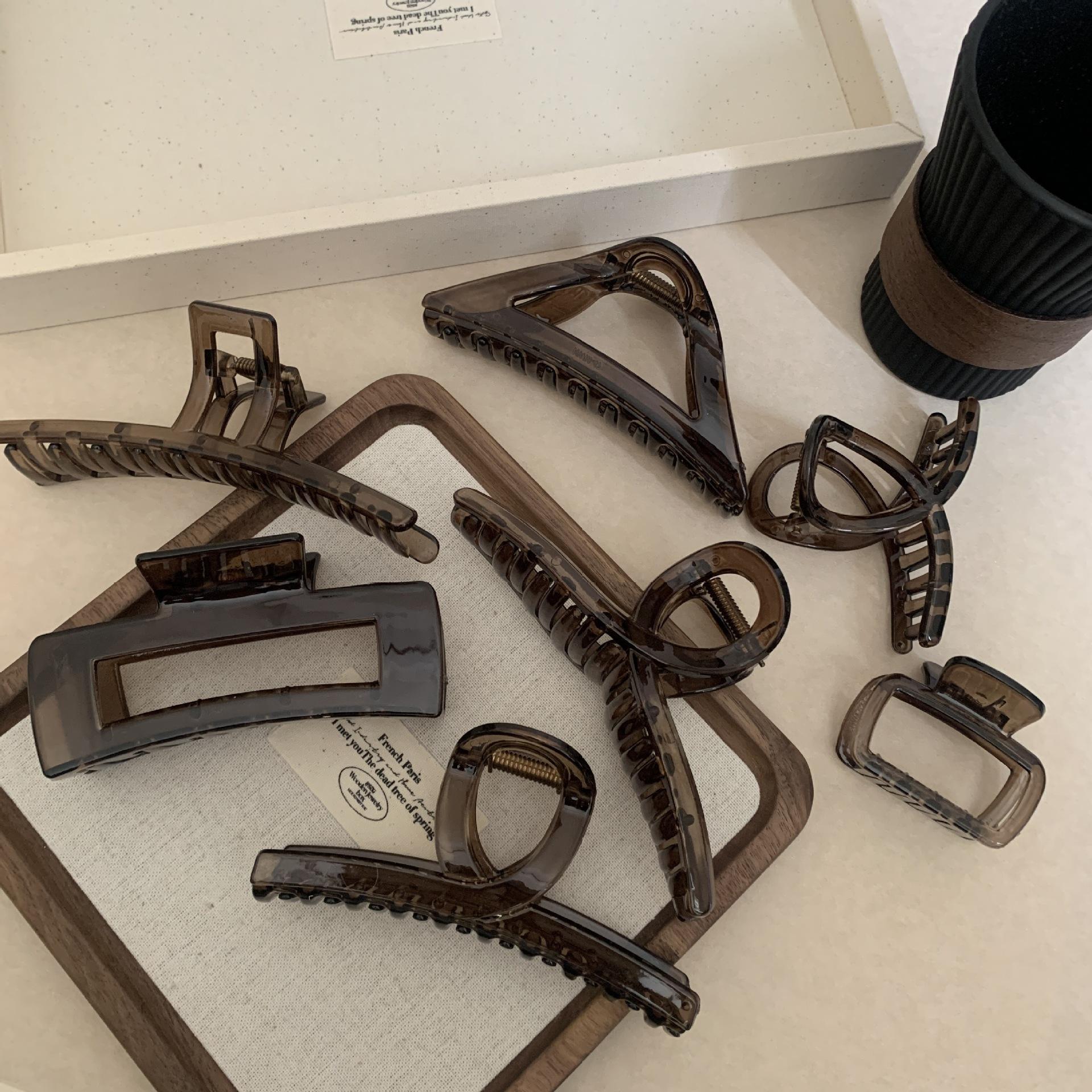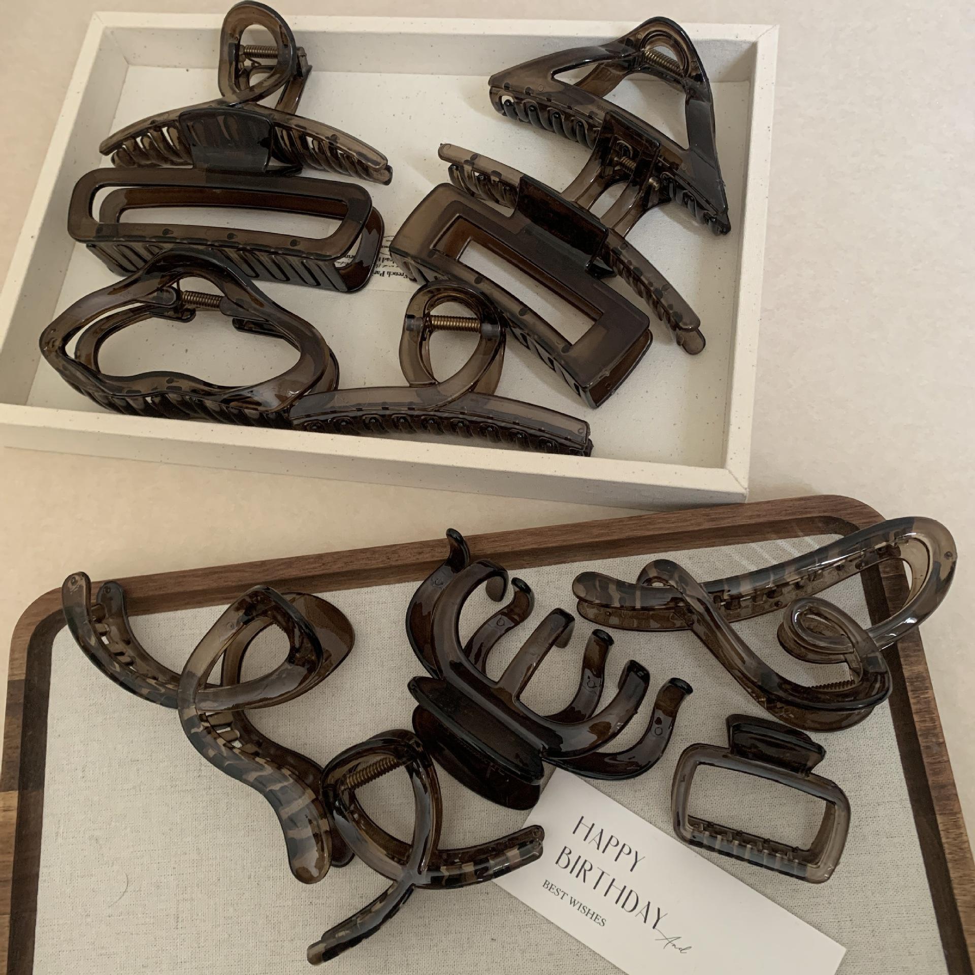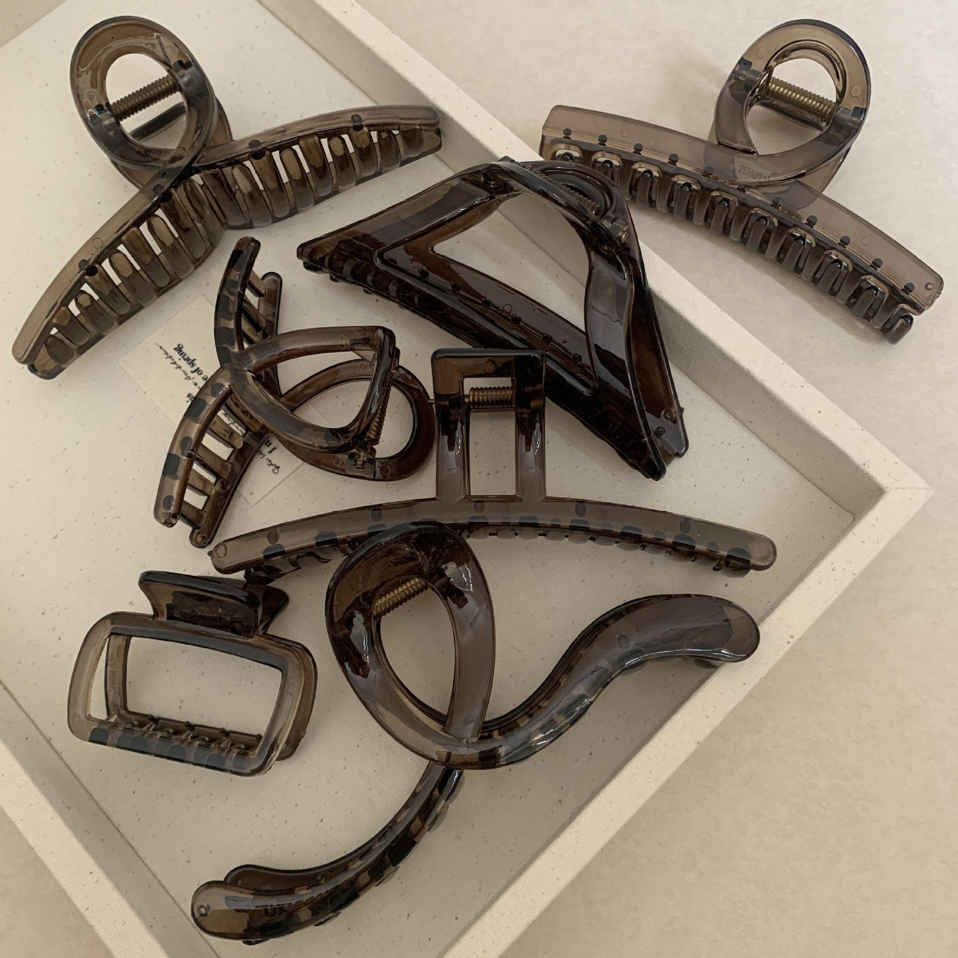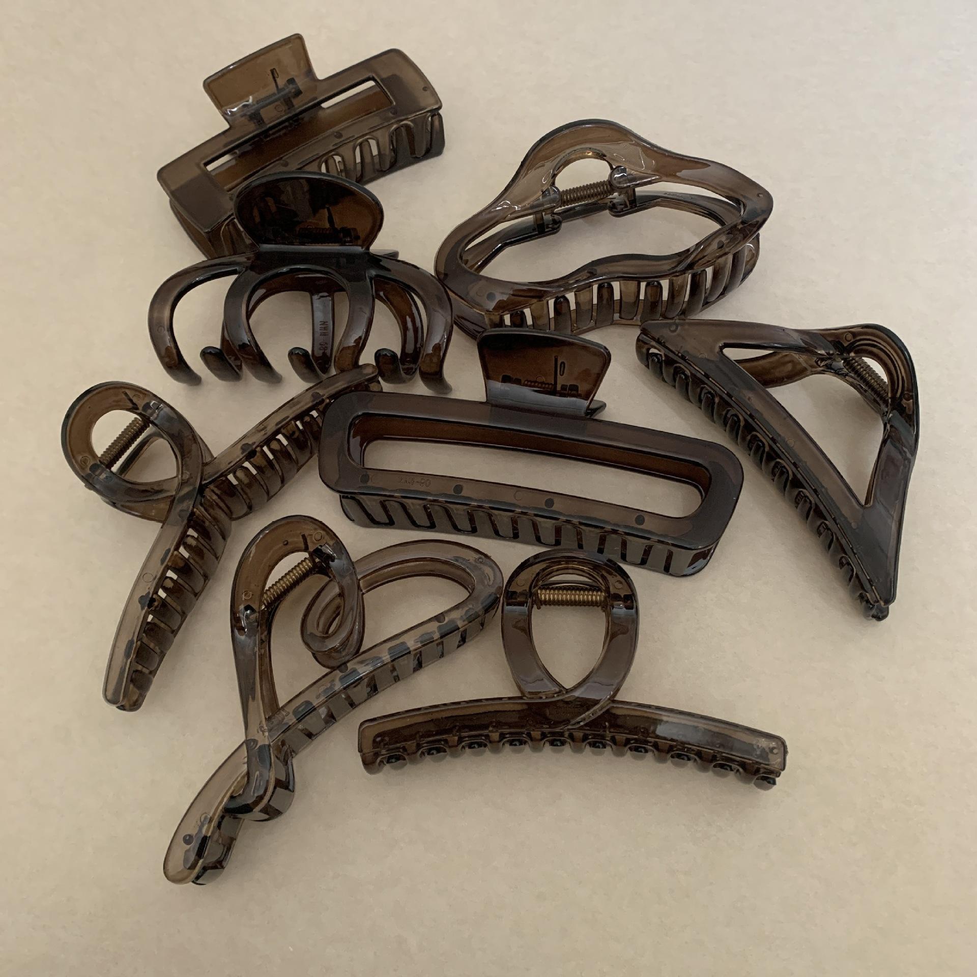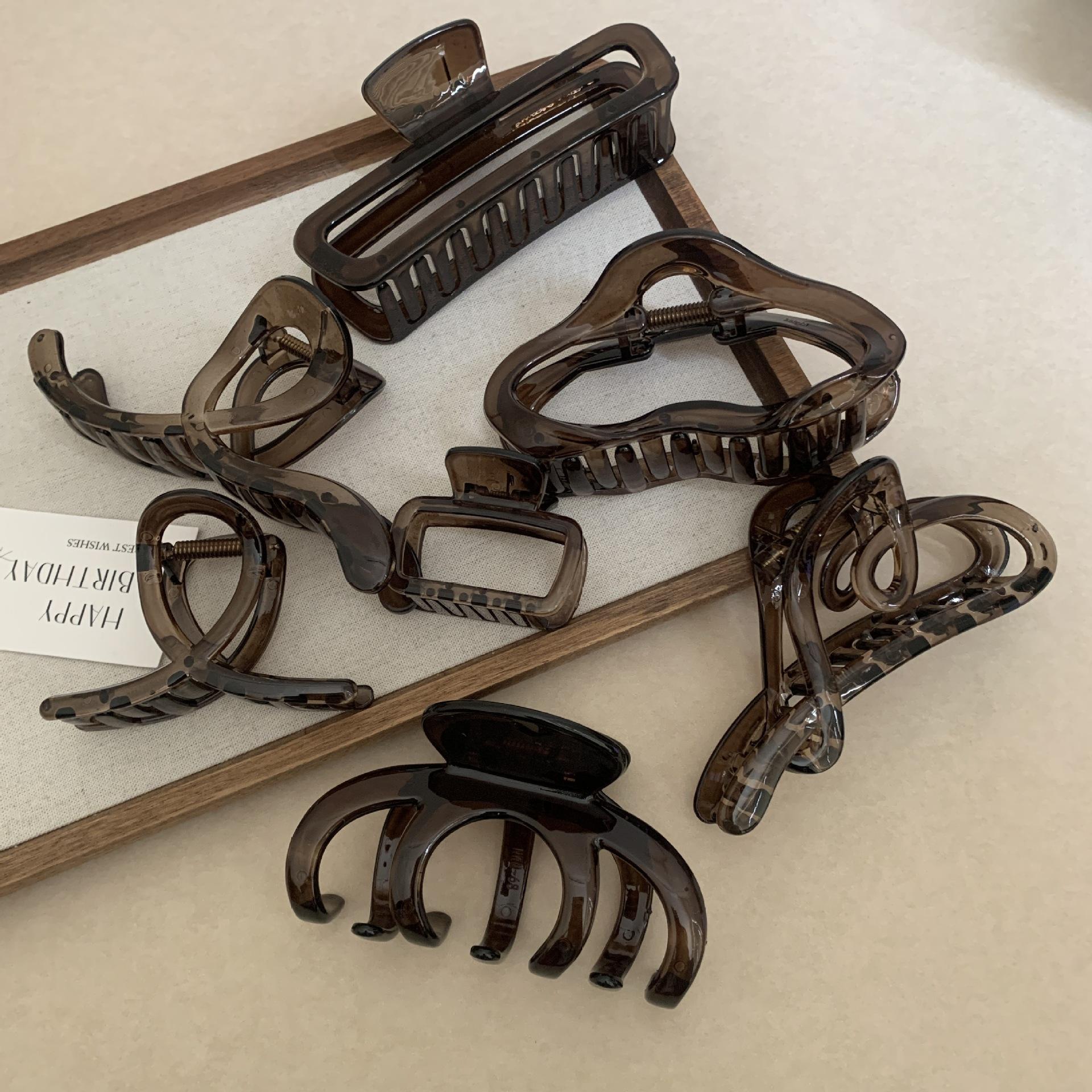 Pinza para el cabello negra y marrón para mujer, con forma de disco en la parte posterior de la cabeza, para cabello grande, elegante, con forma de tiburón y estilo celebridad de Internet, para la cabeza, sencilla