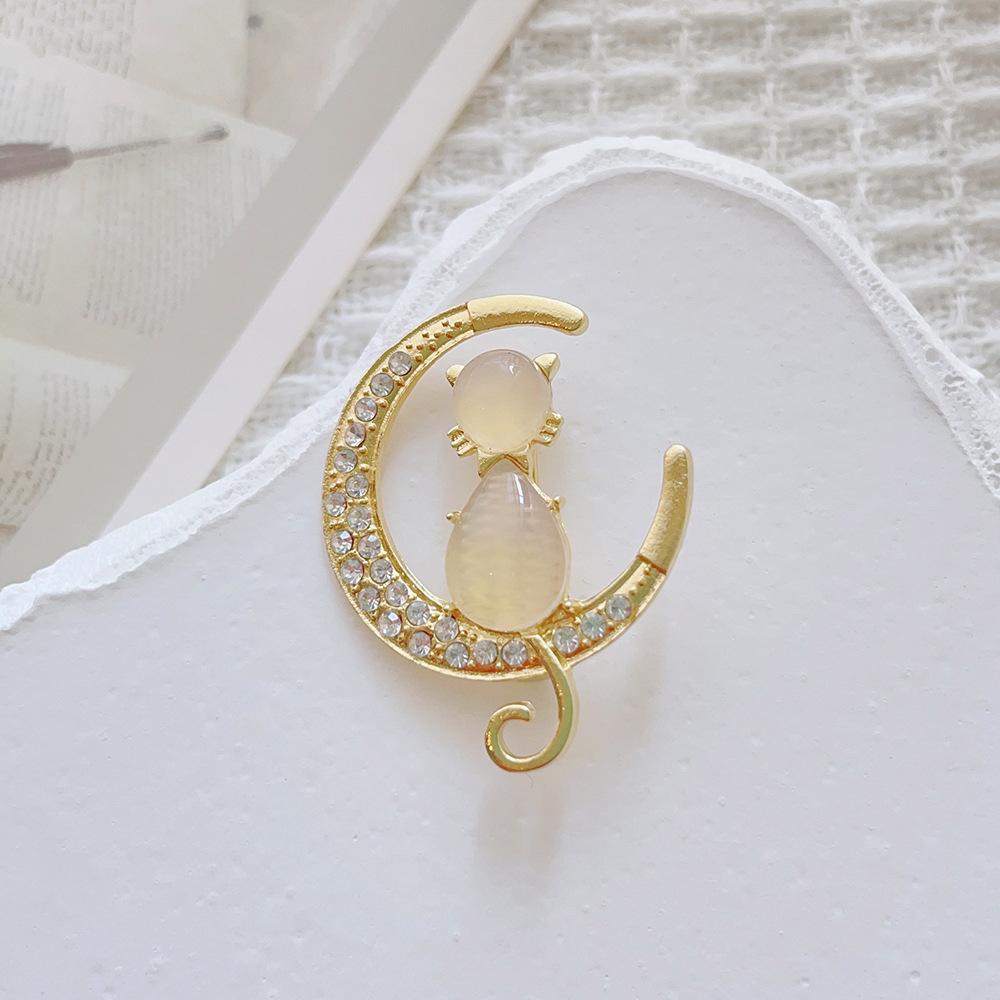 Nuevo broche de gatito para mujer, fino abrigo, ramillete, alfiler de perla, broche de hebilla de aleación para ropa fija, venta al por mayor